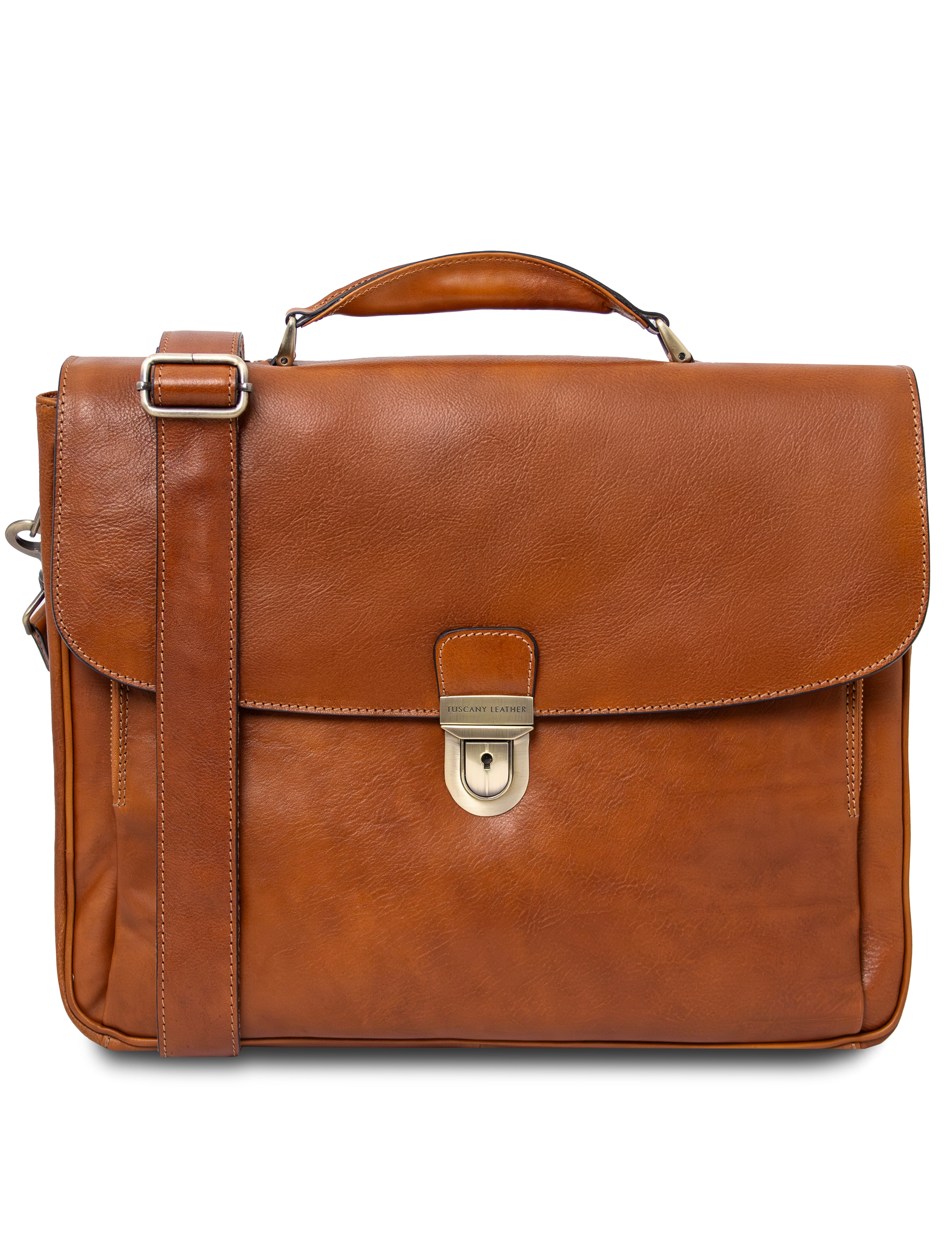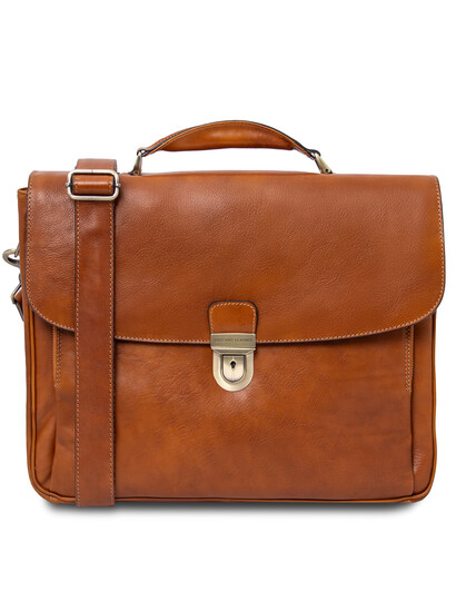 Alessandria Leather multi compartment TL SMART laptop briefcase Natural
