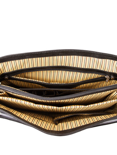 Husă laptop din piele Saffiano Prato Exclusive, Taupe Închis