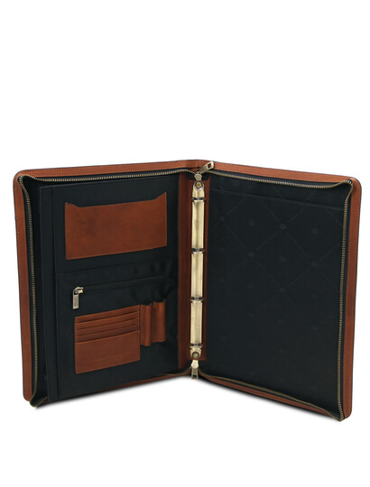 Cesare Leather document case with handle and ring binder Brown