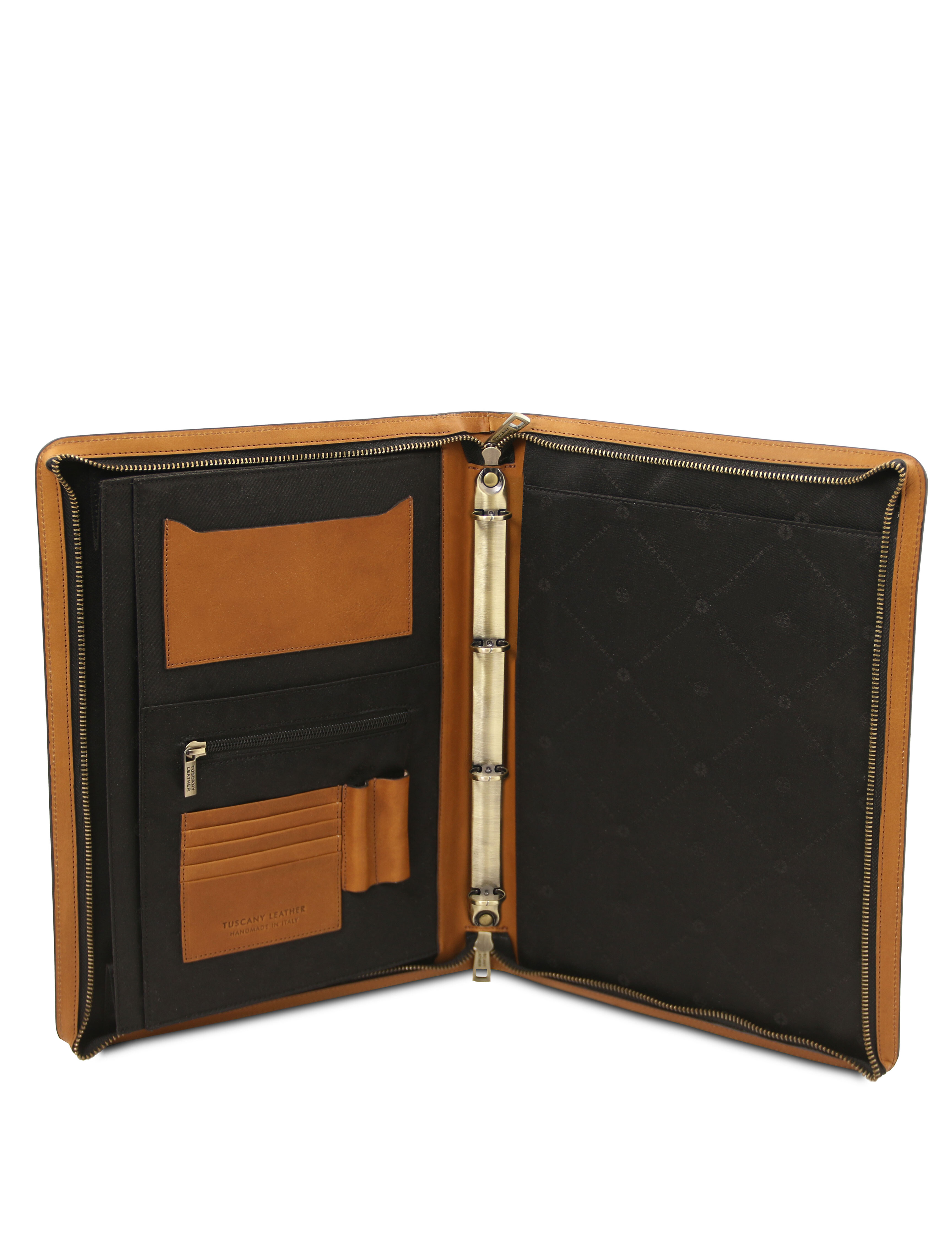 Cesare Leather document case with handle and ring binder Natural