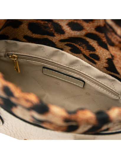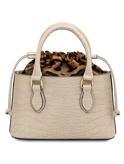 Răsfață-ți ținutele de zi cu zi cu geanta din piele cu imprimeu Croque Croc, în nuanța elegantă de bej. Realizată din piele naturală de calitate superioară, geanta îmbină textura tip crocodil cu un design modern, perfect pentru un look rafinat. Interiorul bine compartimentat îți permite să îți organizezi cu ușurință telefonul, portofelul și accesoriile esențiale. Bareta confortabilă asigură purtare plăcută pe umăr sau în mână, fiind ideală atât pentru birou, cât și pentru ieșiri în oraș. Accesoriile metalice discrete adaugă un plus de strălucire, transformând această geantă într-o piesă statement, ușor de asortat cu orice ținută.