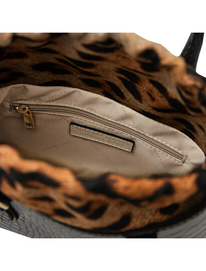 Descoperă geanta din piele cu imprimeu Croque Croc Negru, un accesoriu rafinat care îmbină eleganța cu un aer modern. Realizată din piele de înaltă calitate, geanta se remarcă prin textura sa inspirată de pielea de crocodil și prin finisajul lucios, sofisticat. Compartimentul principal spațios și buzunarele interioare îți păstrează toate esențialele bine organizate, de la telefon și portofel până la machiaj. Mânerul confortabil și cureaua de umăr detașabilă îți permit să o porți atât la birou, cât și la ieșiri de seară. Nuanța intensă de negru o face ușor de asortat cu orice ținută, transformând fiecare apariție într-o declarație de stil.