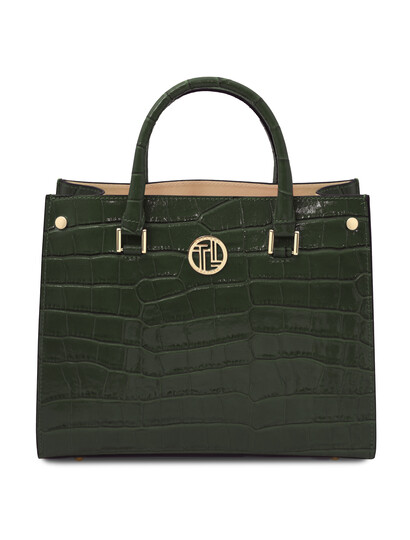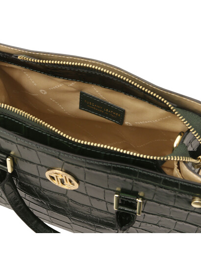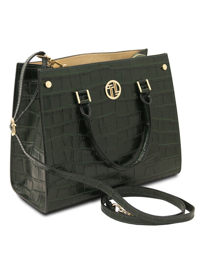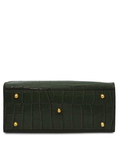Croque Croc print leather handbag Forest Green
