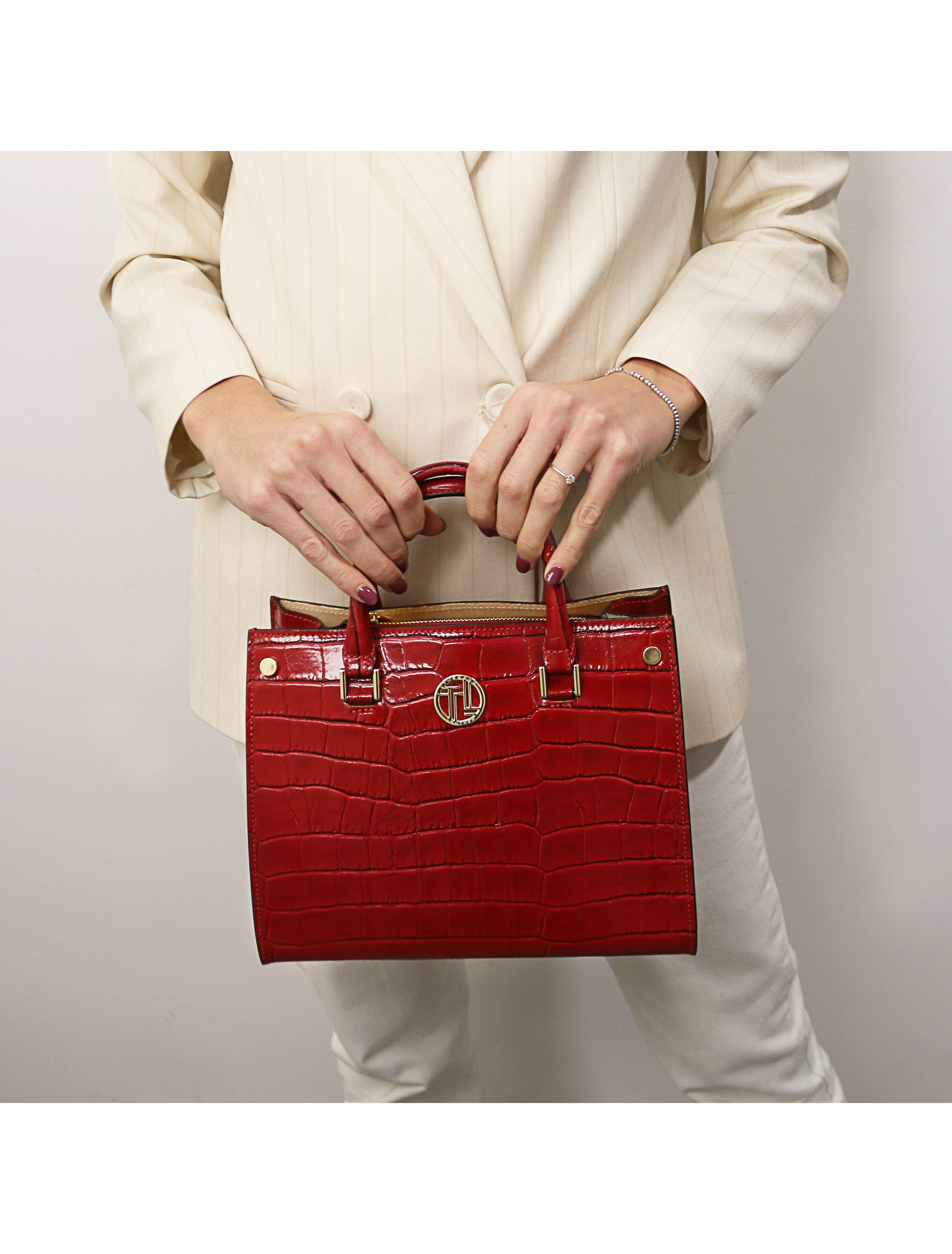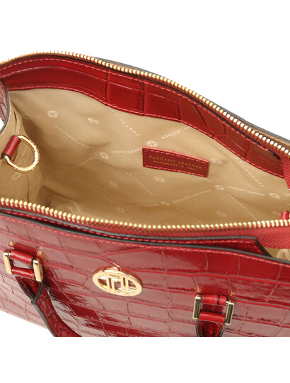 Croque Croc print leather handbag Lipstick Red