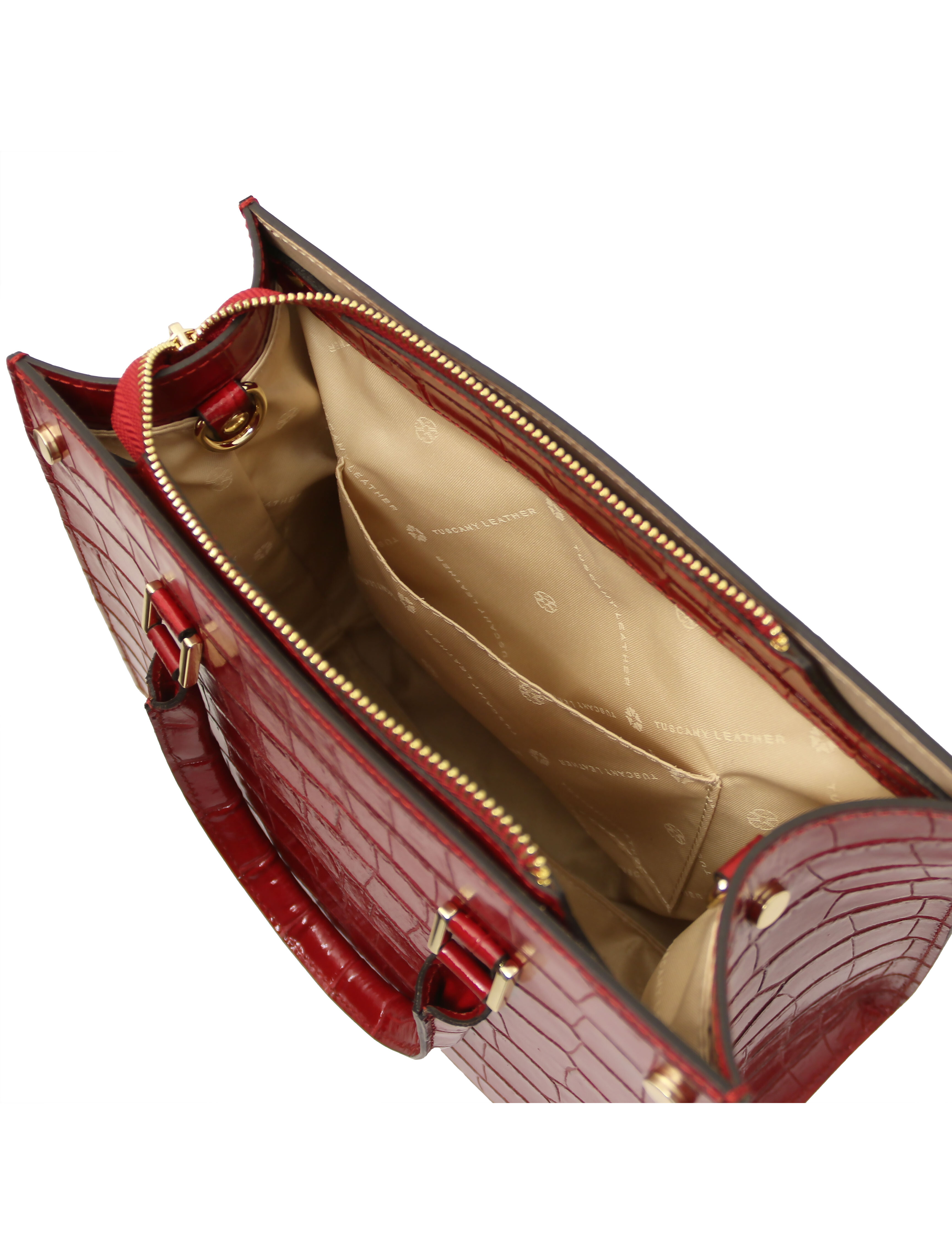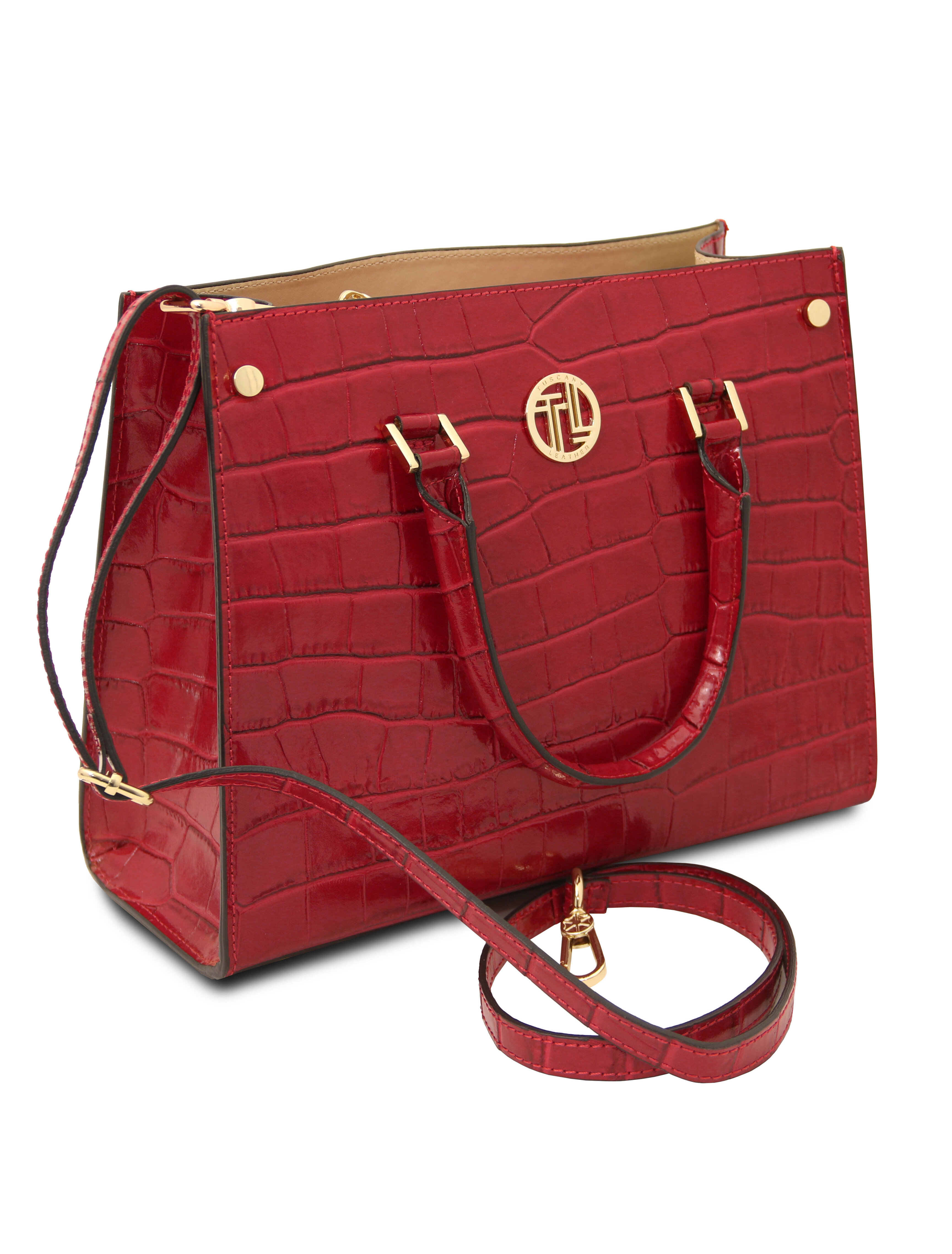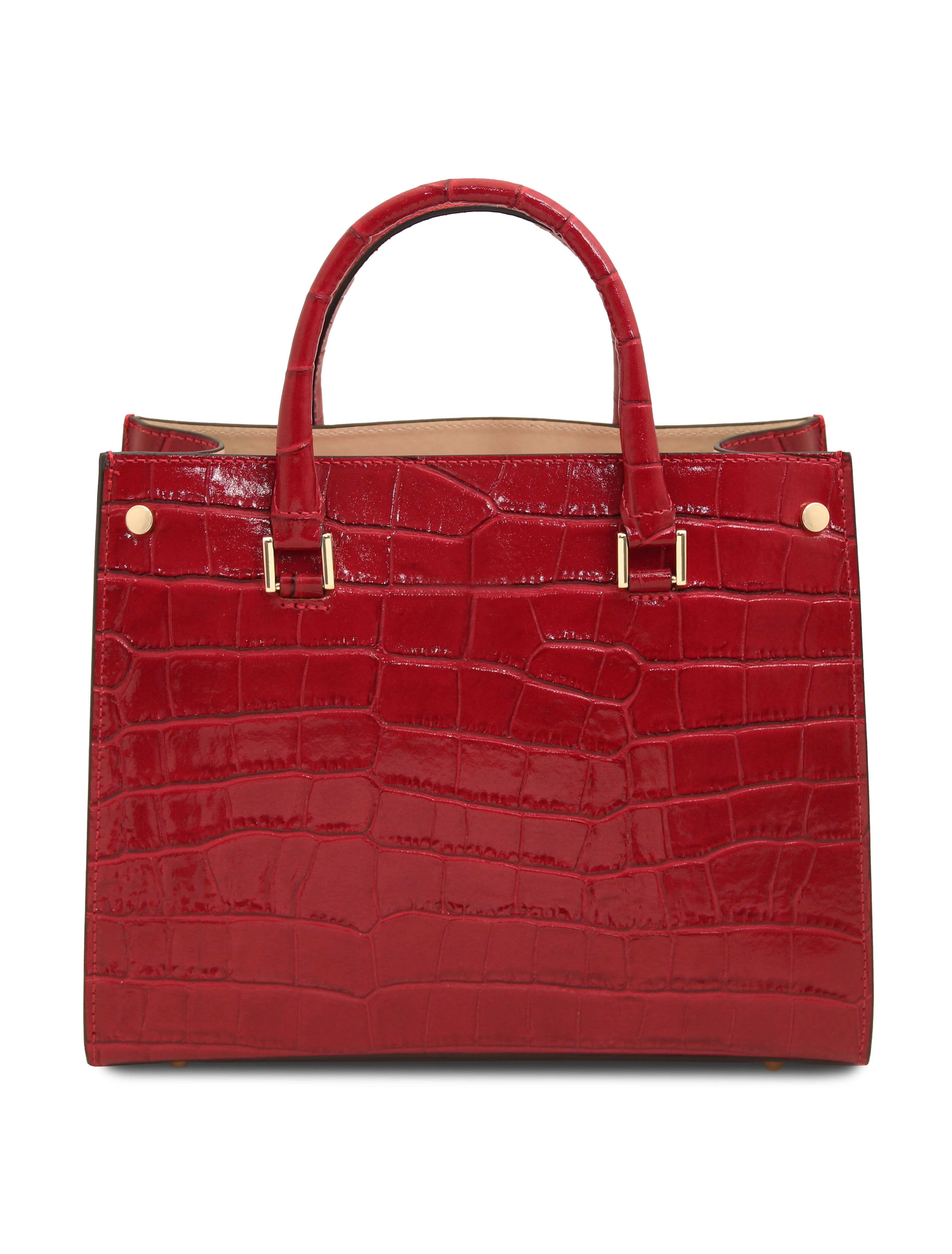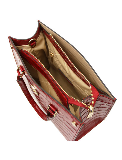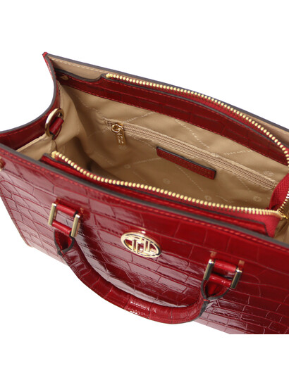 Geanta din piele cu imprimeu Croque Croc Roșu îmbină eleganța modernă cu un aer jucăuș și sofisticat. Realizată din piele de înaltă calitate, are o textură distinctivă, inspirată de pielea de crocodil, care atrage privirile la fiecare apariție. Culoarea roșu intens adaugă un plus de personalitate oricărei ținute, fie că este de zi sau de seară. Interiorul bine compartimentat îți permite să îți organizezi cu ușurință telefonul, portofelul și accesoriile esențiale. Bareta ajustabilă și detaliile metalice elegante asigură confort și stil în același timp. Ideală pentru femeia care își dorește un accesoriu statement, versatil și ușor de asortat în garderoba de zi cu zi.