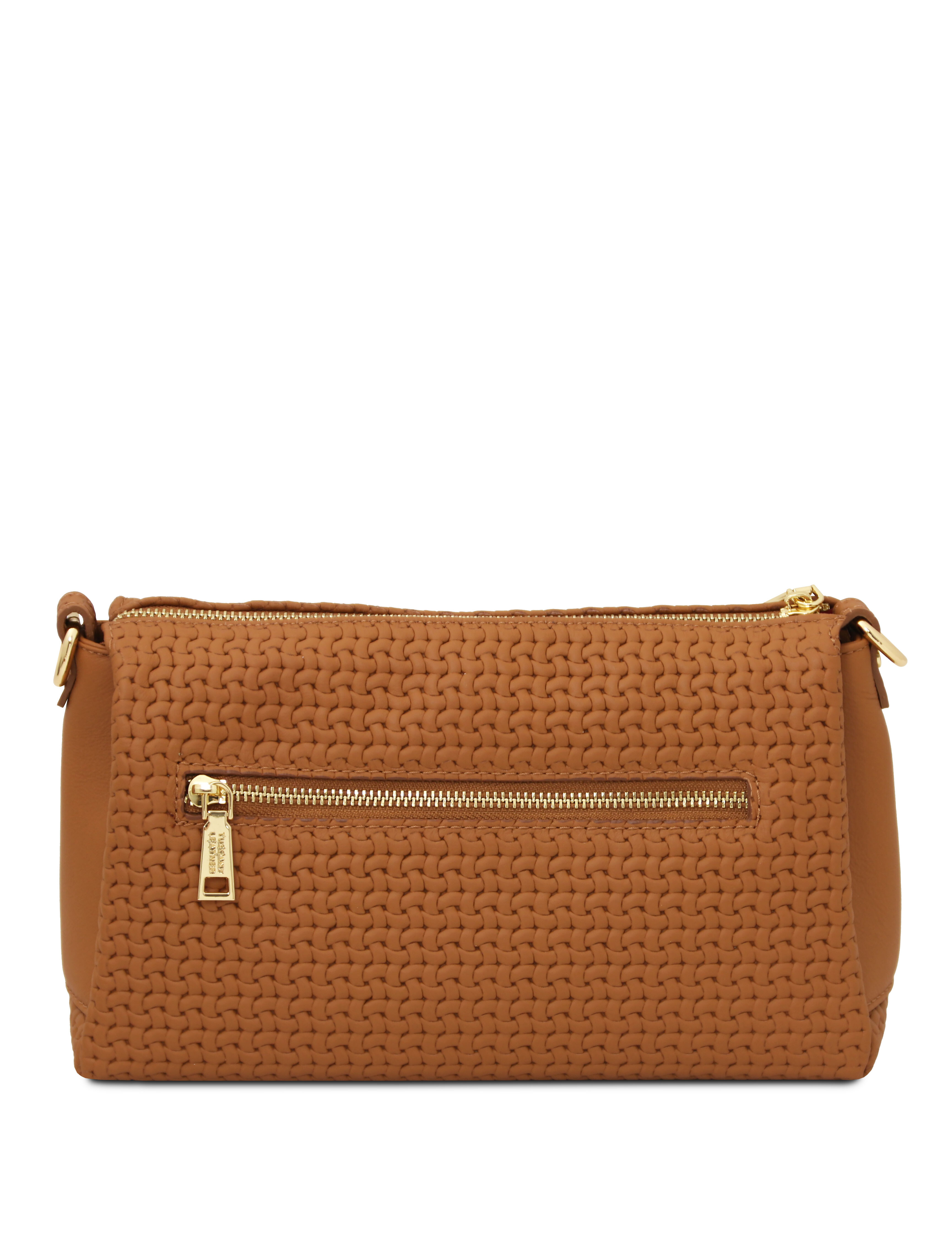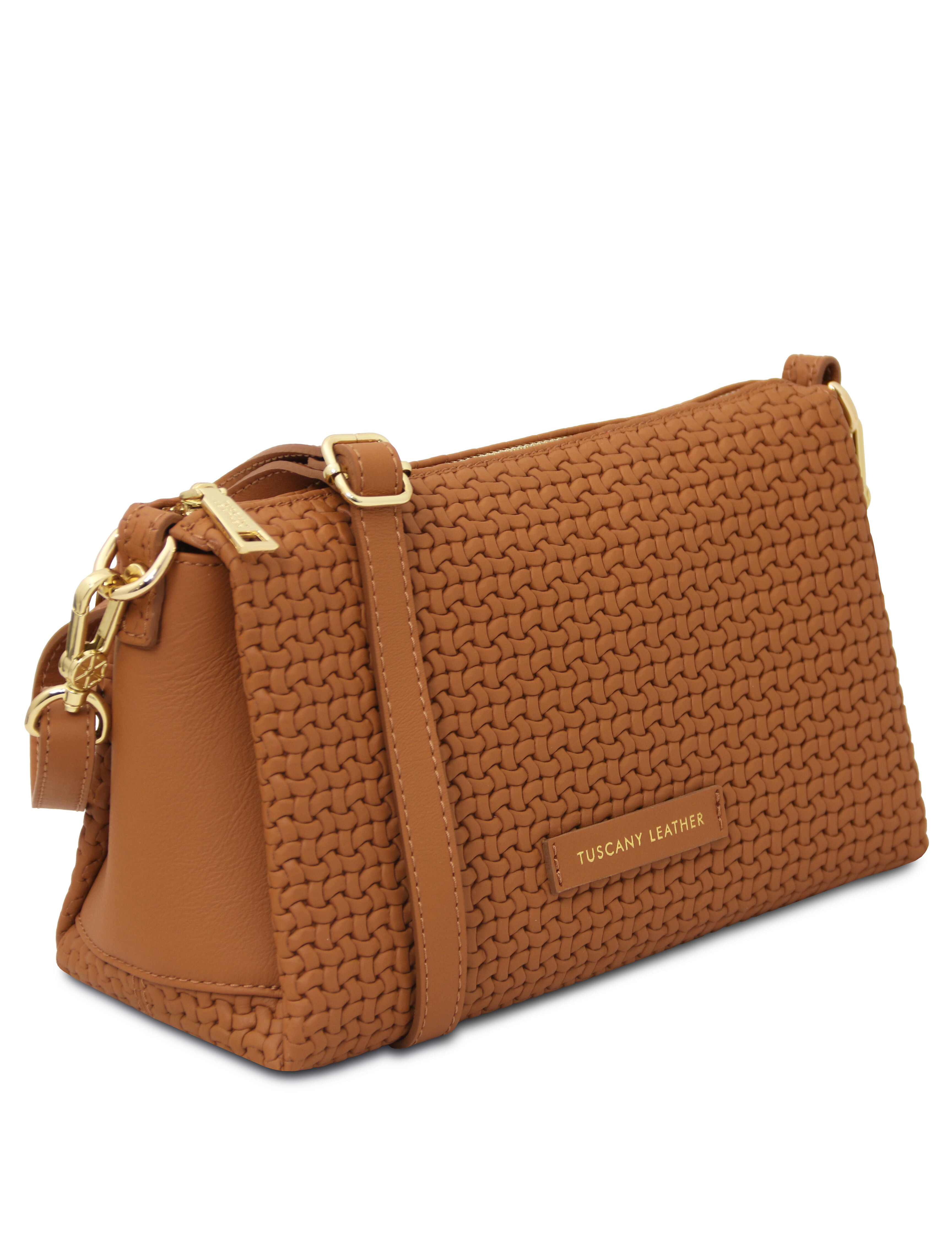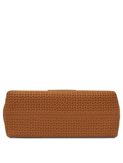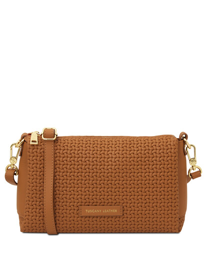 Dedalo Woven printed leather shoulder bag Cognac