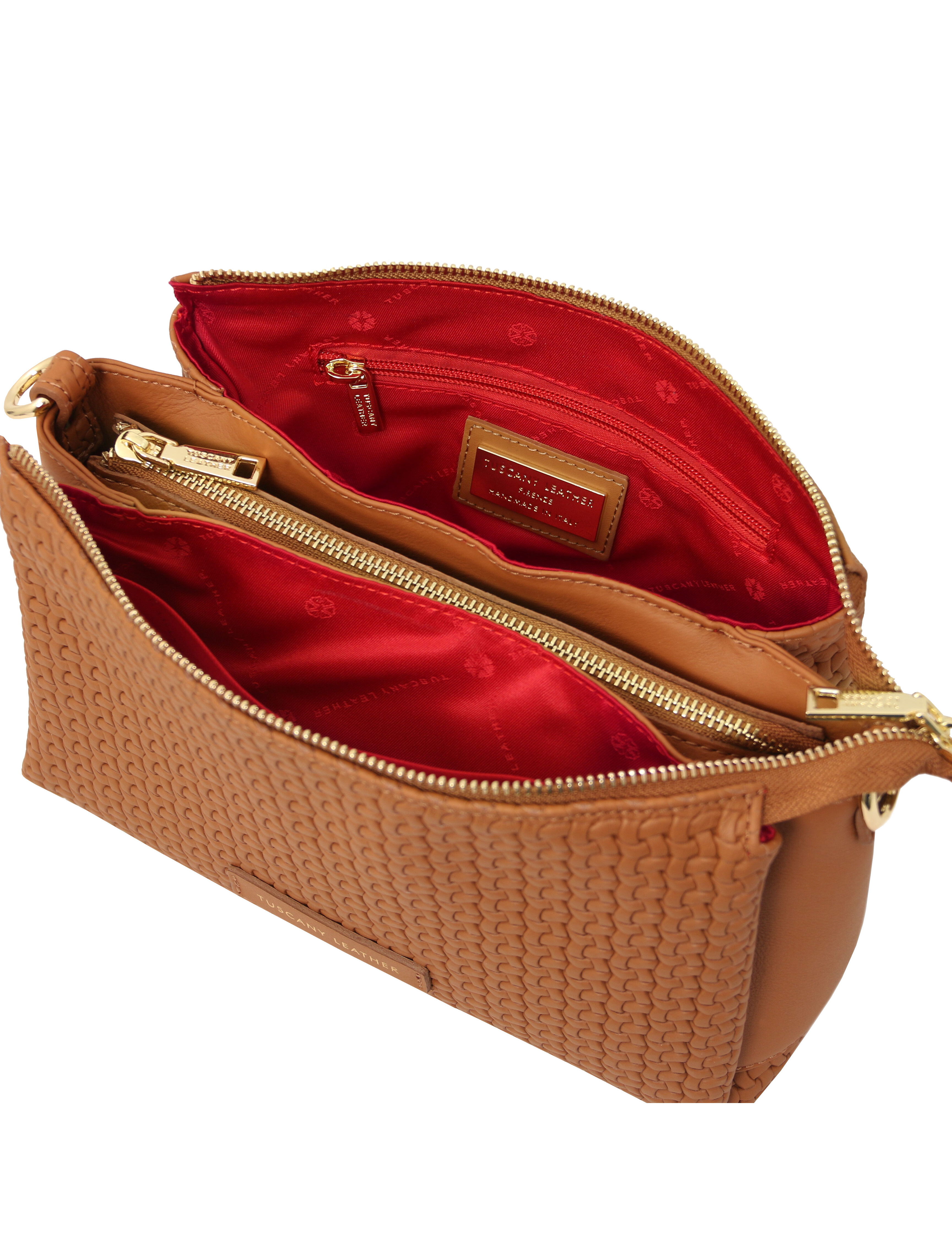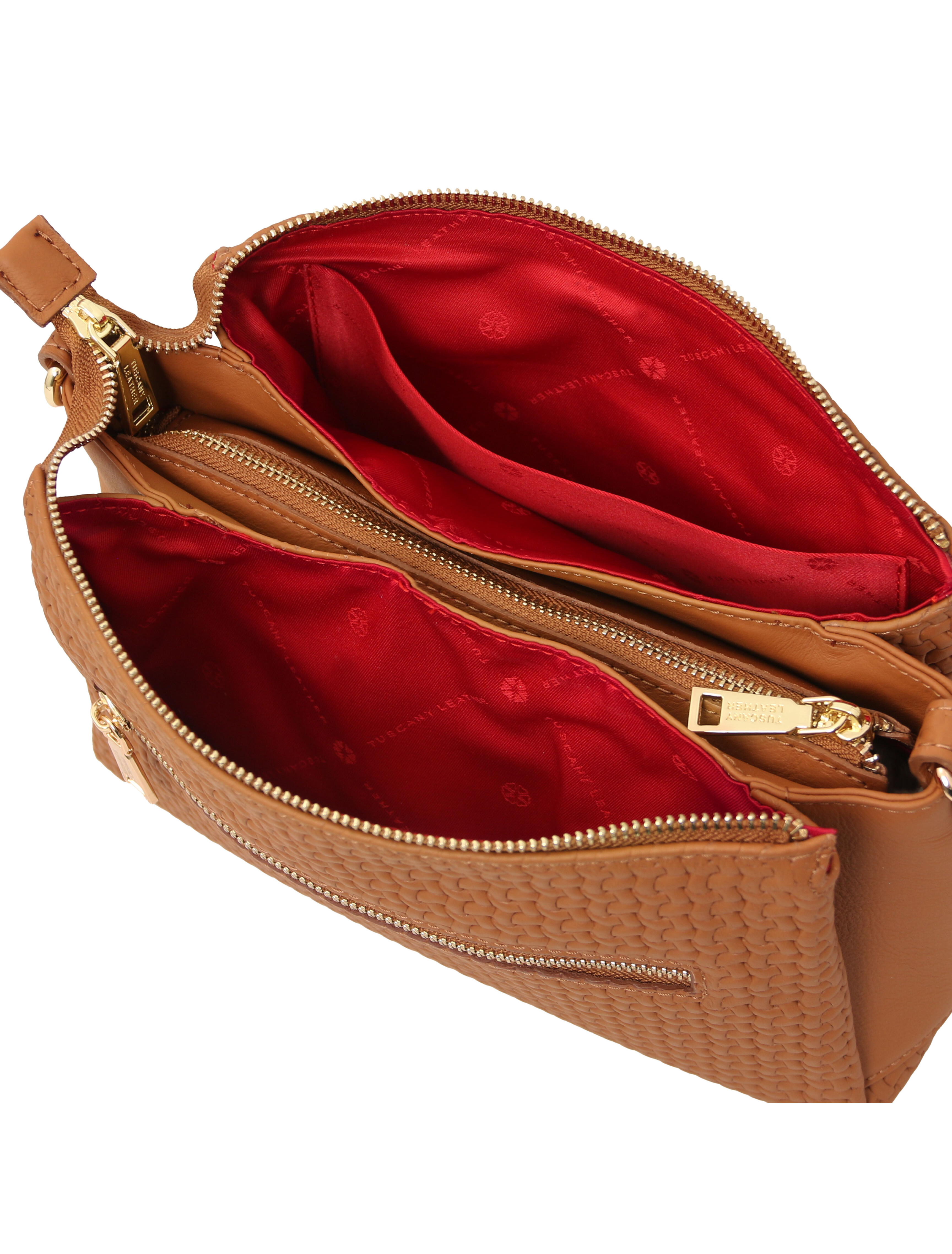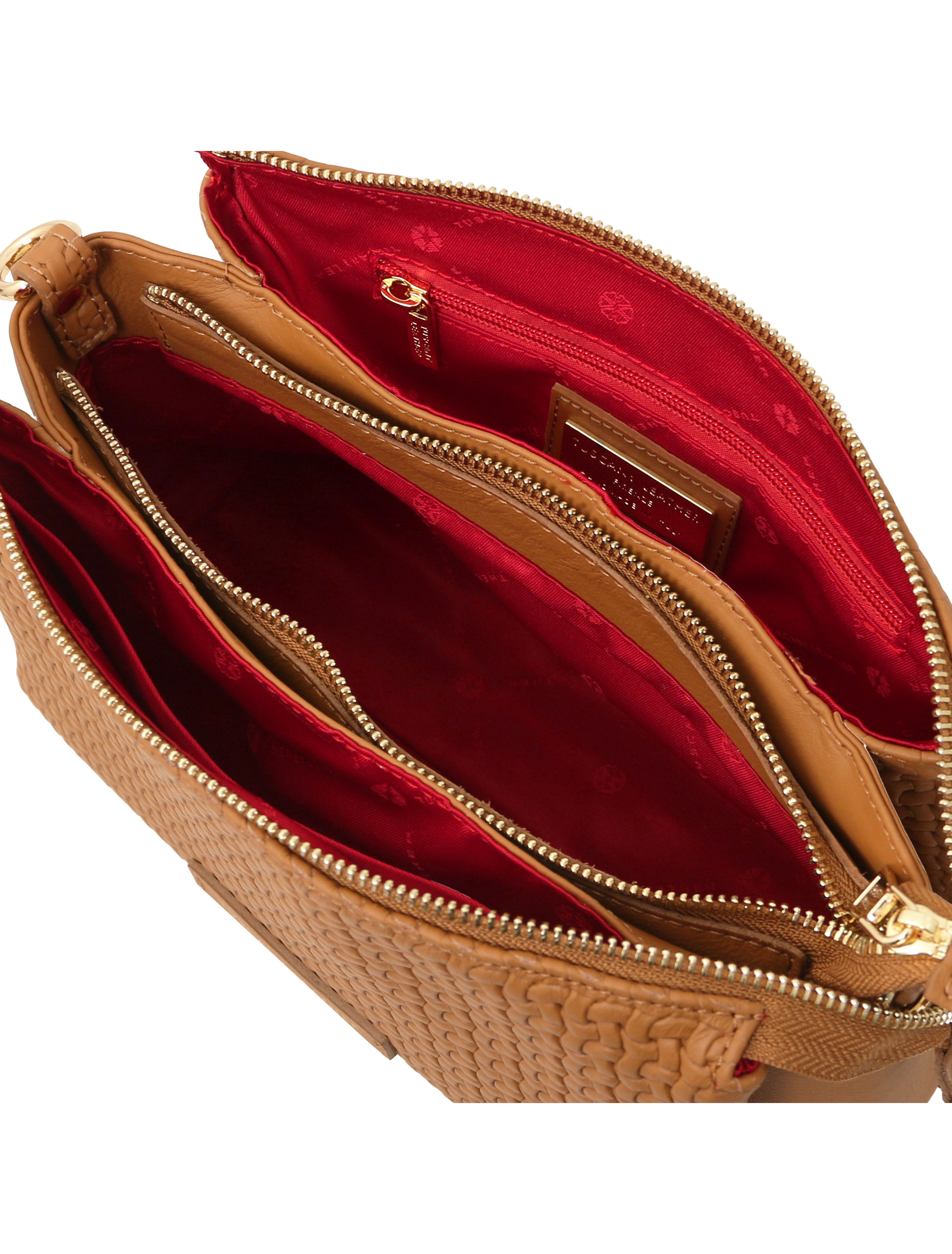 Dedalo Woven printed leather shoulder bag Cognac