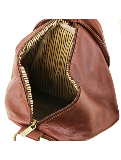 Rucsac Volta din piele întoarsă, din piele naturală, maro închis