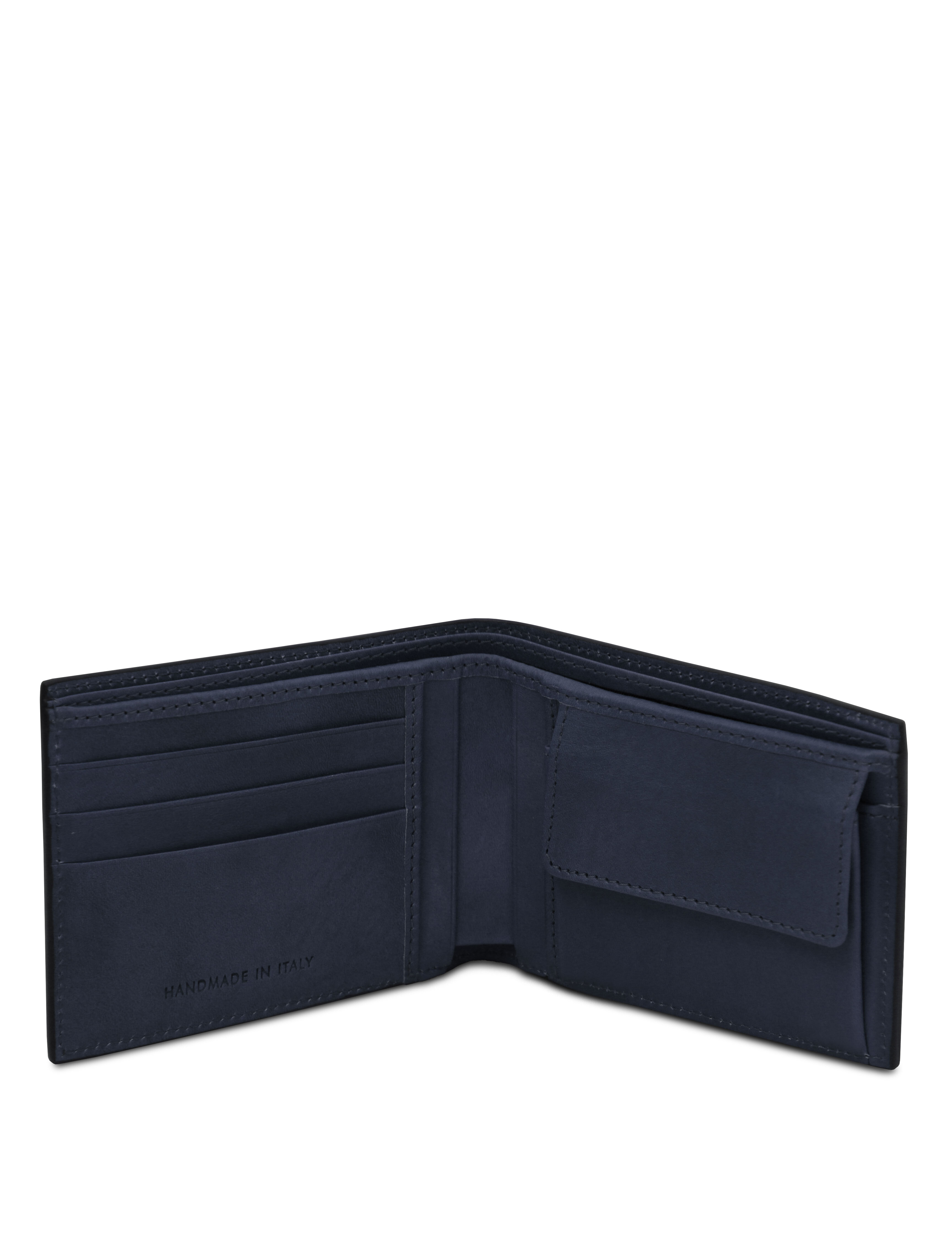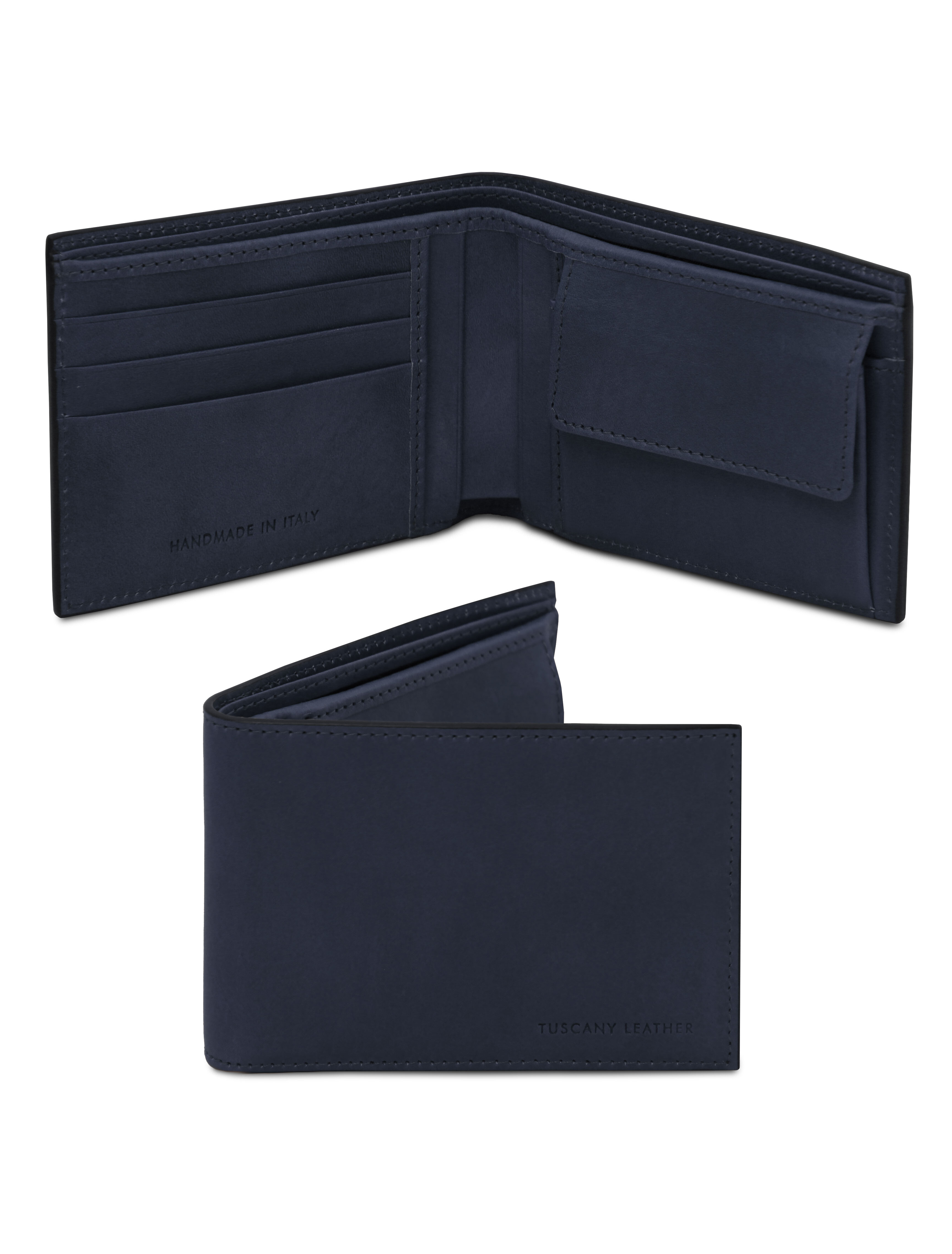 Exclusive 2 fold leather wallet for men with coin pocket Dark Blue