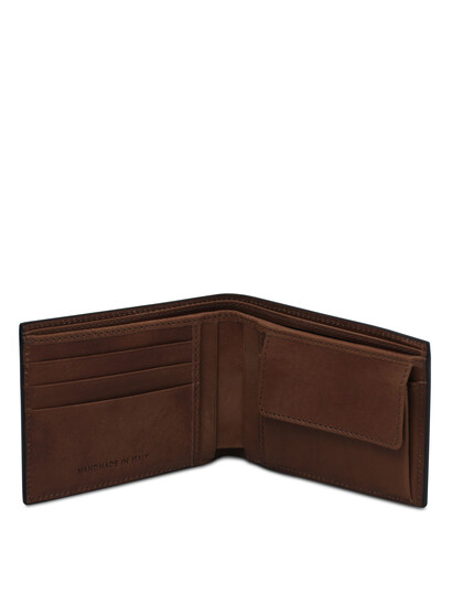 Exclusive 2 fold leather wallet for men with coin pocket Dark Brown