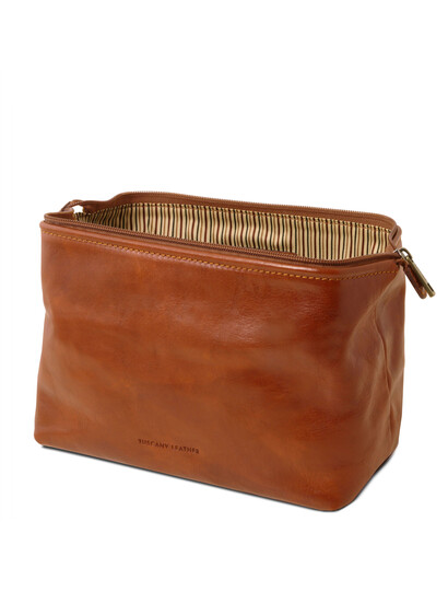 Alege geanta cosmetice din piele naturala honey, marime mica, Tuscany Leather, Smarty potrivita pentru activitati zilnice dar si pentru calatorii.