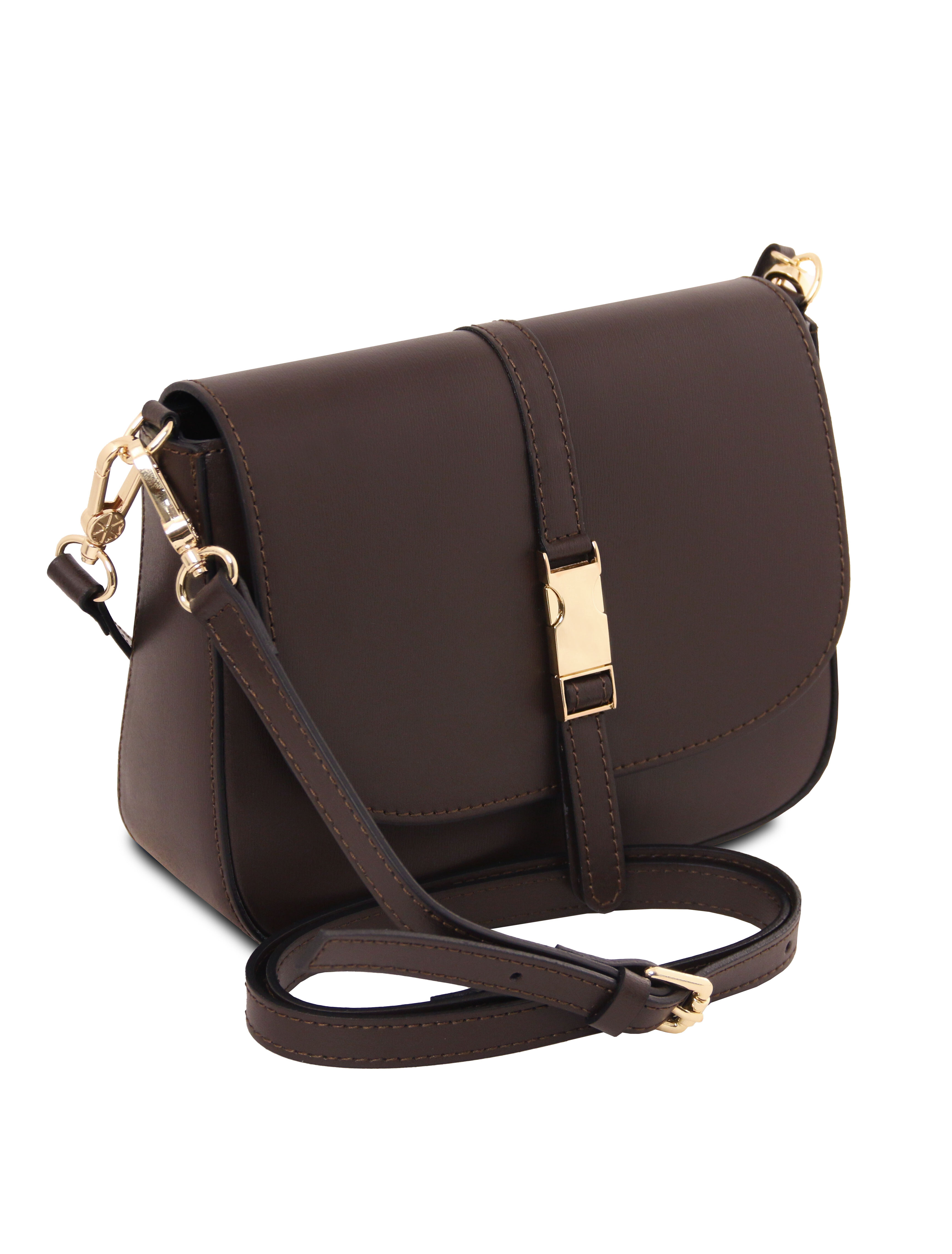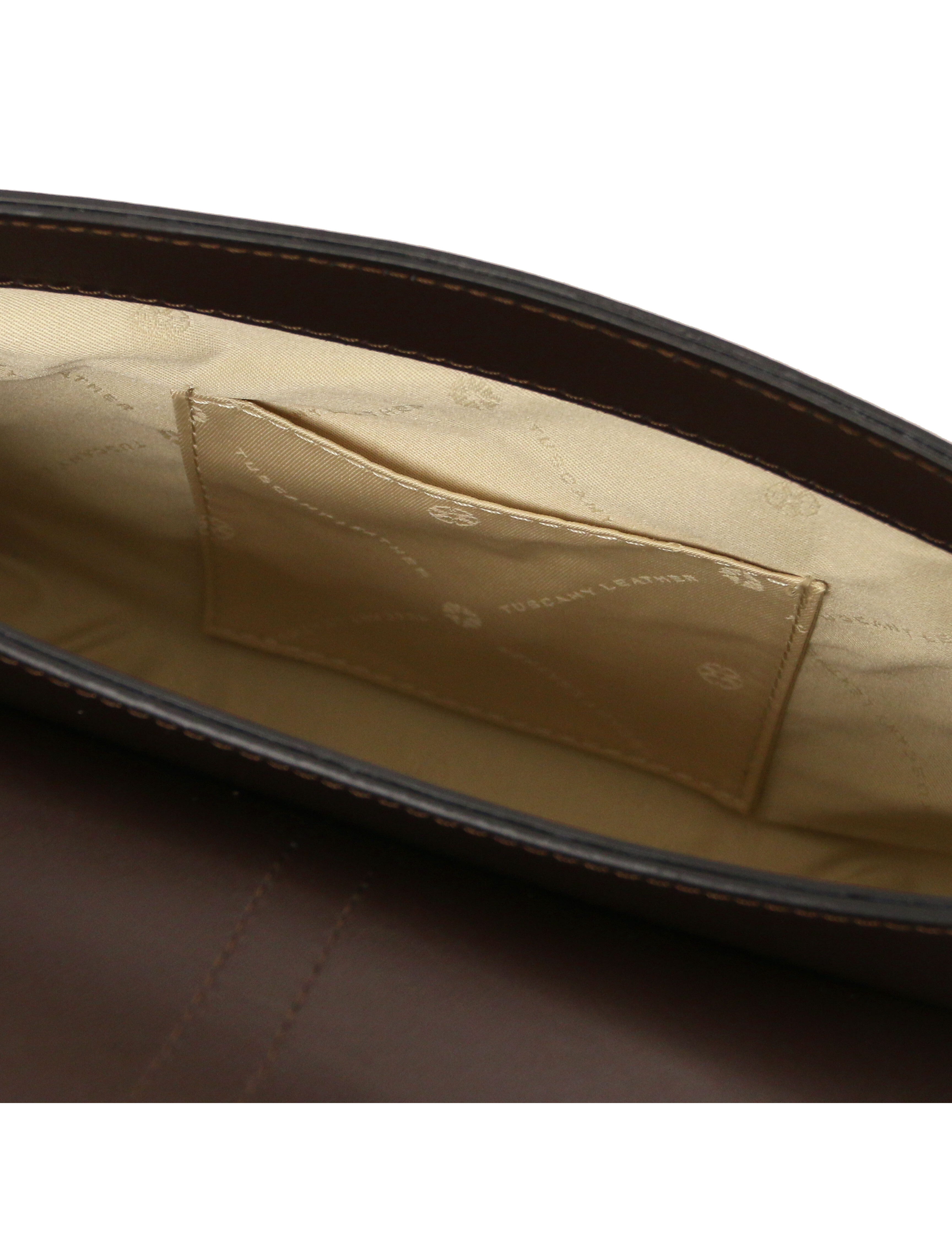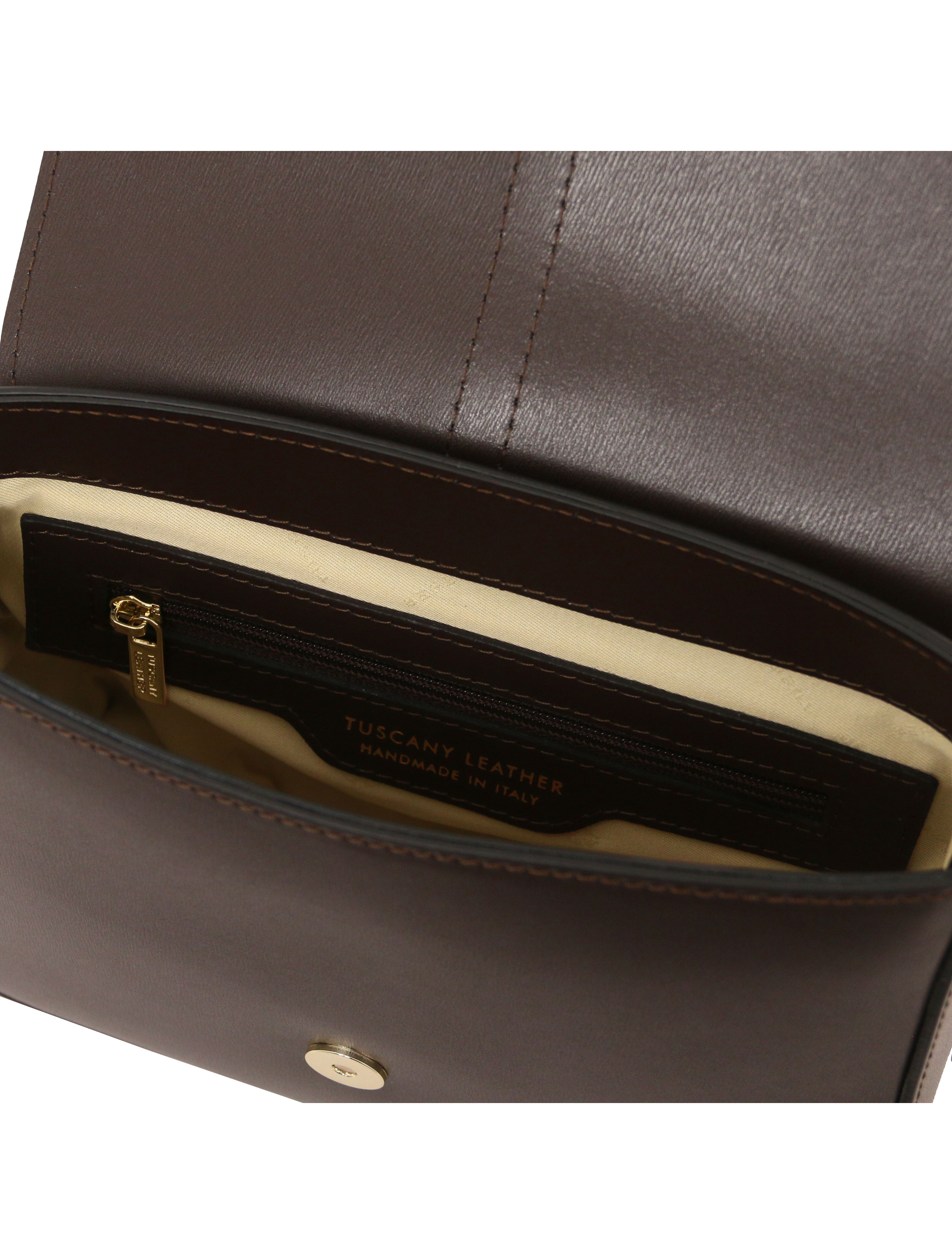 Designul elegant si culoarea deosebita fac din geanta dama din piele naturala cafenie Tuscany Leather, Nausica un accesoriu autentic si sofisticat.