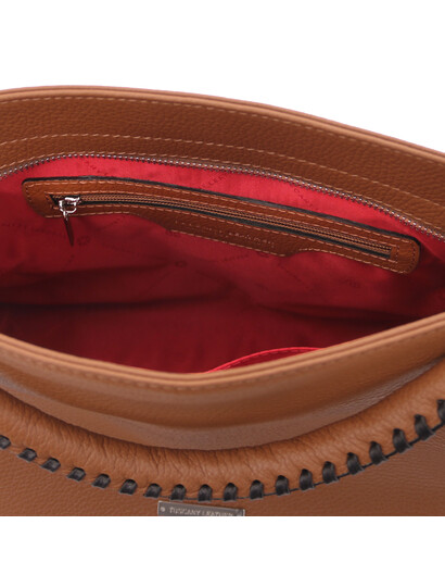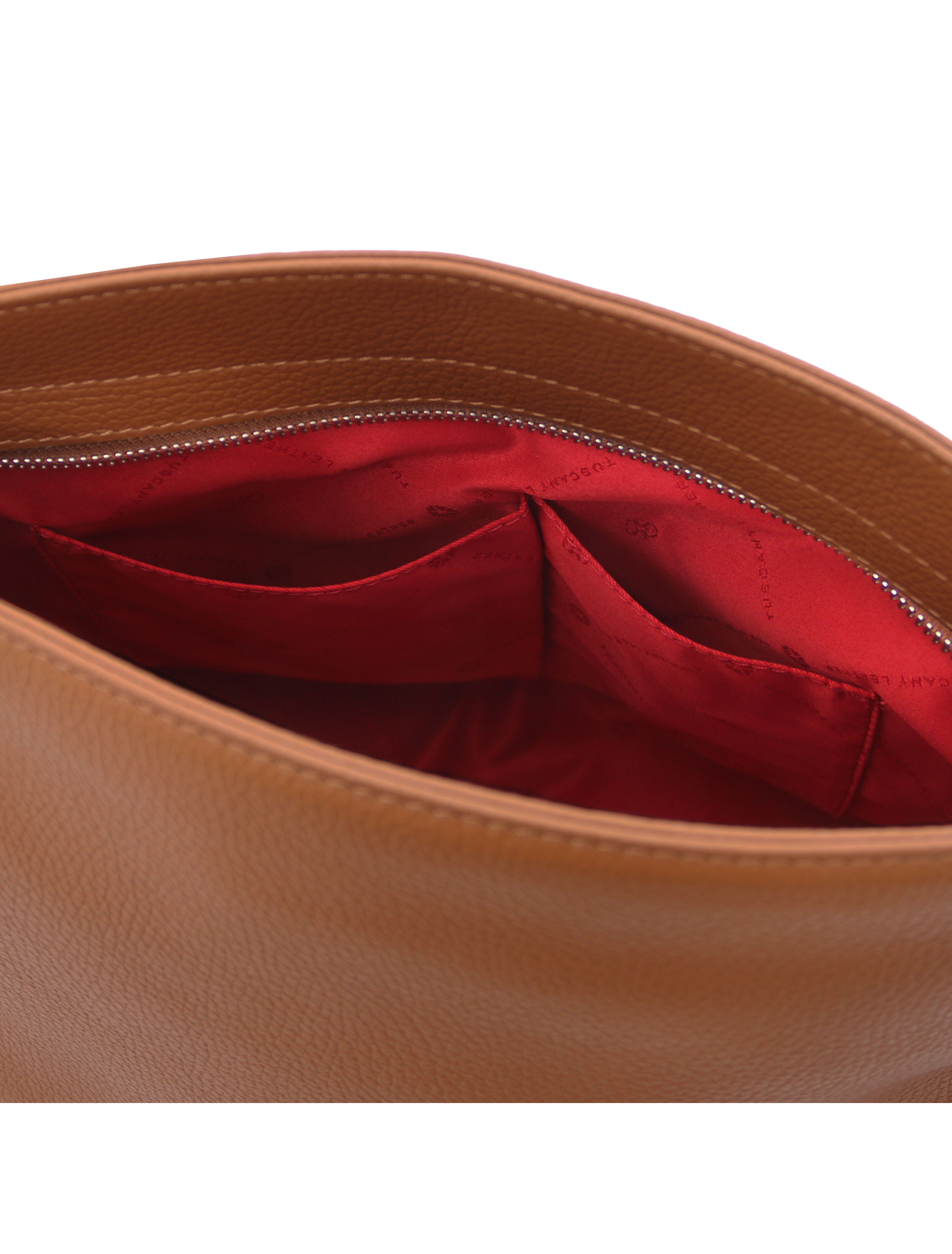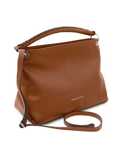 Geanta dama din piele naturala coniac, Tuscany Leather, TL Bag Soft voluminoasa si rafinata, se potriveste de minune cu o tinuta office dar si cu un outfit smart-casual.