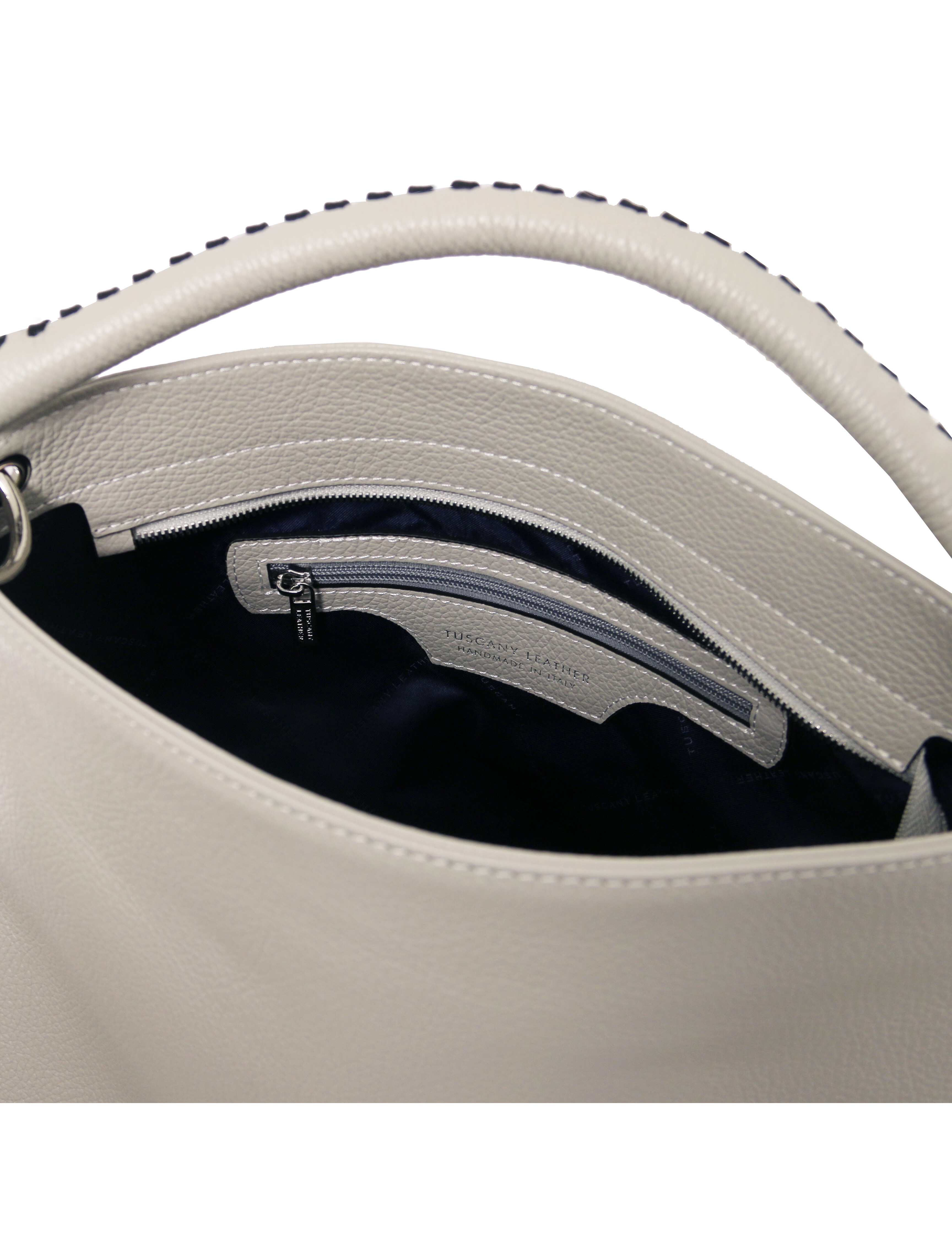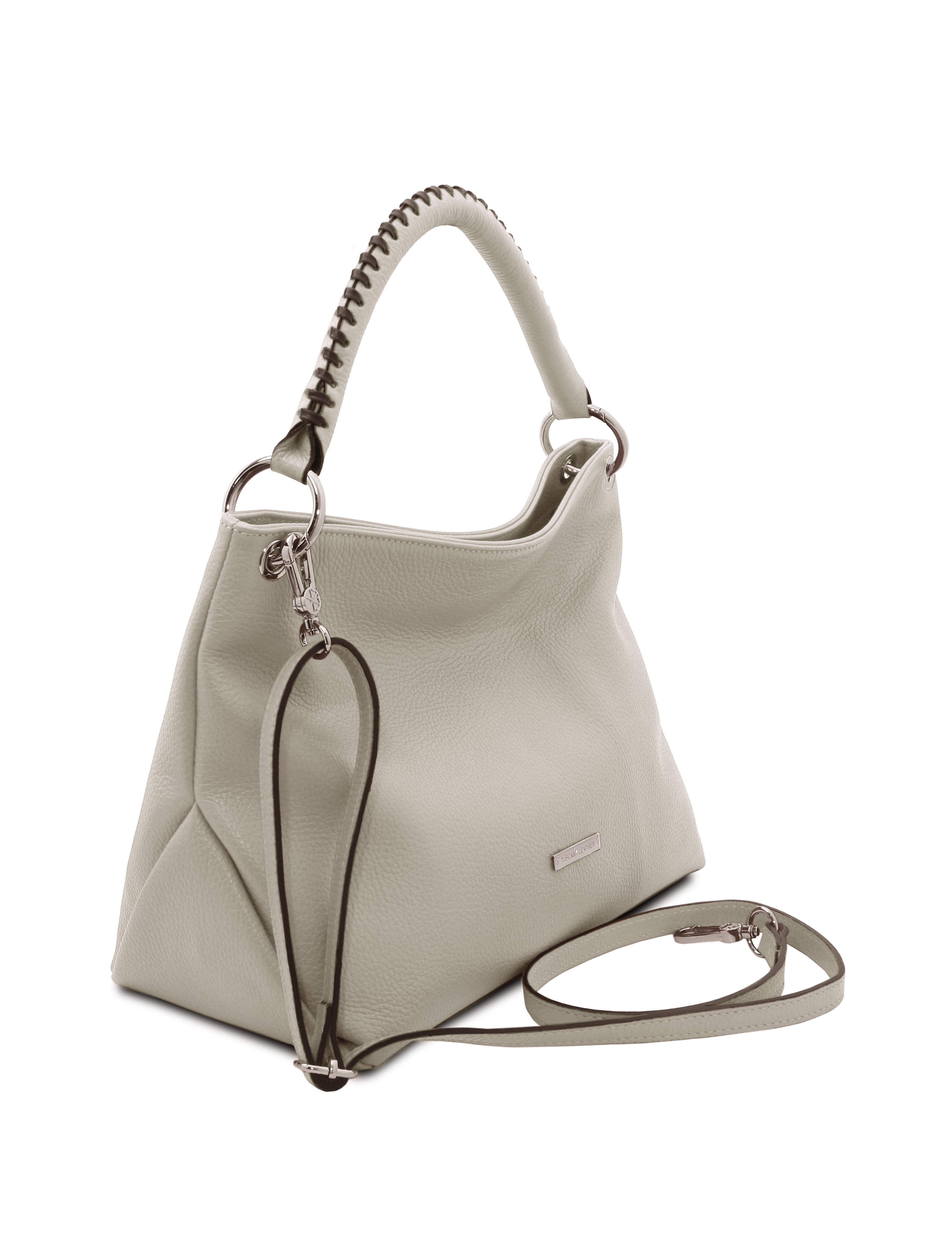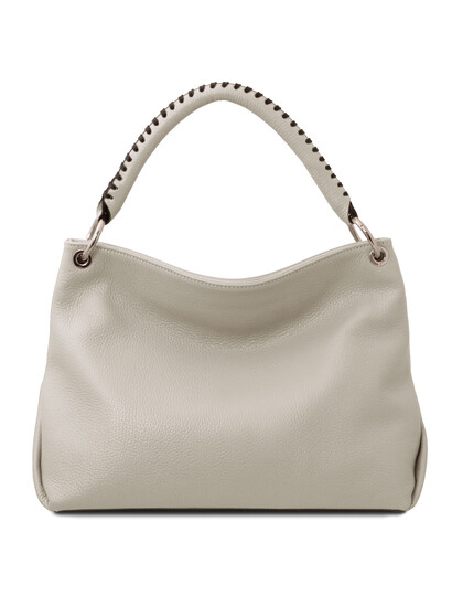 Geanta dama din piele naturala gri deschis, Tuscany Leather, TL Bag Soft voluminoasa si rafinata, se potriveste de minune cu o tinuta office dar si cu un outfit smart-casual.
