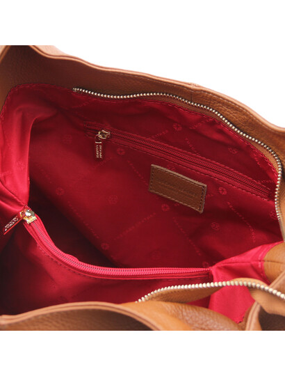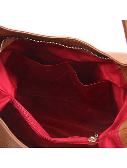 Alege geanta dama din piele naturala coniac, TL Keyluck, o piesa statement pentru o tinuta de efect.