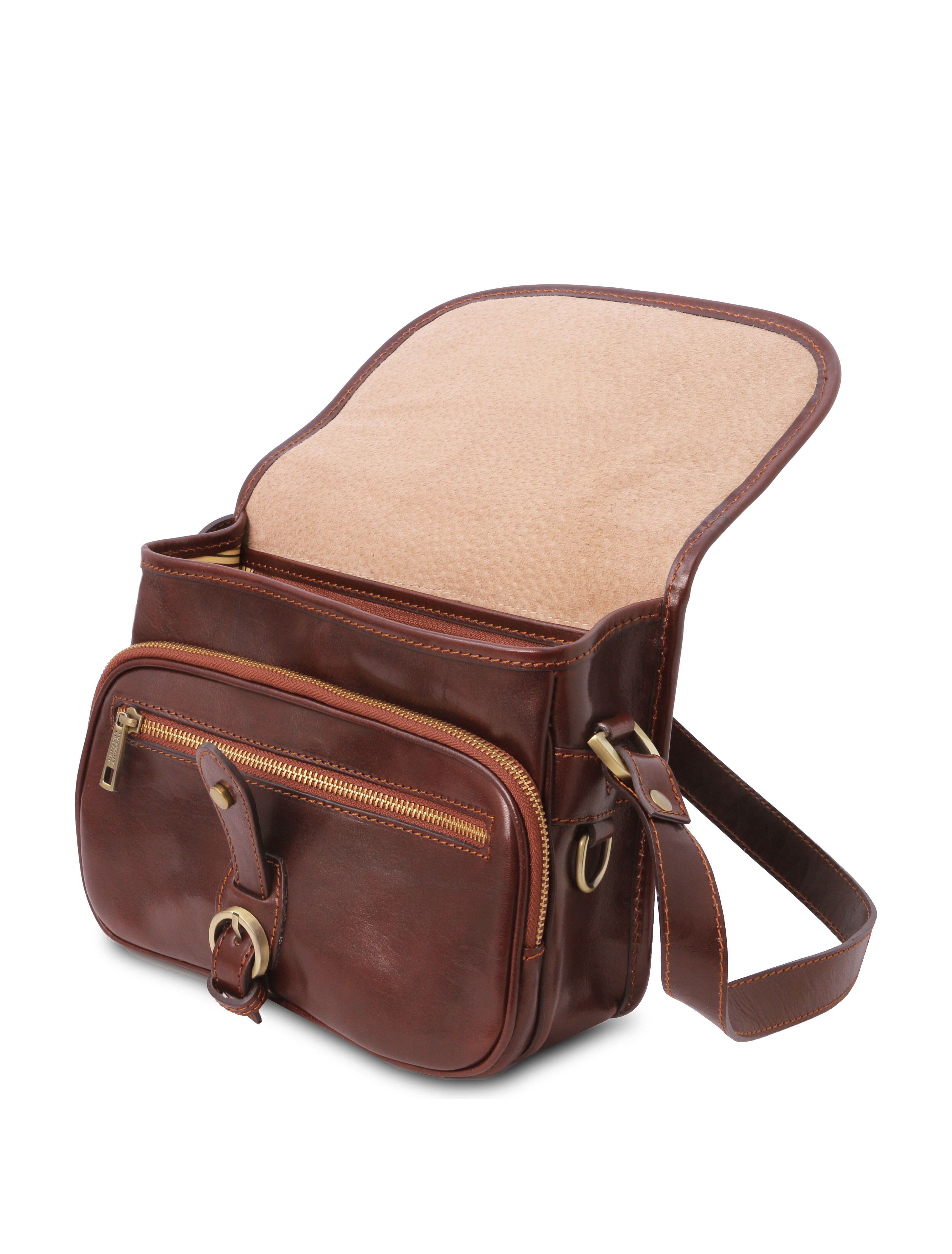 Completeaza-ti tinuta cu geanta de dama din piele naturala honey, Tuscany Leather, Alessia, cu un design vintage pentru a iesi in evidenta. Autentic italian.