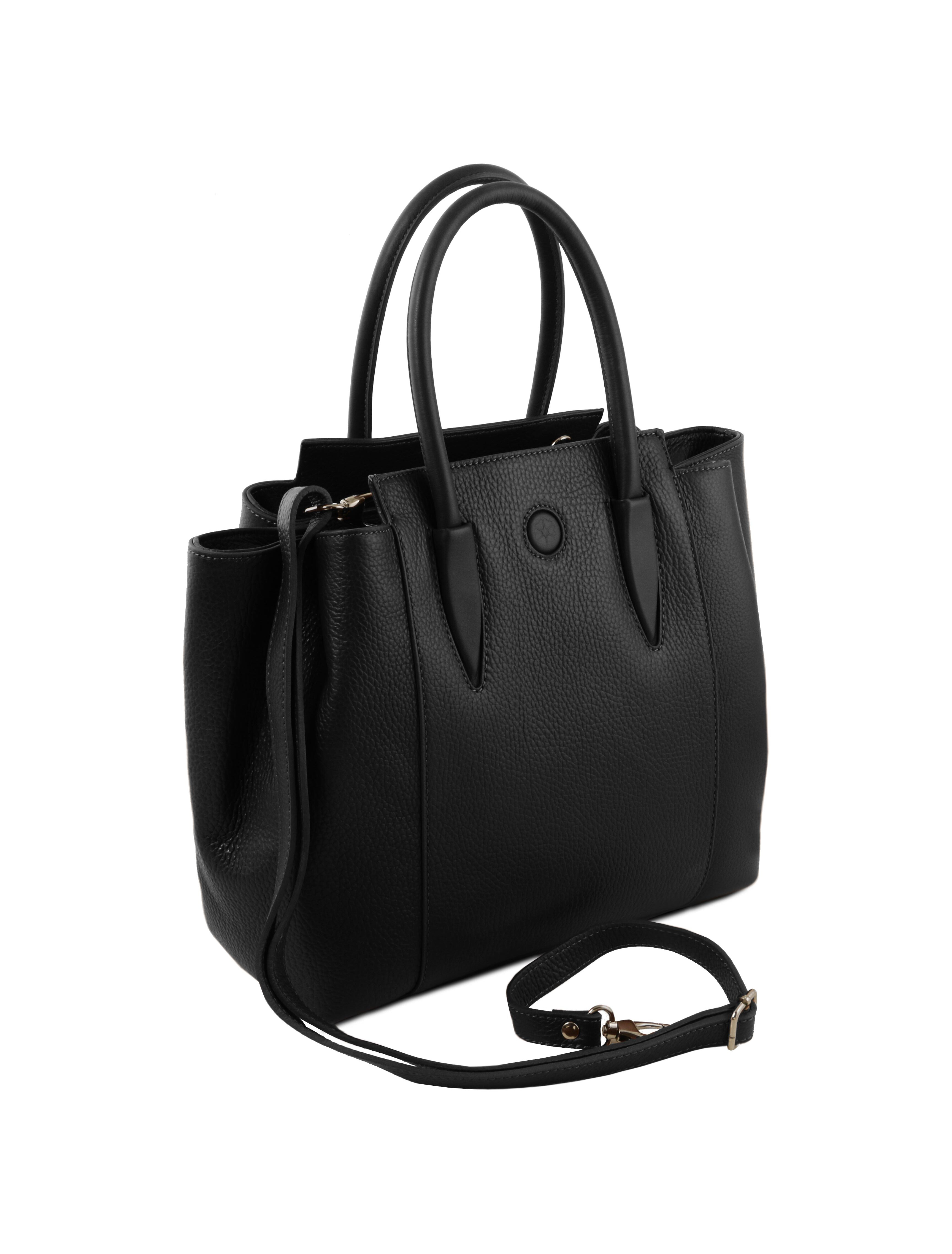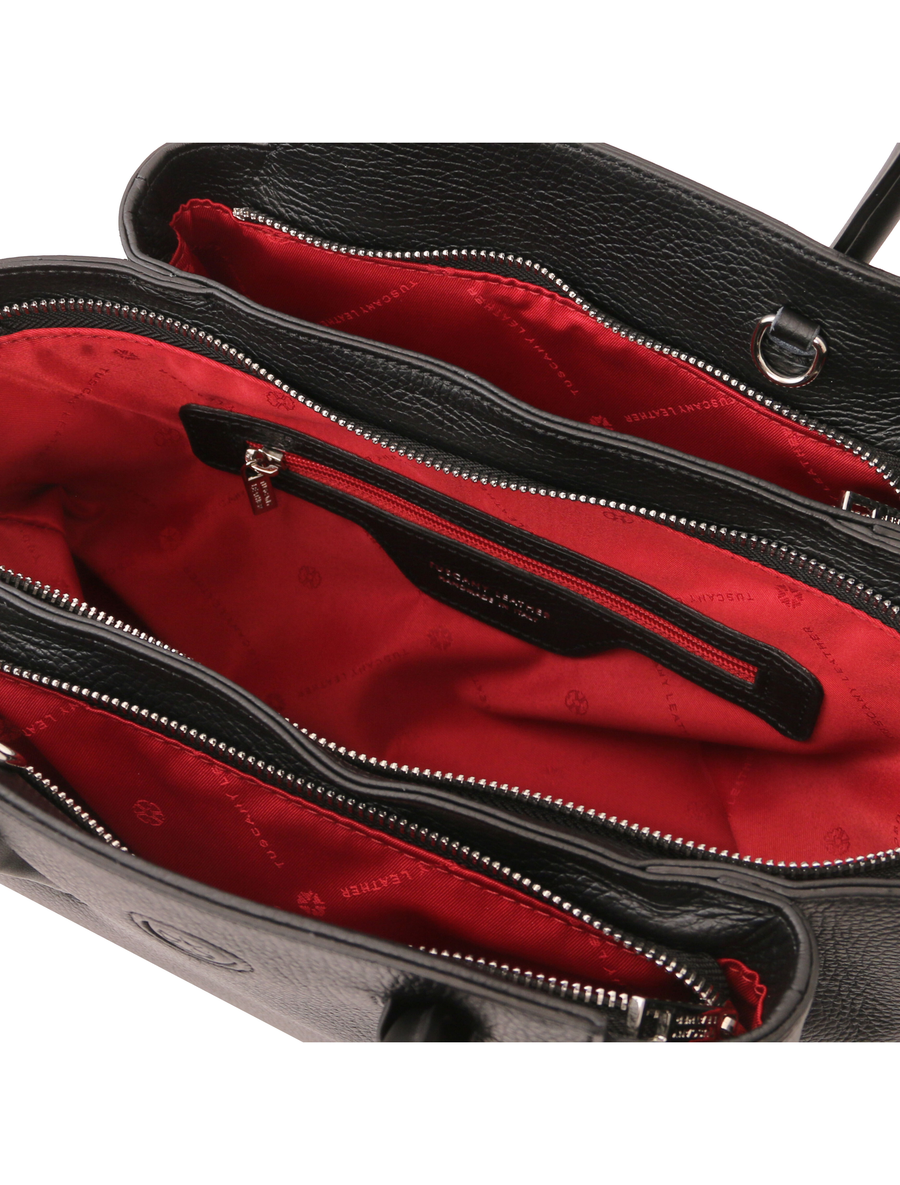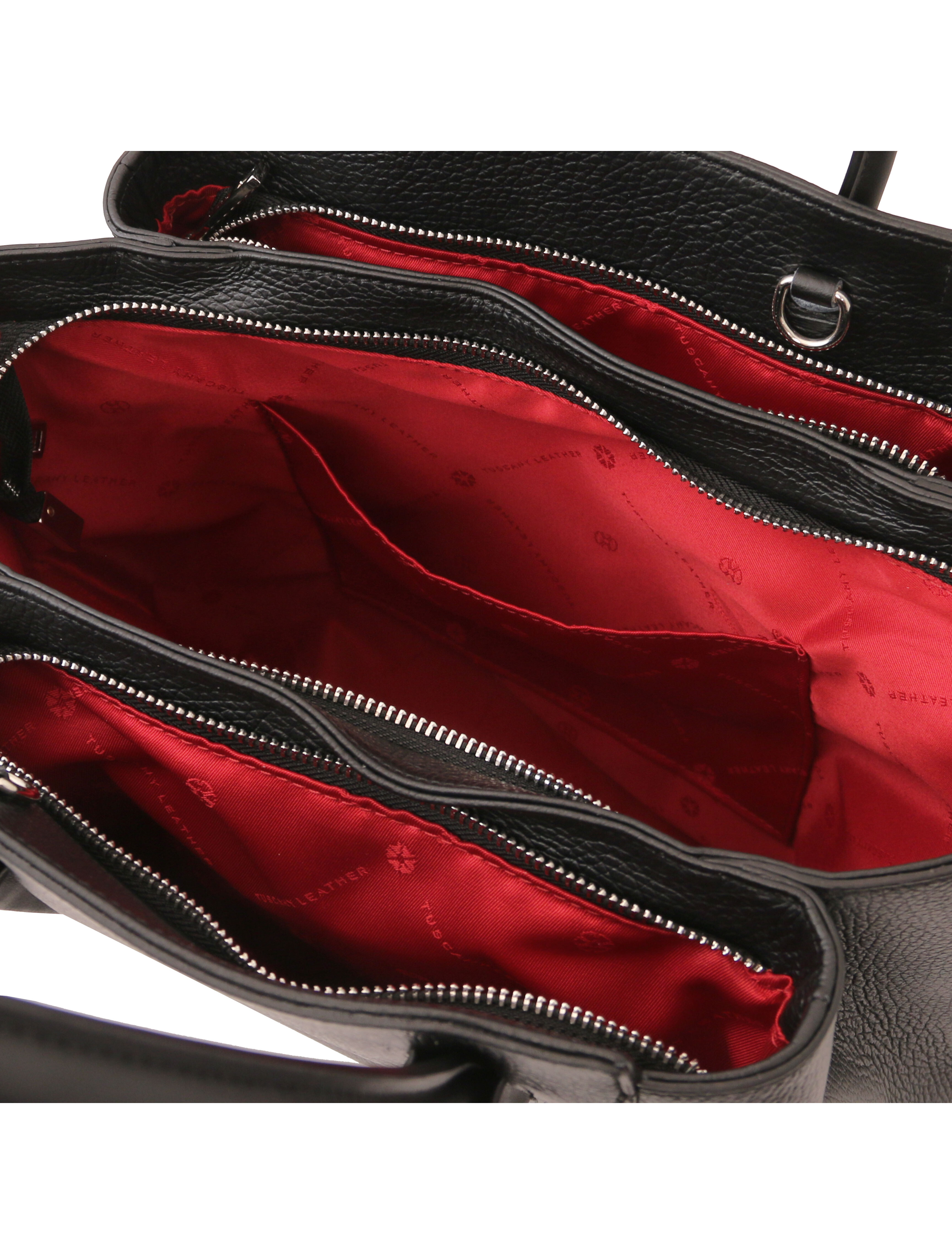 Geantă damă din piele naturală neagră, Tuscany Leather, Tulipan