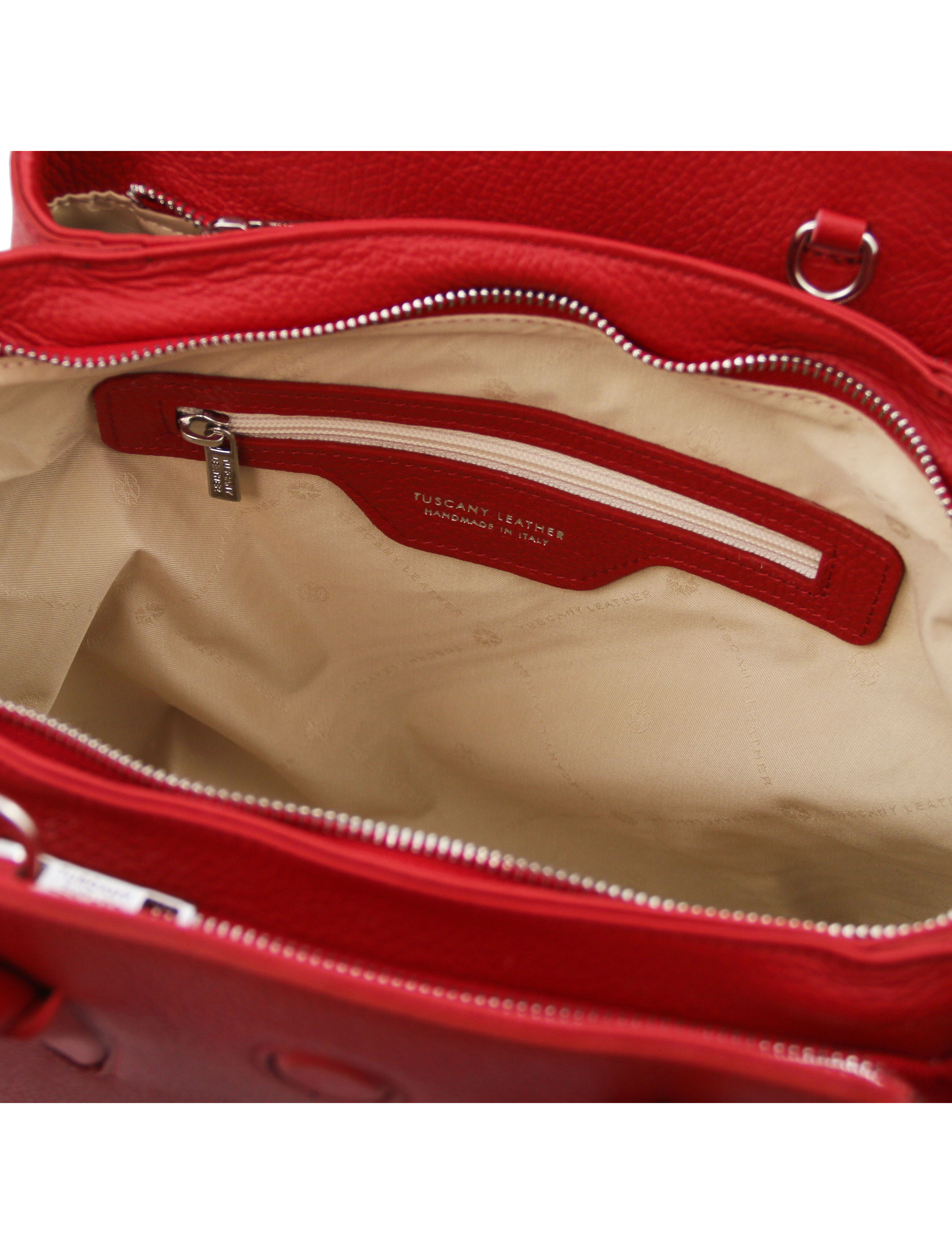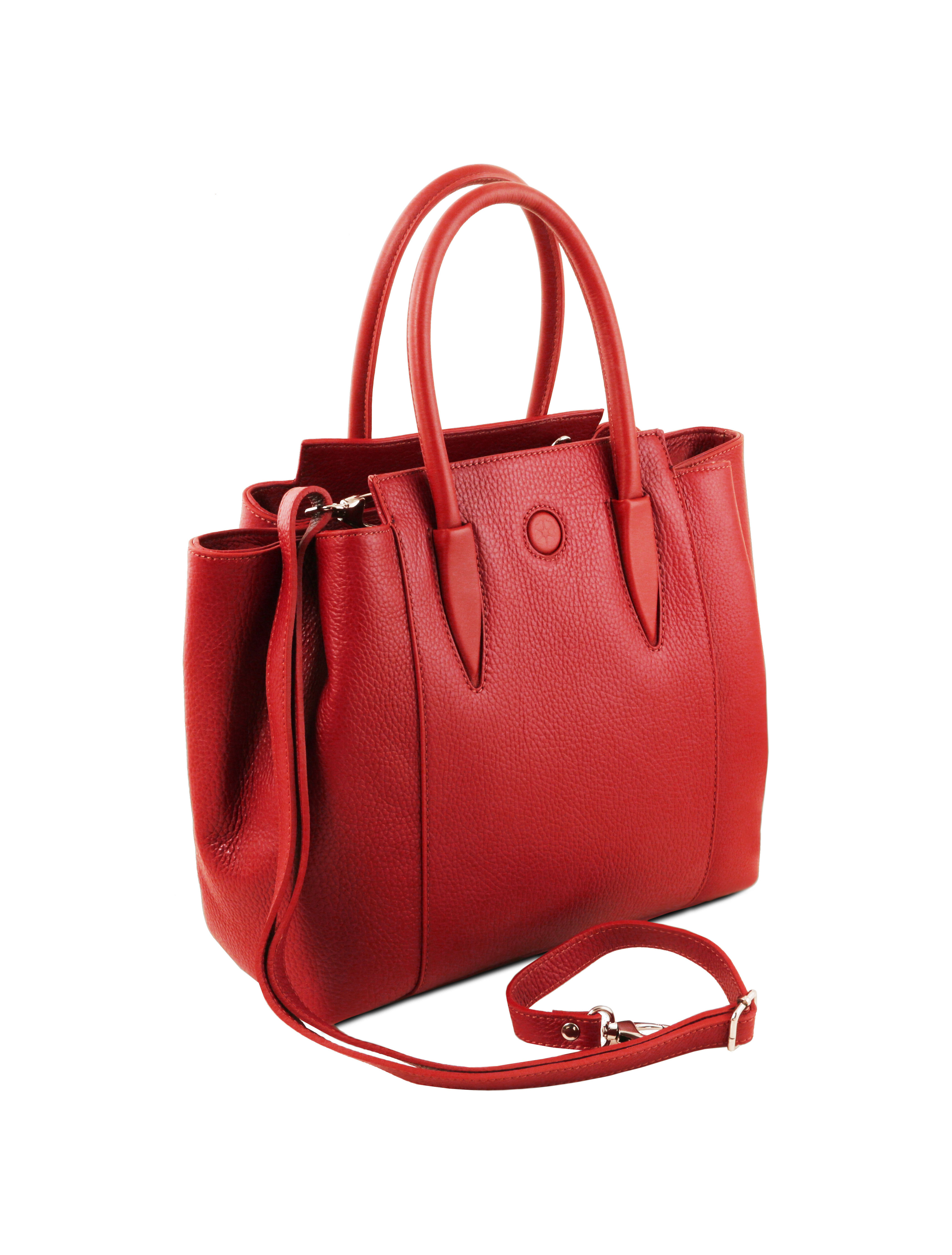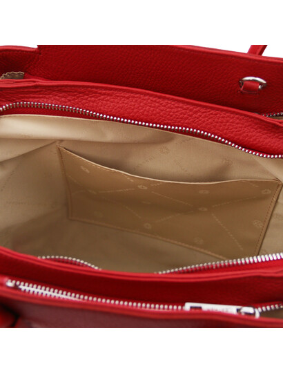 Geantă damă din piele naturală roșu aprins, Tuscany Leather, Tulipan