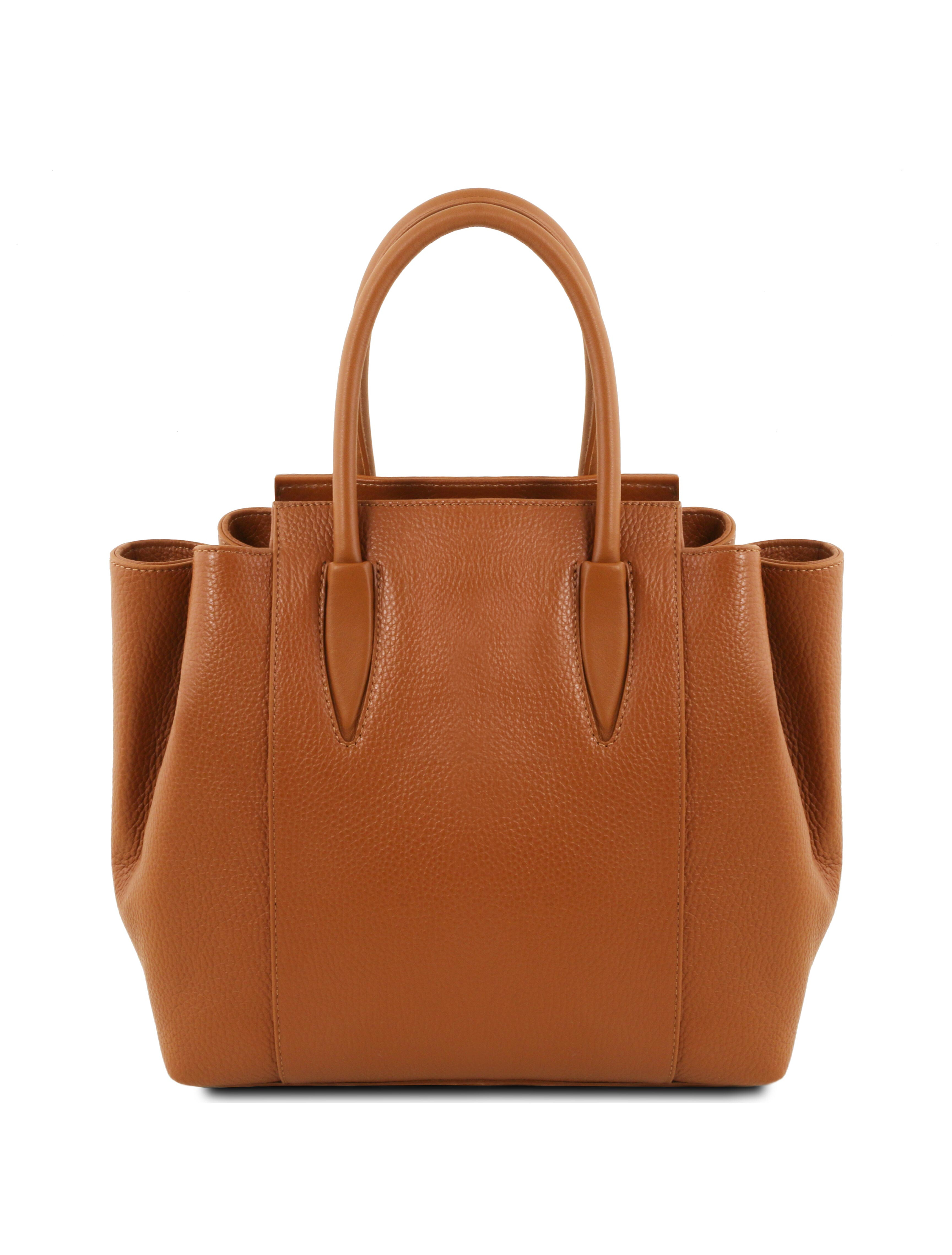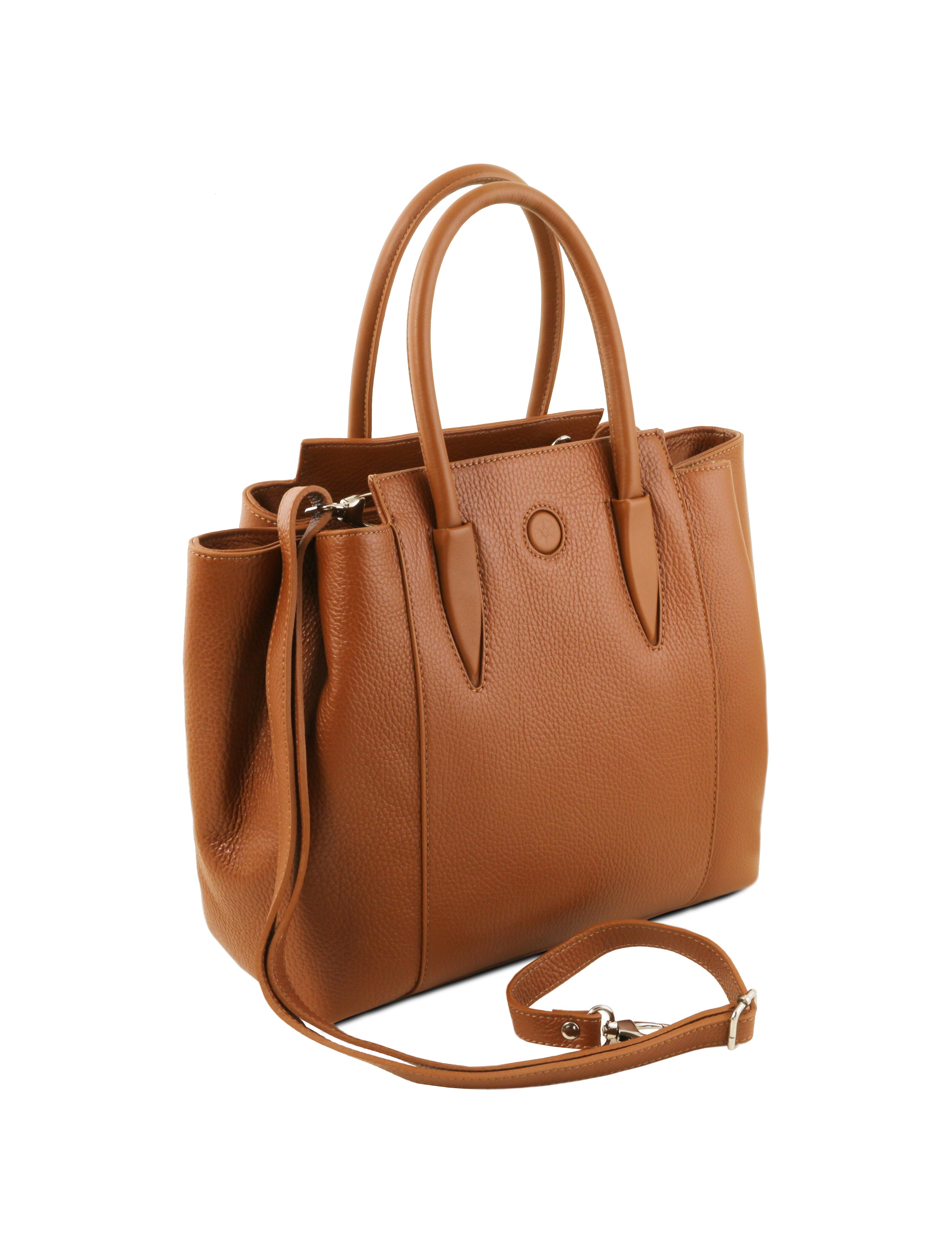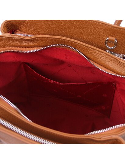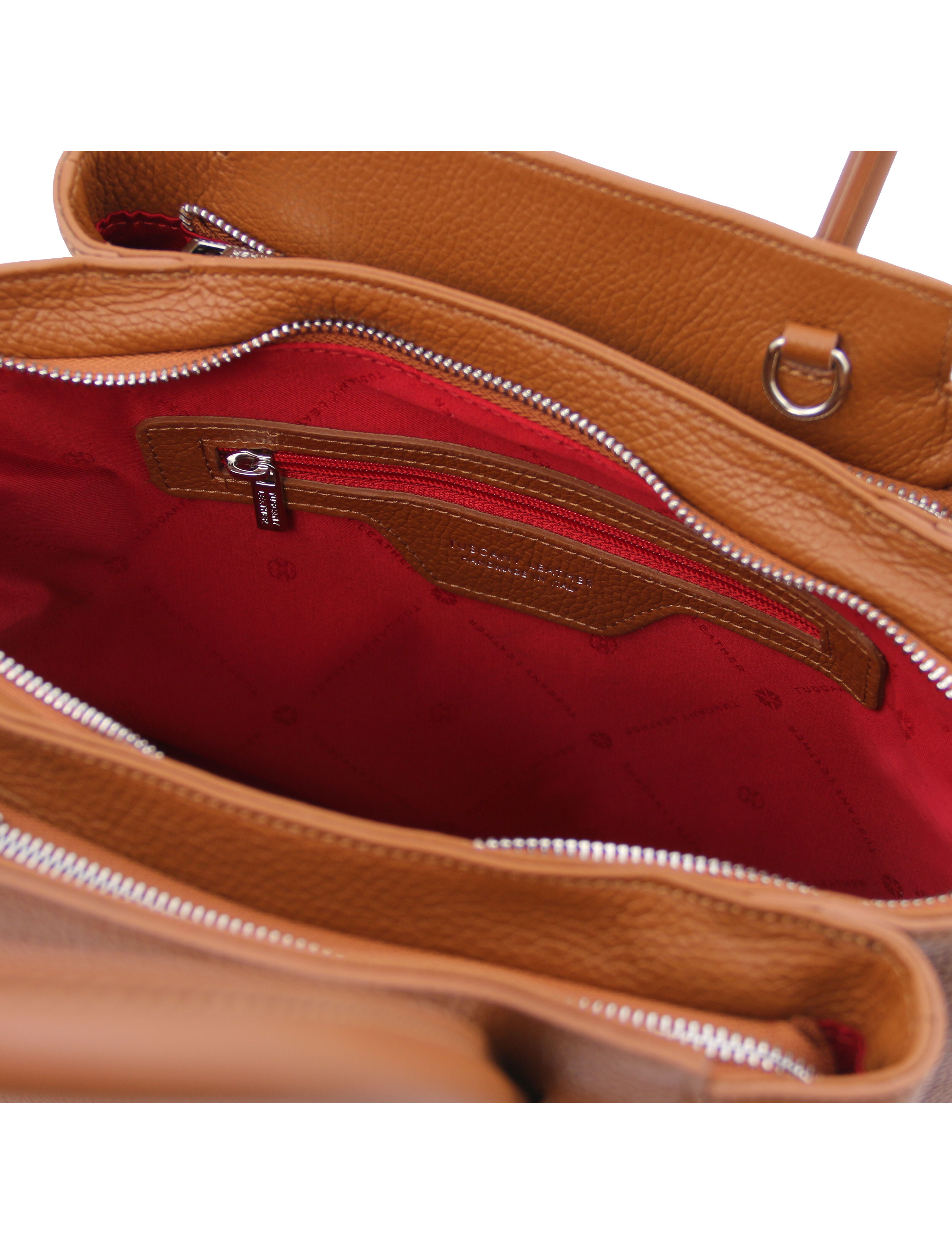 Geanta dama din piele naturala Tuscany Leather, coniac, Tulipan te scoate din anonimat in orice situatie.