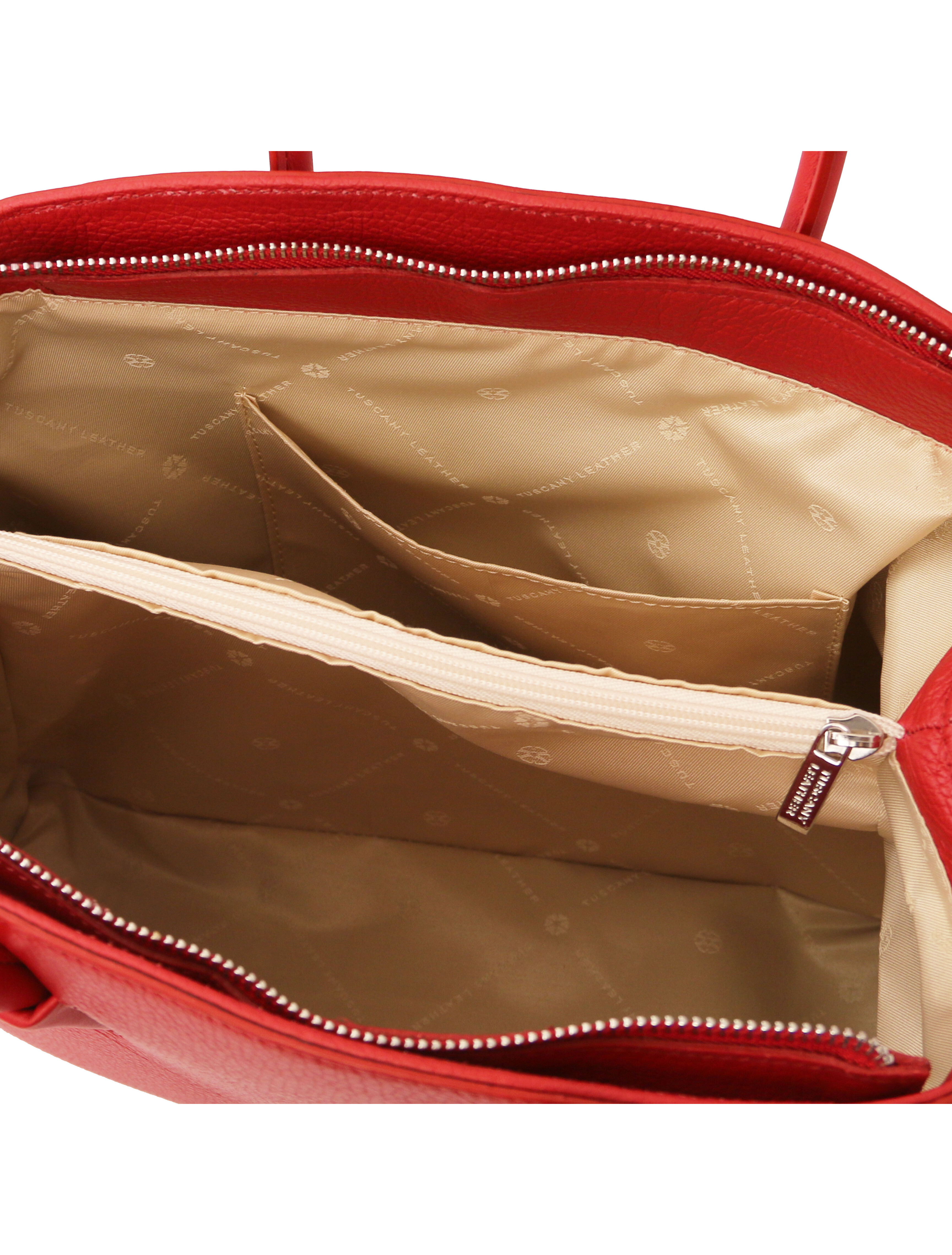 Alege o geanta dama din piele naturala Tuscany Leather, rosu aprins, Camelia pentru tinute care sa impresioneze.