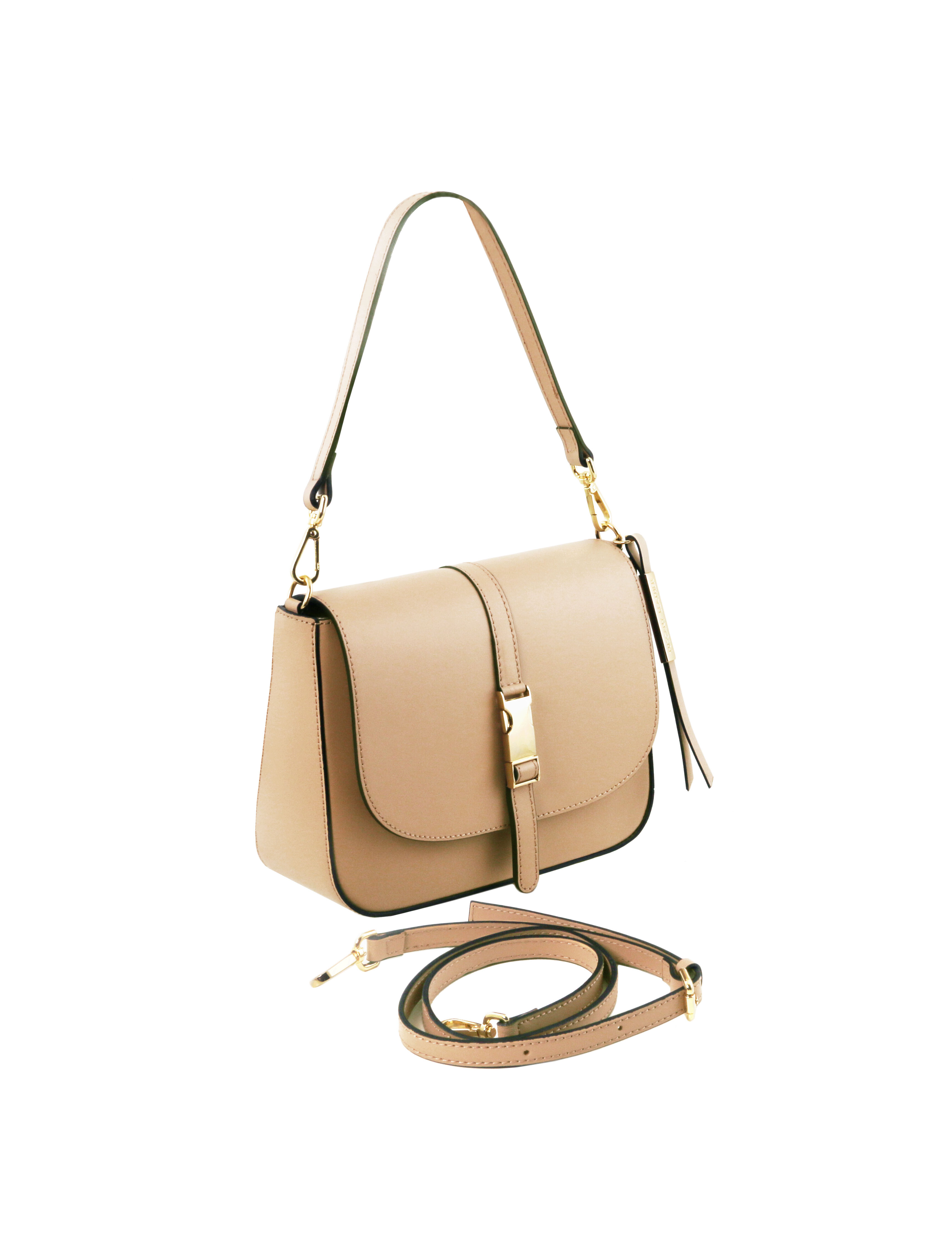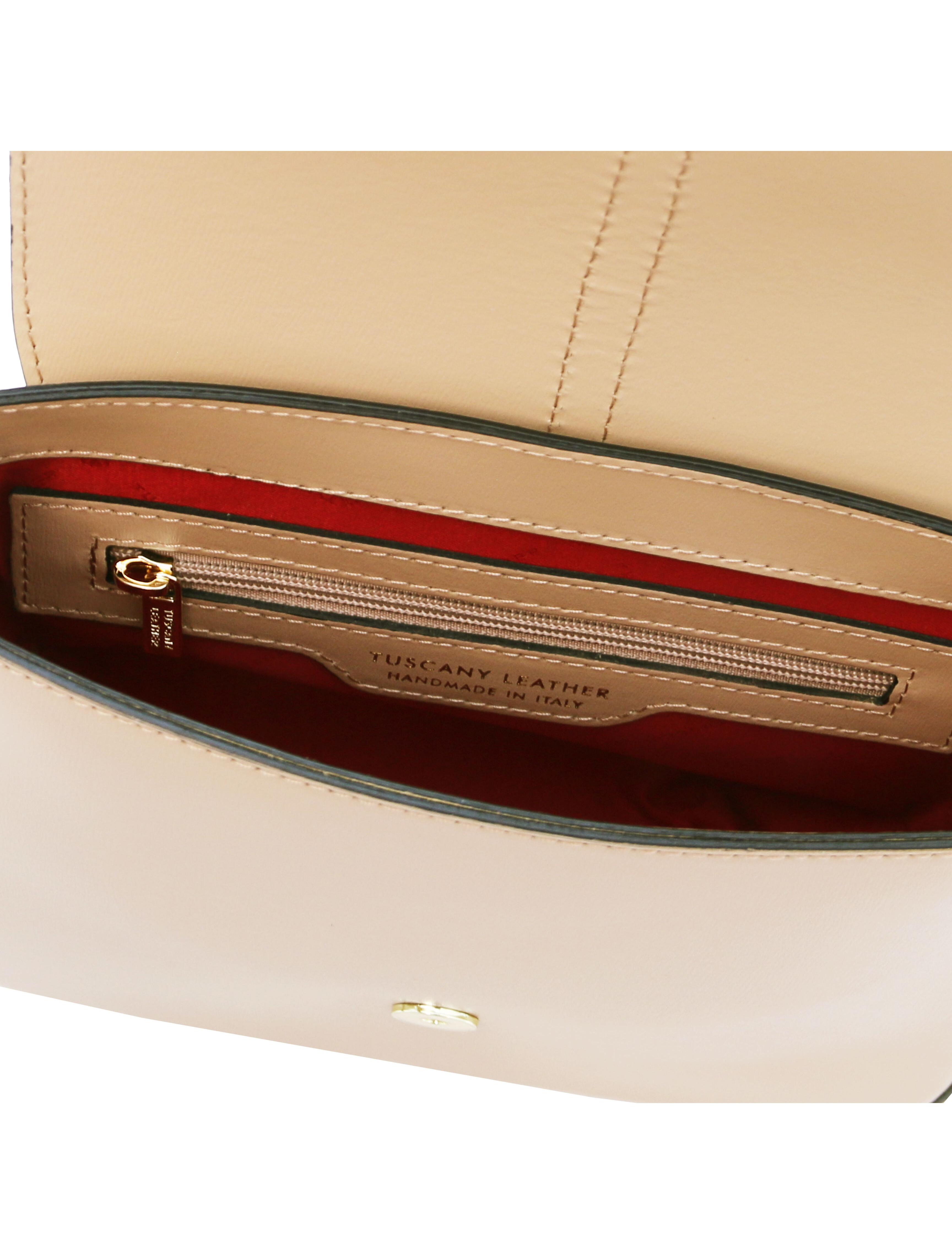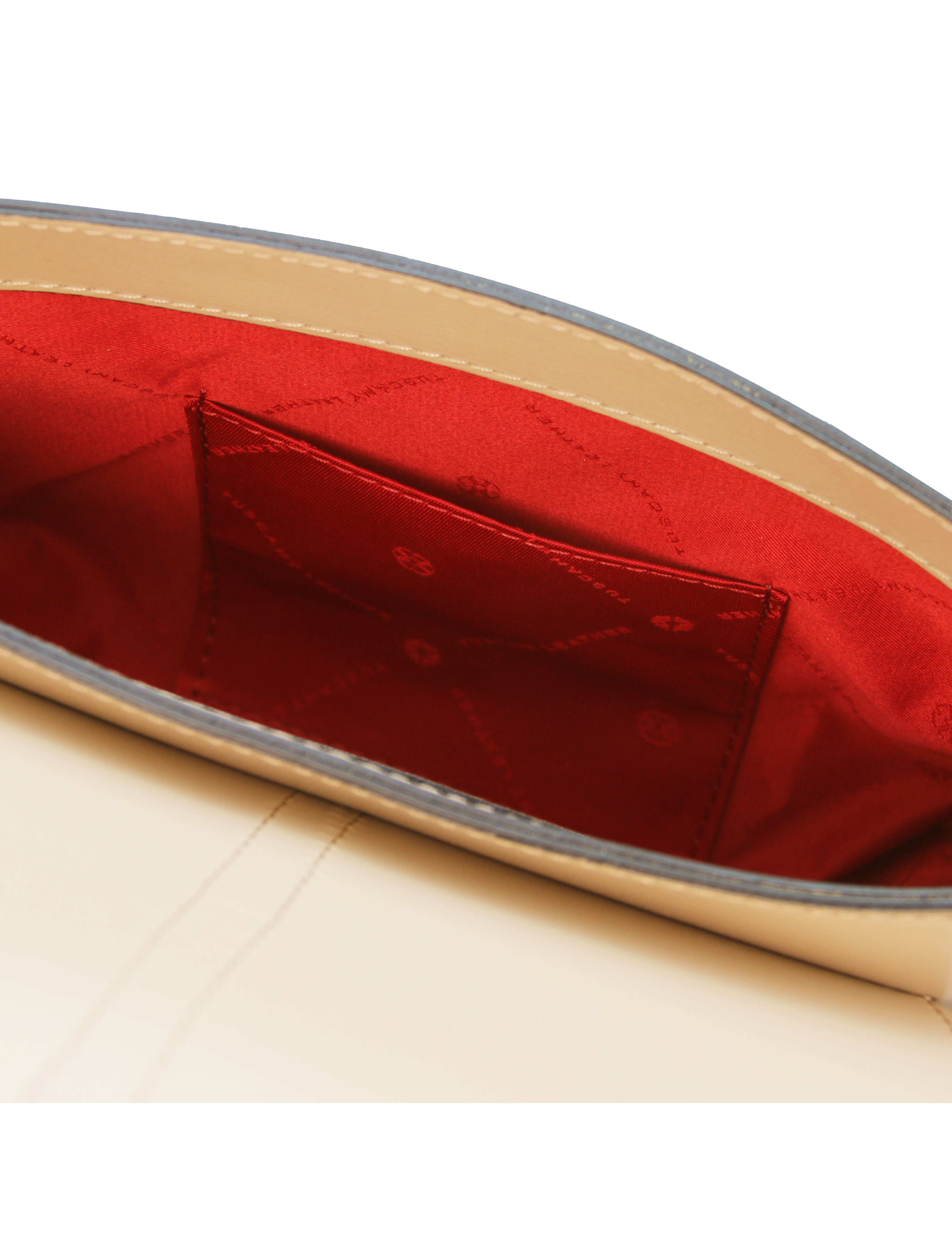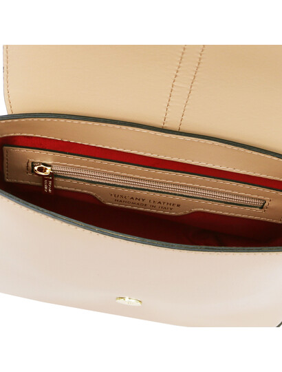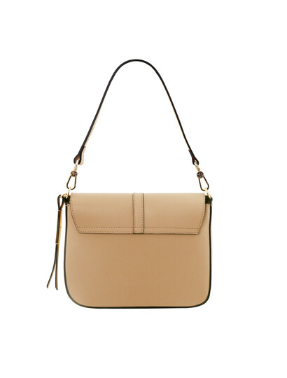 Designul elegant si culoarea deosebita fac din geanta dama din piele naturala sampanie Tuscany Leather, Nausica un accesoriu autentic si sofisticat.