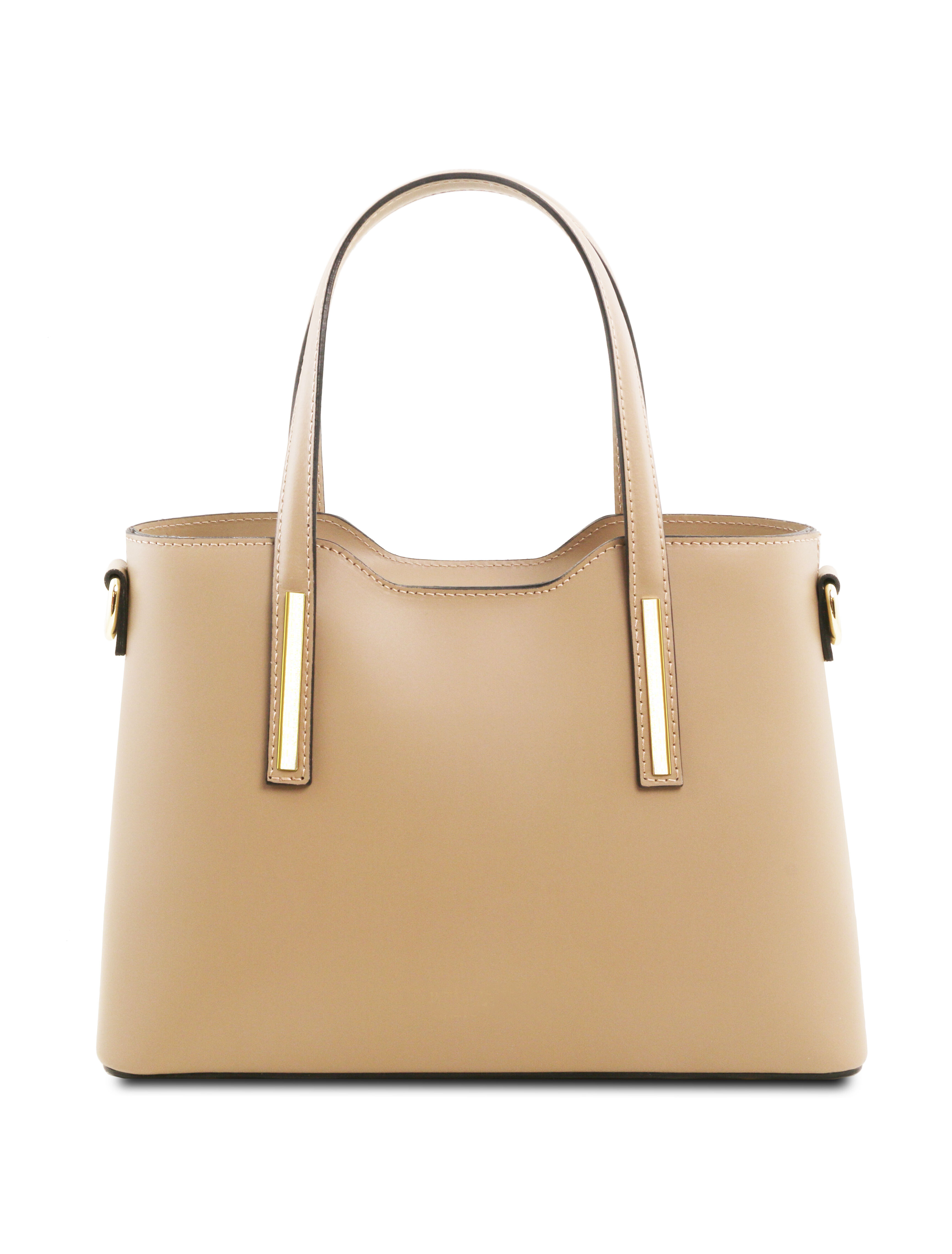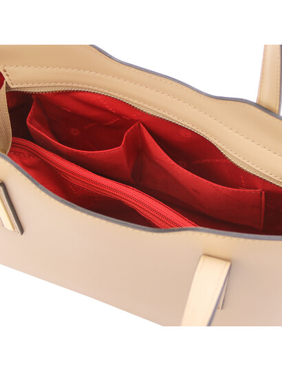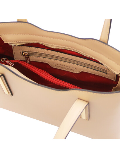 Geanta dama din piele naturala sampanie Tuscany Leather, model Olimpia marime mica confera tinutei o nota de exclusivism.