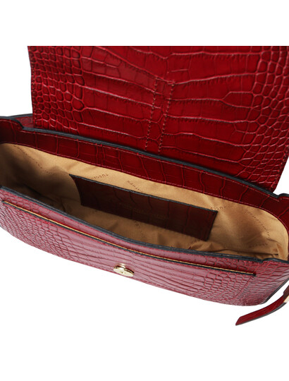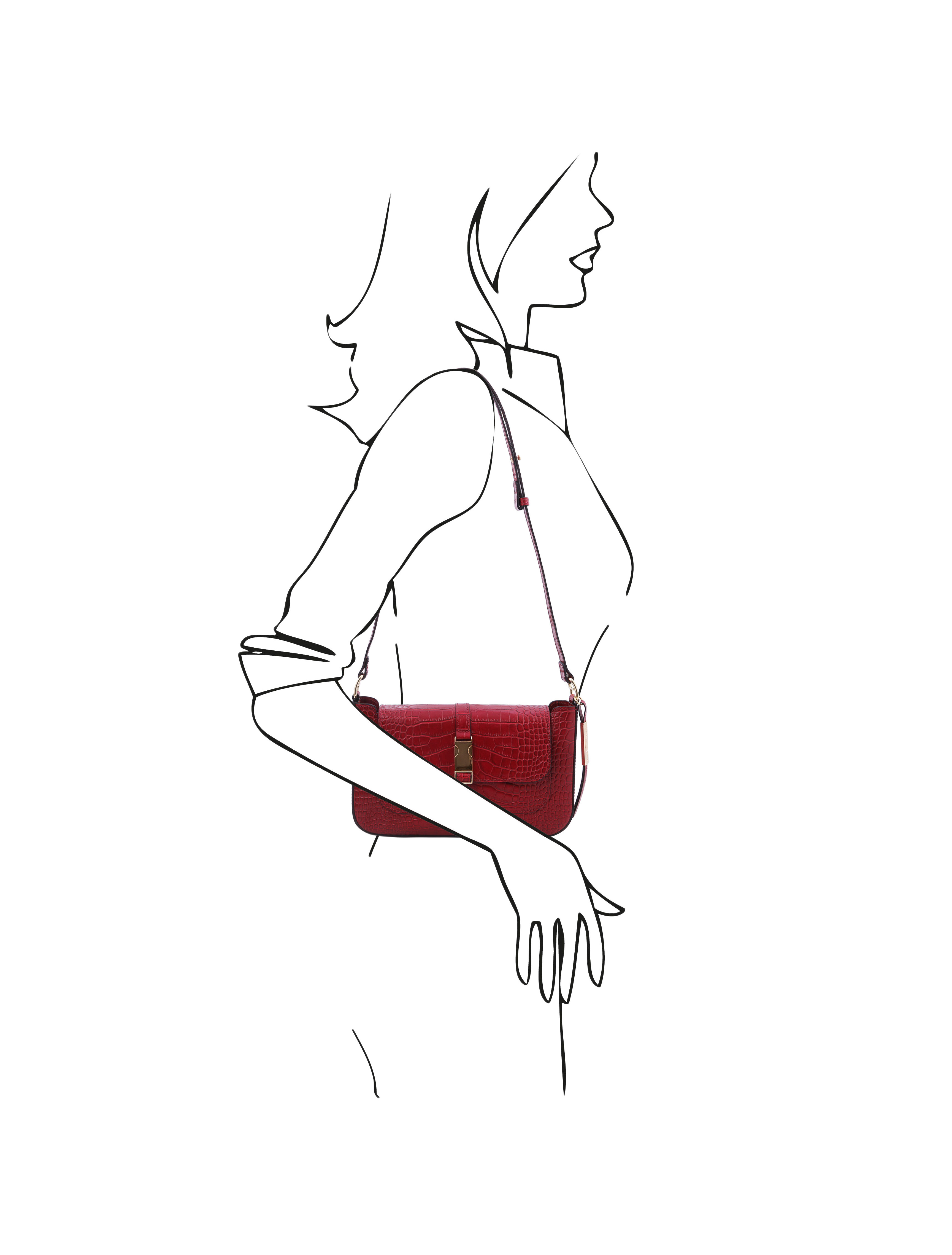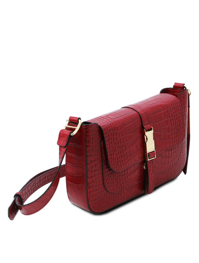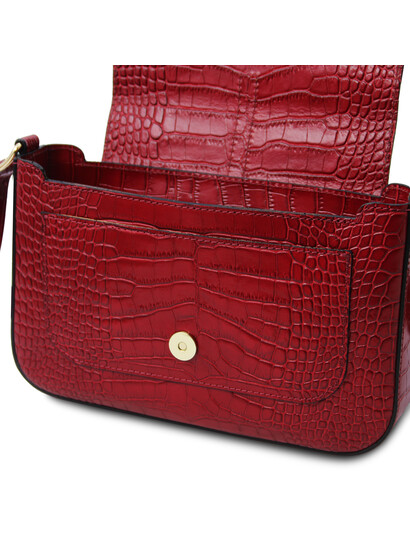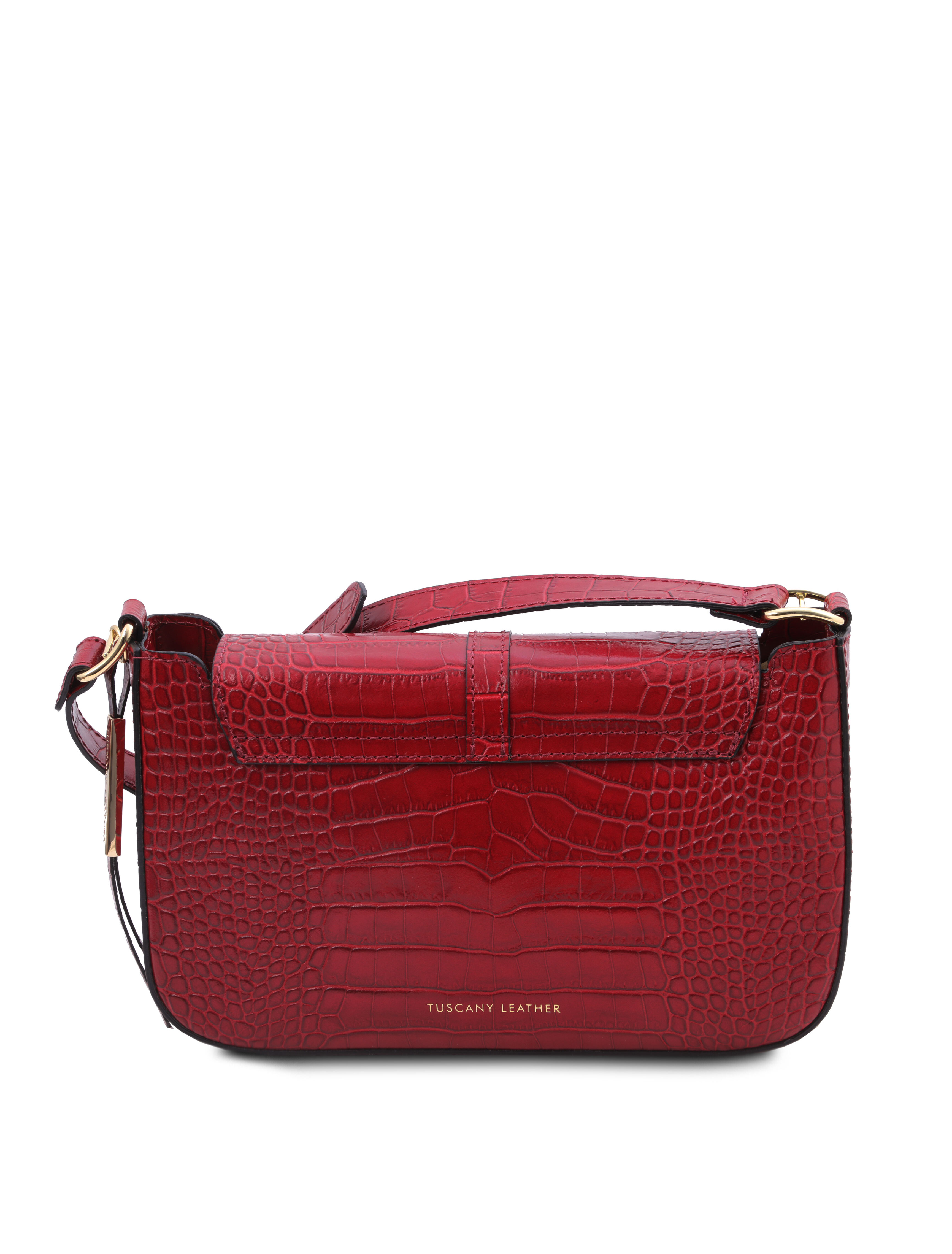 Alege geanta dama din piele naturala rosie croc print, Tuscany Leather, Noemi un accesoriu vibrant ce atrage intotdeauna atentia.
