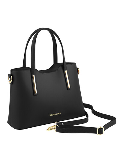 Geanta neagra din piele naturala Tuscany Leather, model Olimpia mica este sofisticata si functionala, pentru o tinuta impecabila.