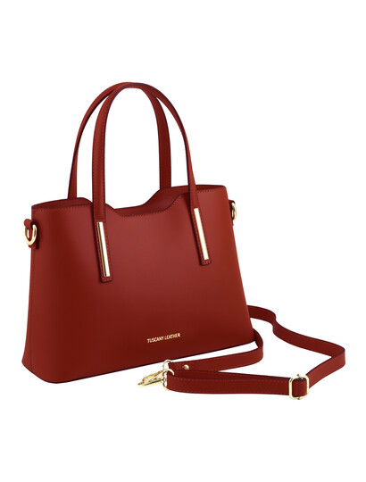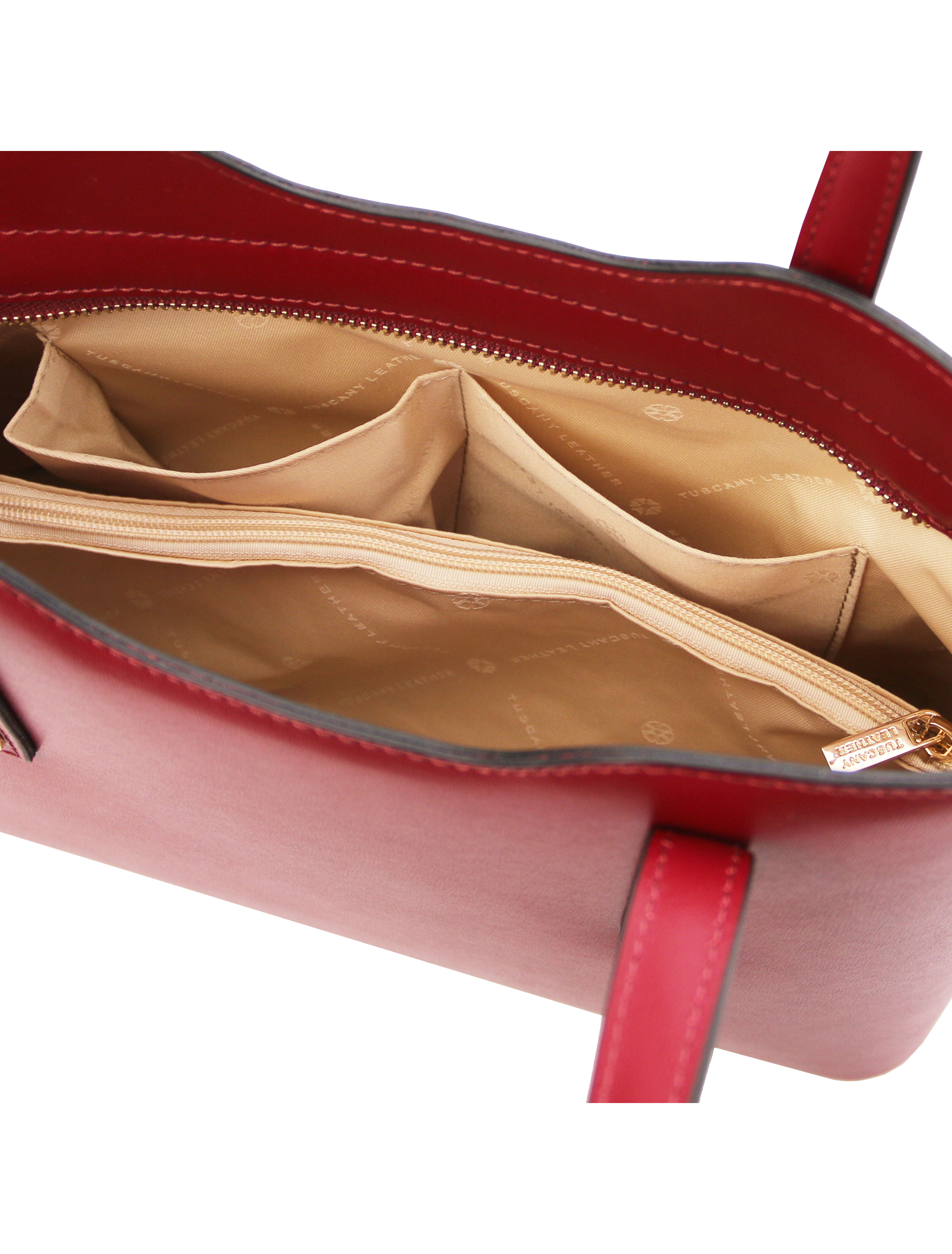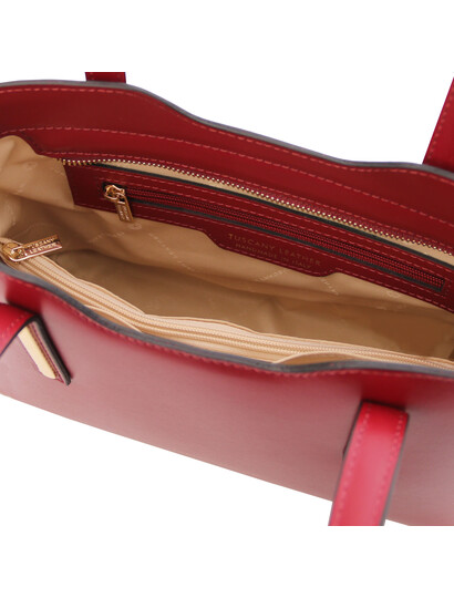 Geanta din piele rosie Tuscany Leather, model Olimpia marime mica confera tinutei o nota de exclusivism.