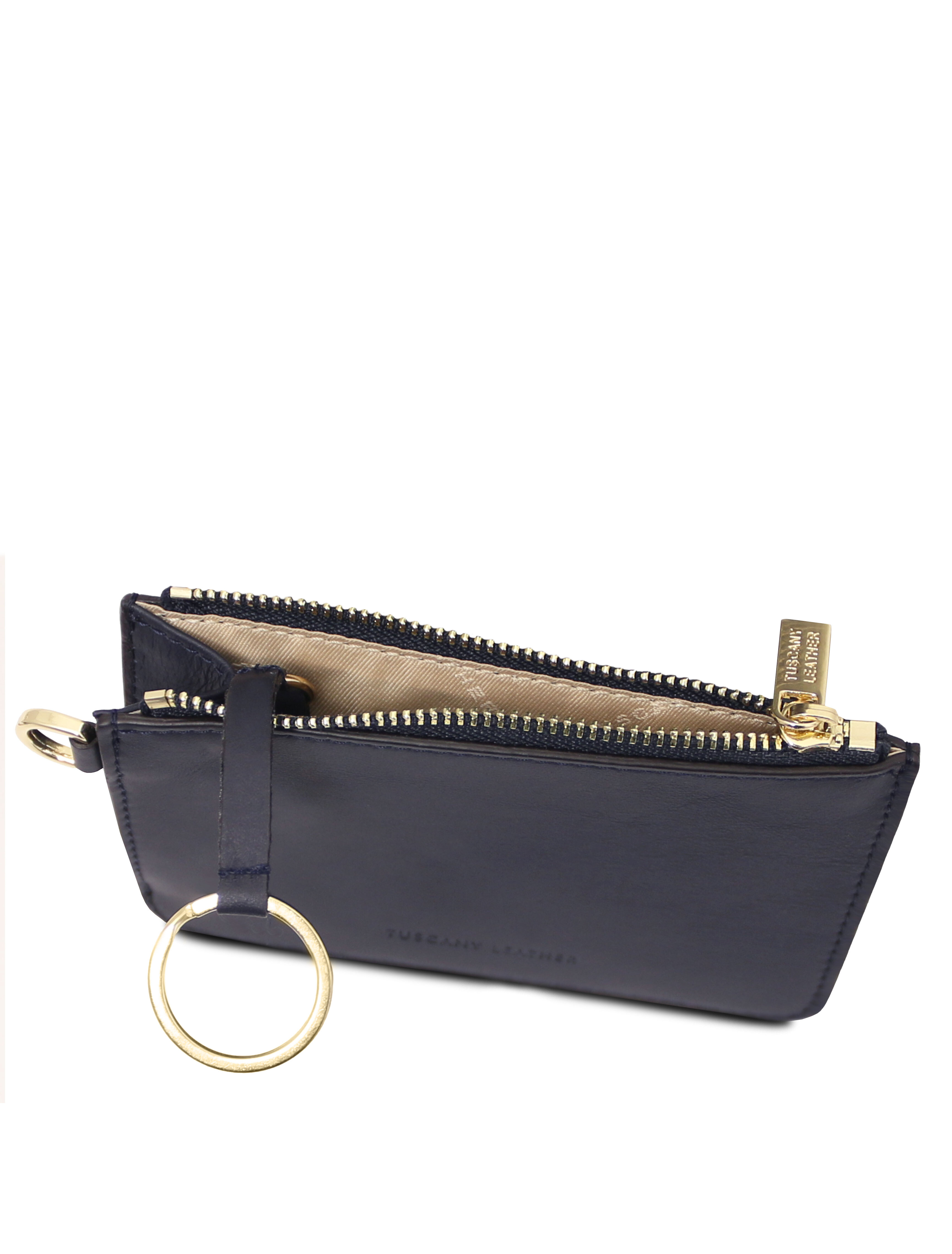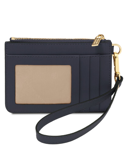 Leather card holder with handle Dark Blue
