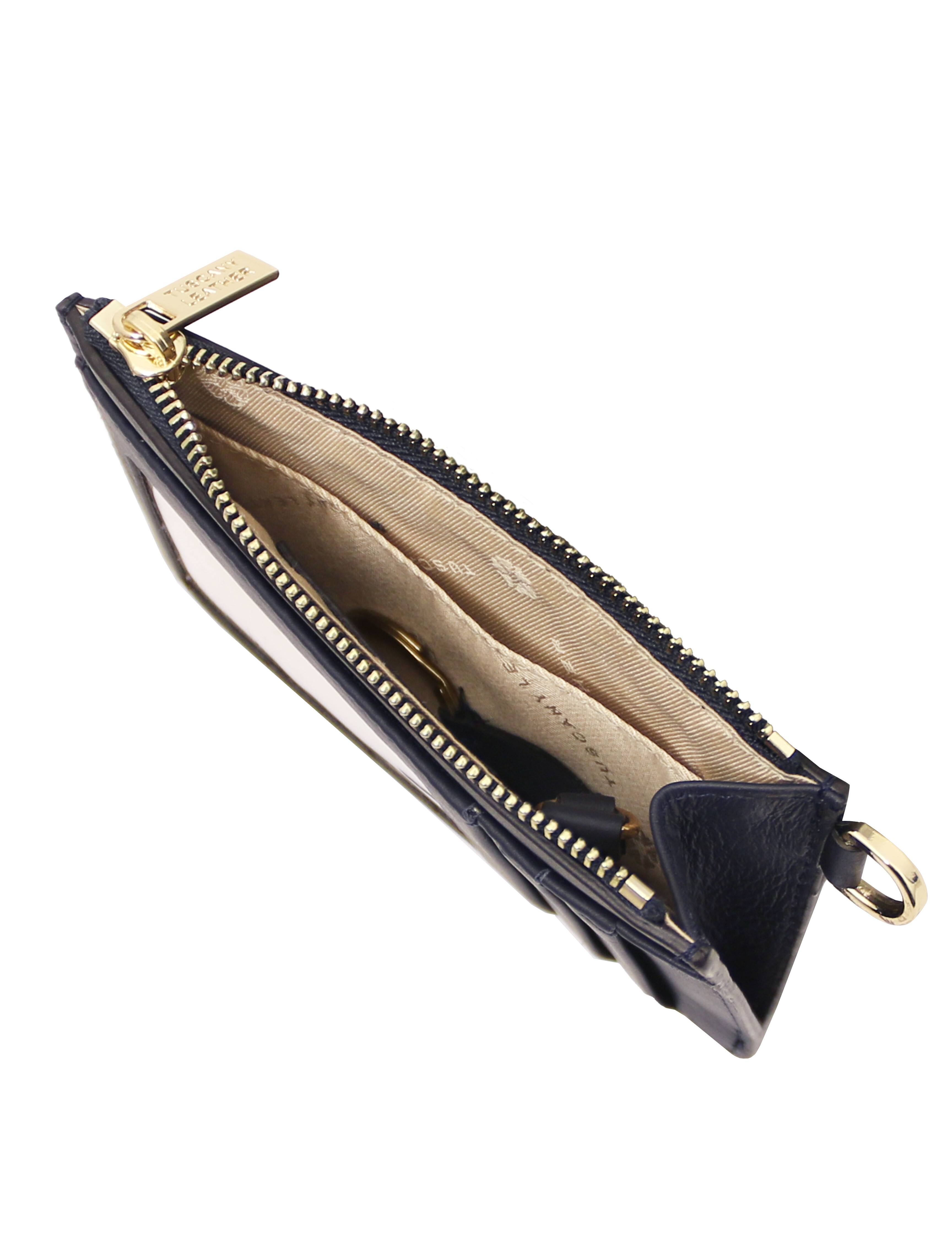 Leather card holder with handle Beige