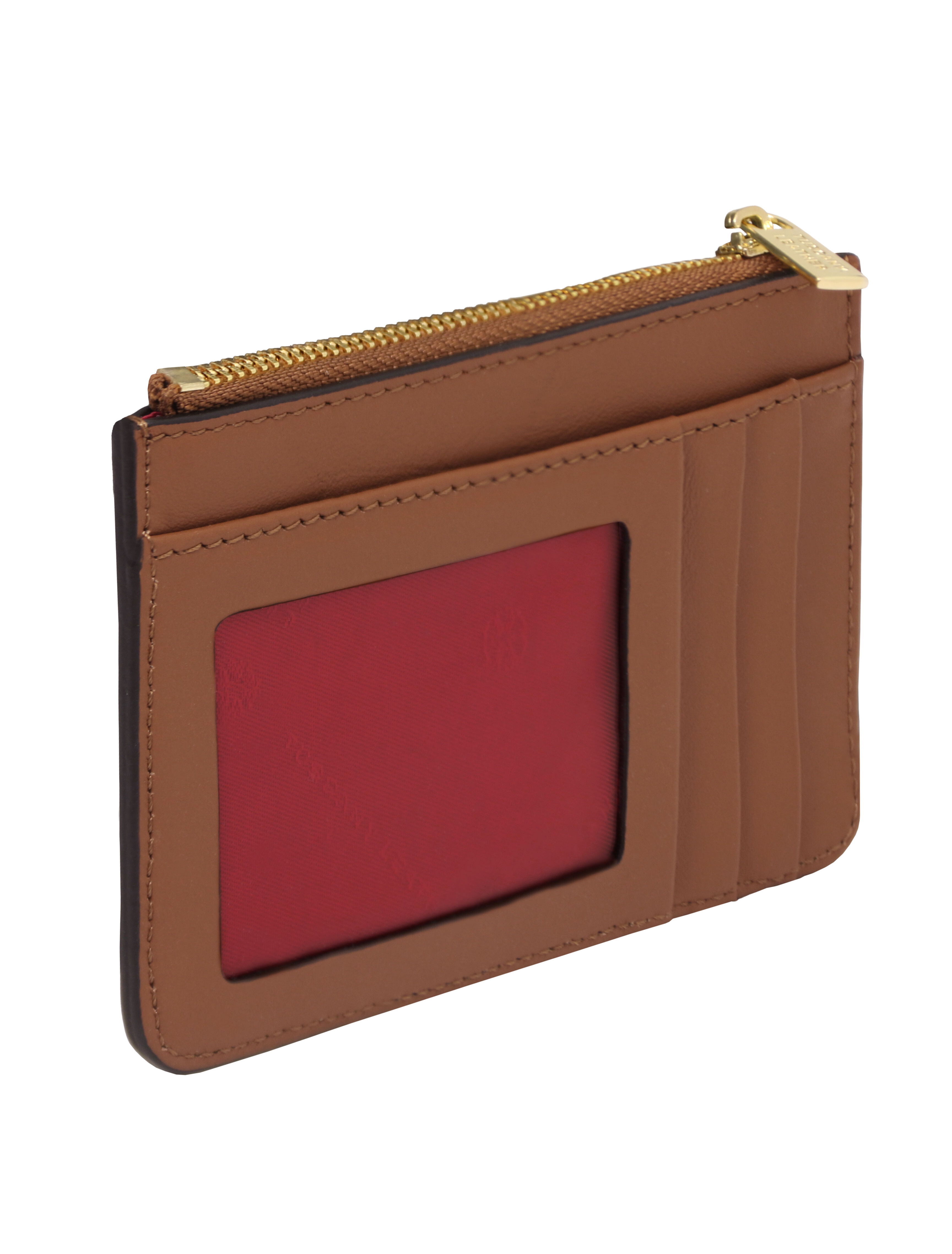 Leather card holder with handle Cognac