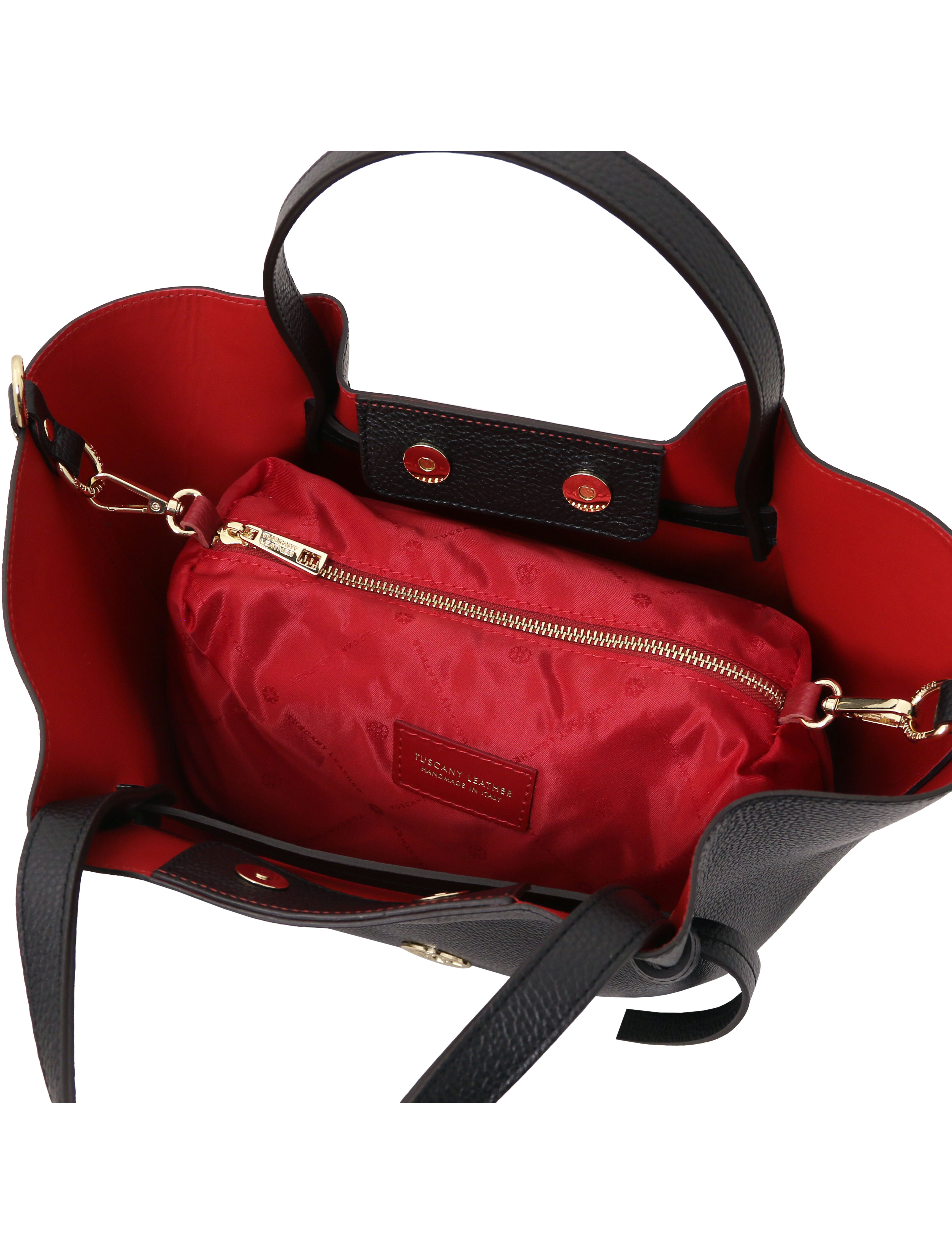 Geanta de cumpărături din piele Legame Negru îmbină eleganța clasică cu funcționalitatea de zi cu zi. Realizată din piele de calitate superioară, are o textură plăcută la atingere și o formă structurată, care își păstrează aspectul impecabil în timp. Interiorul spațios îți permite să porți agenda, portofelul, telefonul și alte esențiale, fiind ideală atât pentru birou, cât și pentru ieșirile în oraș. Mânerele rezistente asigură confort la purtare, iar nuanța neagră rafinată se potrivește ușor cu orice ținută. Un accesoriu versatil, modern și practic, perfect pentru femeia activă care își dorește stil și organizare în fiecare zi.