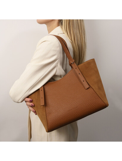 Amy Soft leather shopping bag Dark Brown