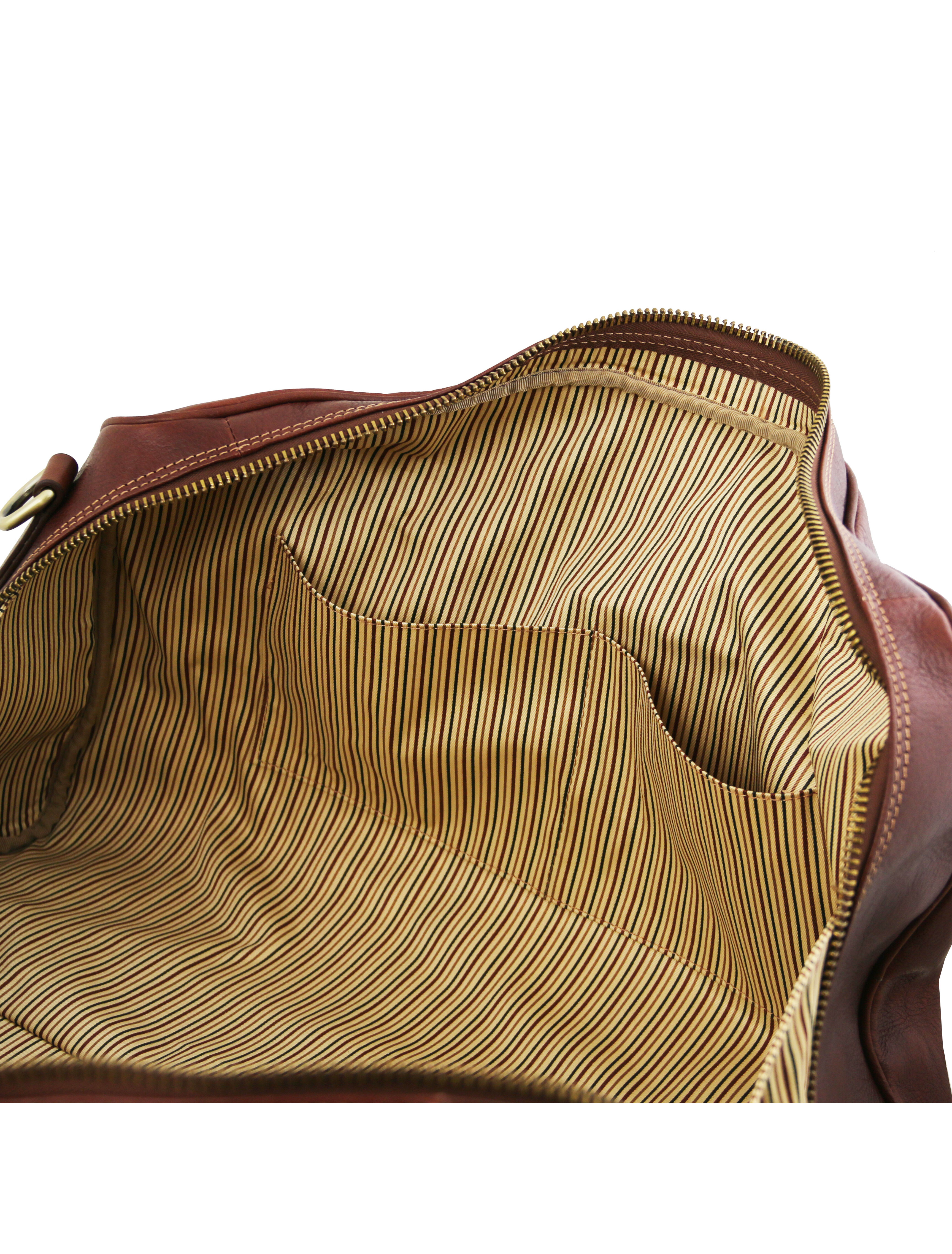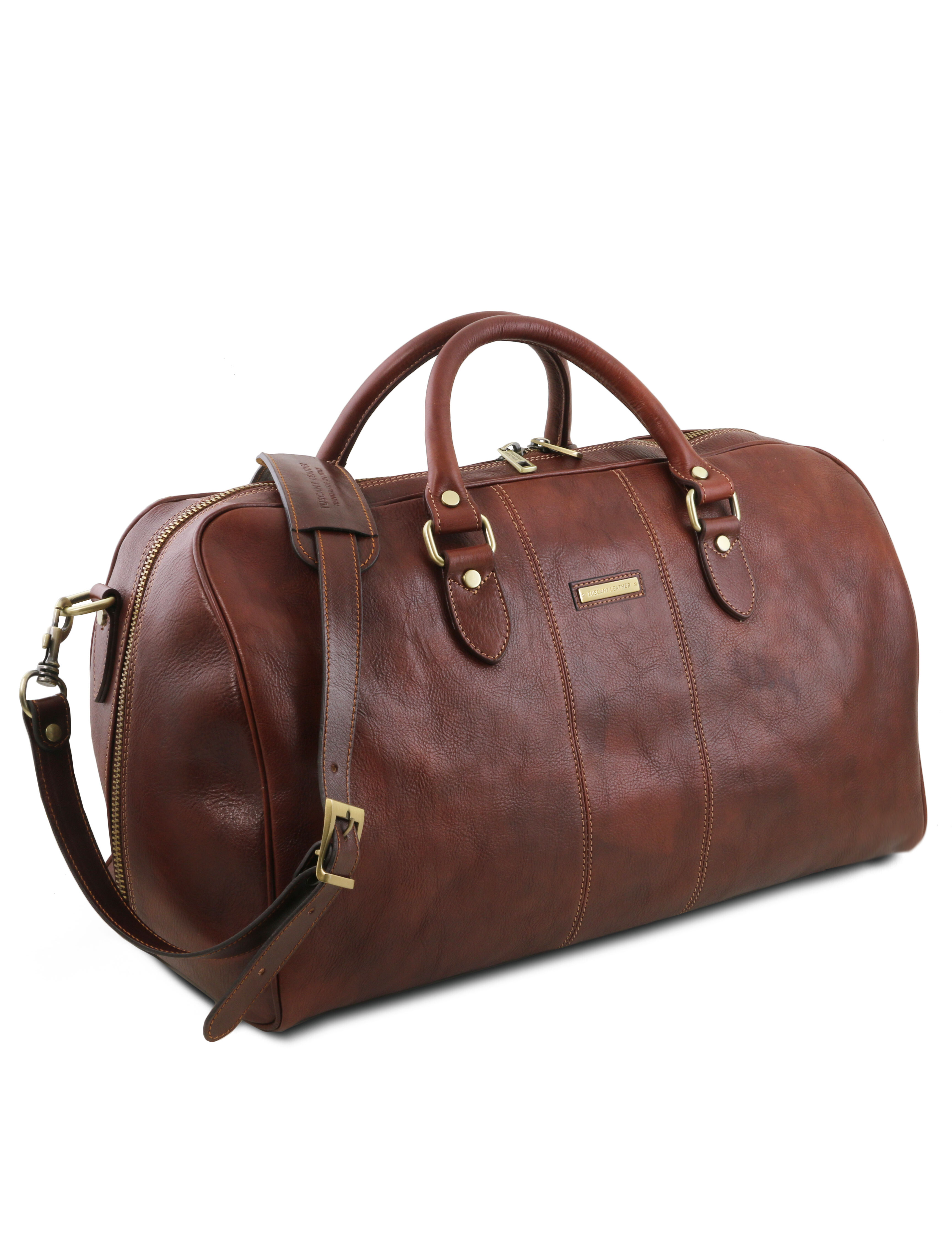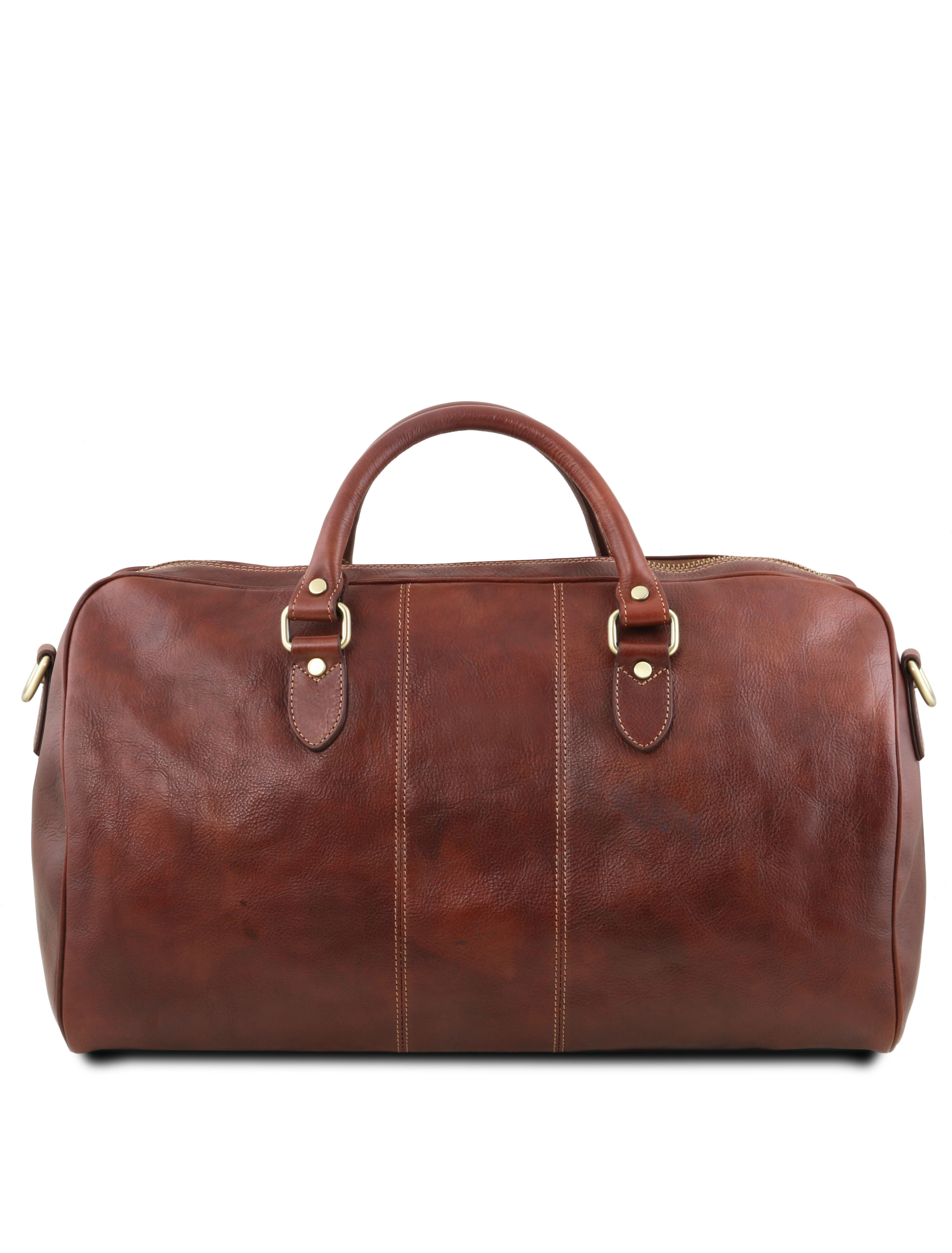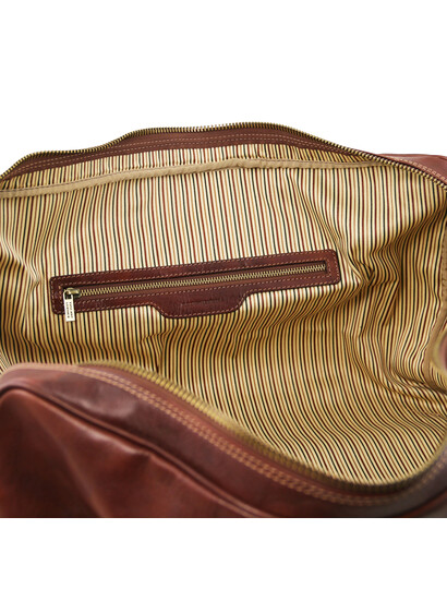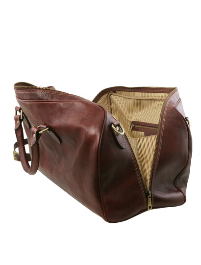 Descoperă geanta de voiaj Lisbona din piele, în mărime mare, maro, creată pentru cei care călătoresc des și apreciază eleganța clasică. Fabricată din piele naturală de înaltă calitate, această geantă duffle oferă rezistență în timp și un aspect rafinat, potrivit atât pentru călătorii de afaceri, cât și pentru escapade de weekend. Compartimentul principal spațios îți permite să organizezi ușor hainele și accesoriile, iar buzunarele interioare te ajută să păstrezi obiectele esențiale la îndemână. Mânerele solide și cureaua de umăr reglabilă asigură confort la transport, indiferent de distanță. Stilul minimalist și nuanța caldă de maro transformă geanta Lisbona într-un accesoriu versatil și sofisticat.