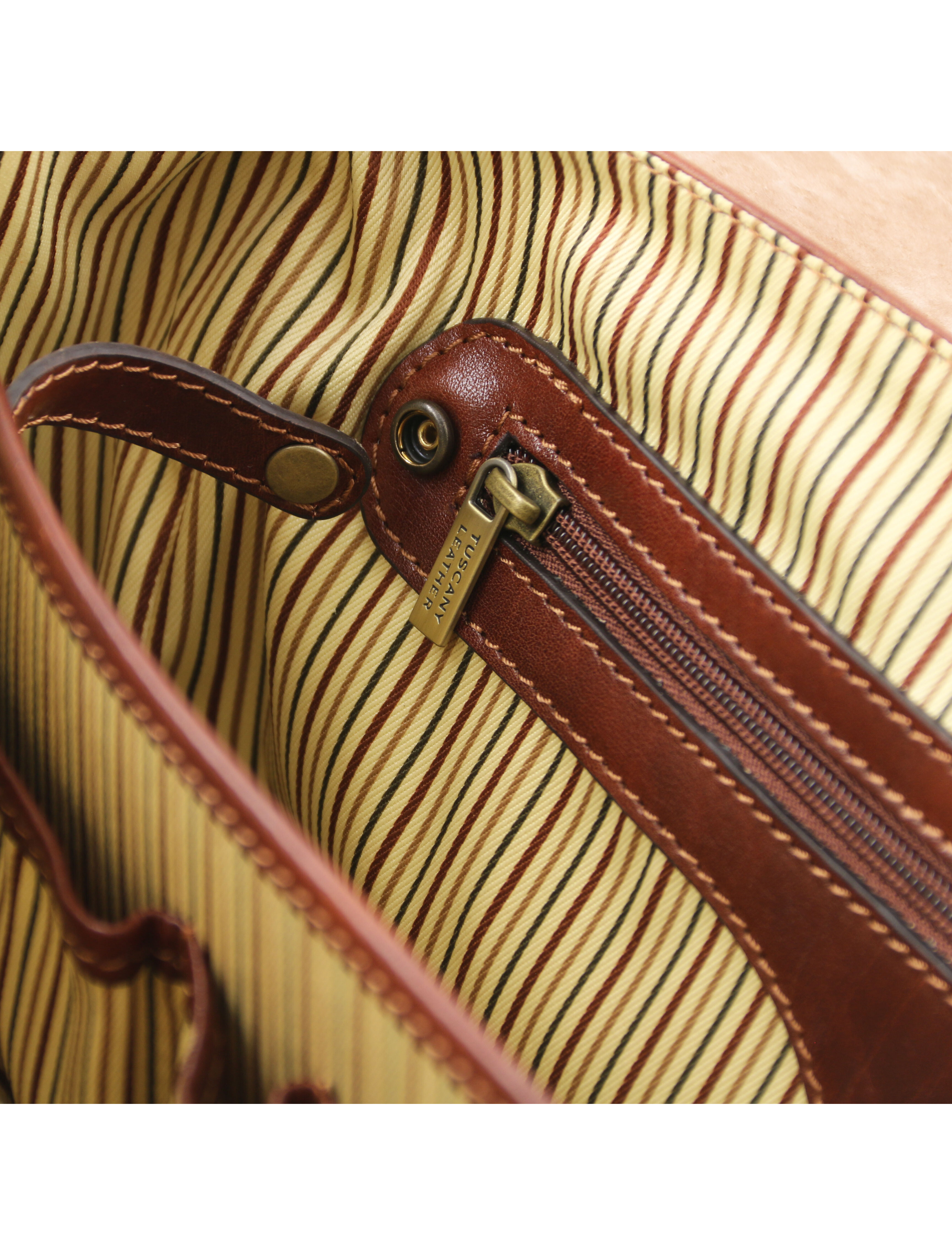 Geanta messenger din piele Mantova Maro îmbină eleganța clasică cu funcționalitatea de zi cu zi. Realizată din piele naturală de calitate superioară, oferă un aspect rafinat și o durabilitate excelentă. Compartimentul principal spațios găzduiește cu ușurință documente, agendă, tabletă sau un laptop subțire, în timp ce buzunarele interioare și exterioare mențin toate accesoriile bine organizate. Cureaua de umăr reglabilă asigură confort pe durata întregii zile, fie că o porți la birou, la cursuri sau în oraș. Nuanța caldă de maro se potrivește ușor cu orice ținută, transformând geanta Mantova într-un accesoriu versatil, ideal pentru cei care apreciază stilul, ordinea și calitatea autentică.