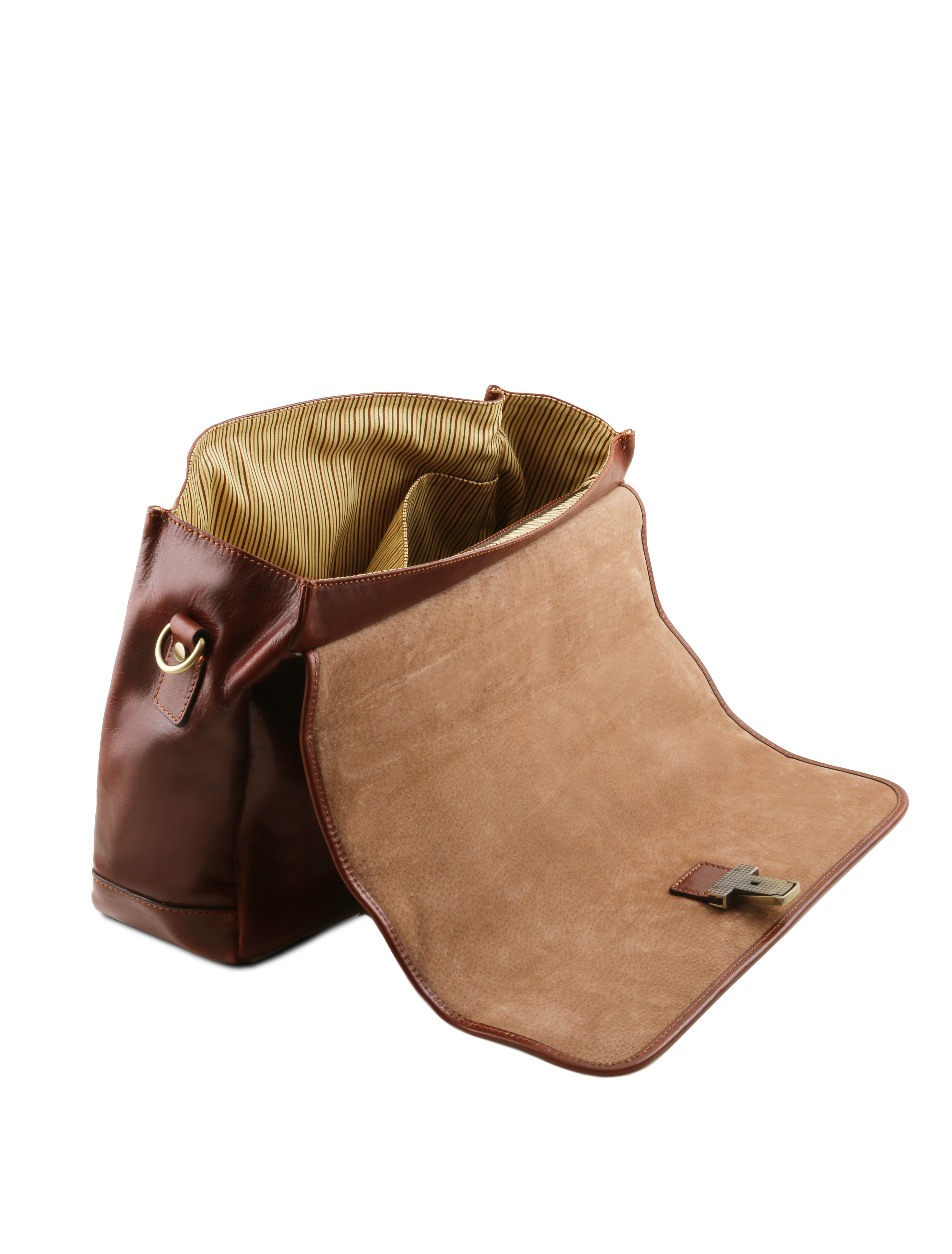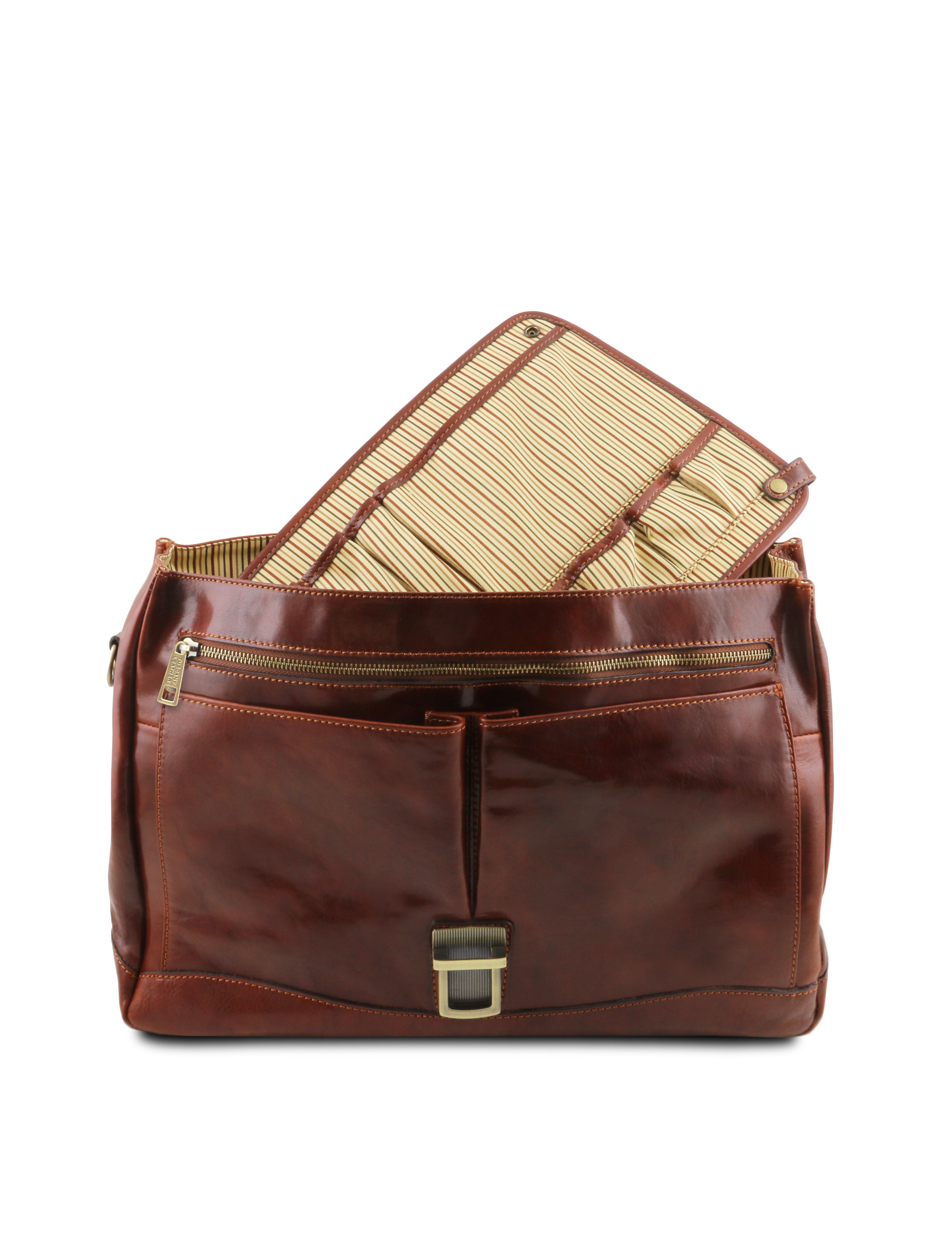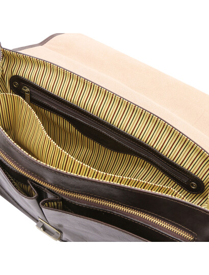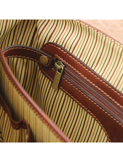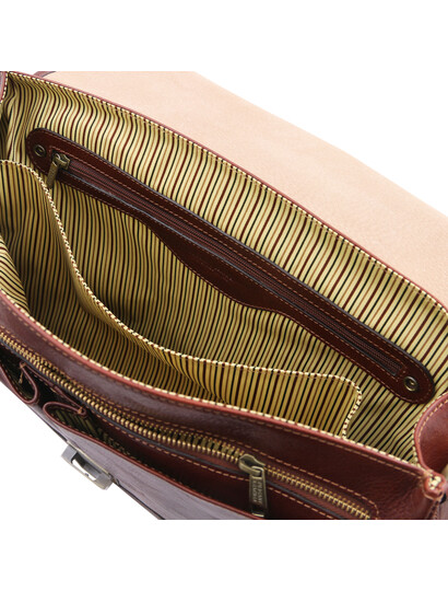 Descoperă servieta Mantova din piele naturală, un accesoriu TL SMART creat pentru profesioniștii care apreciază eleganța funcțională. Designul cu clapetă și închidere sigură protejează documentele, laptopul și accesoriile esențiale, păstrând un aspect impecabil în orice context de business. Interiorul este inteligent compartimentat, cu multiple spații dedicate pentru dosare, agendă, telefon și instrumente de scris, astfel încât totul să fie mereu la îndemână. Pielea de înaltă calitate, în nuanță de maro închis, conferă un stil clasic și rafinat, potrivit atât pentru birou, cât și pentru întâlniri importante. Alege Mantova pentru o imagine profesionistă și o organizare impecabilă, zi de zi.