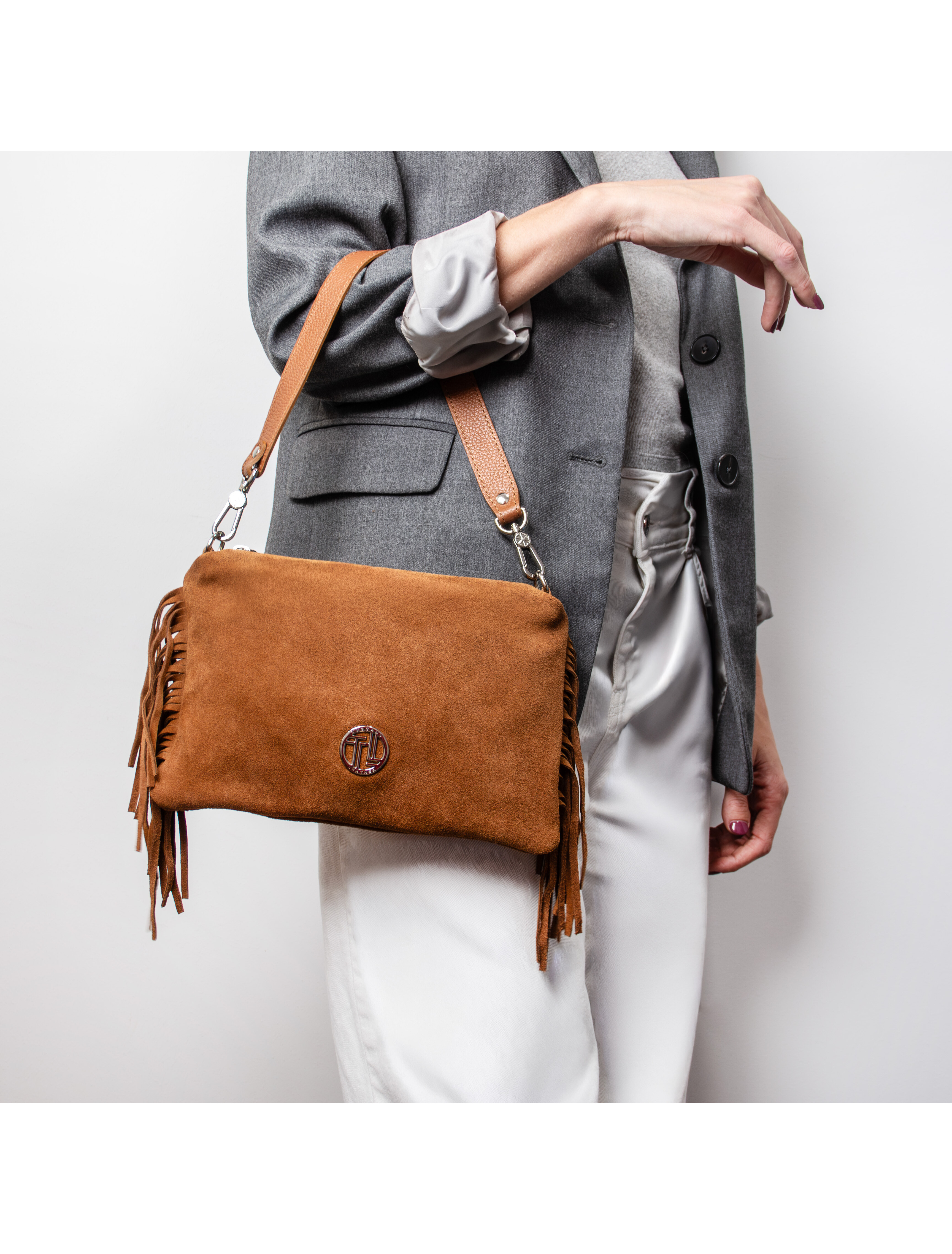 Nomade Suede leather fringe shoulder bag Dark Taupe