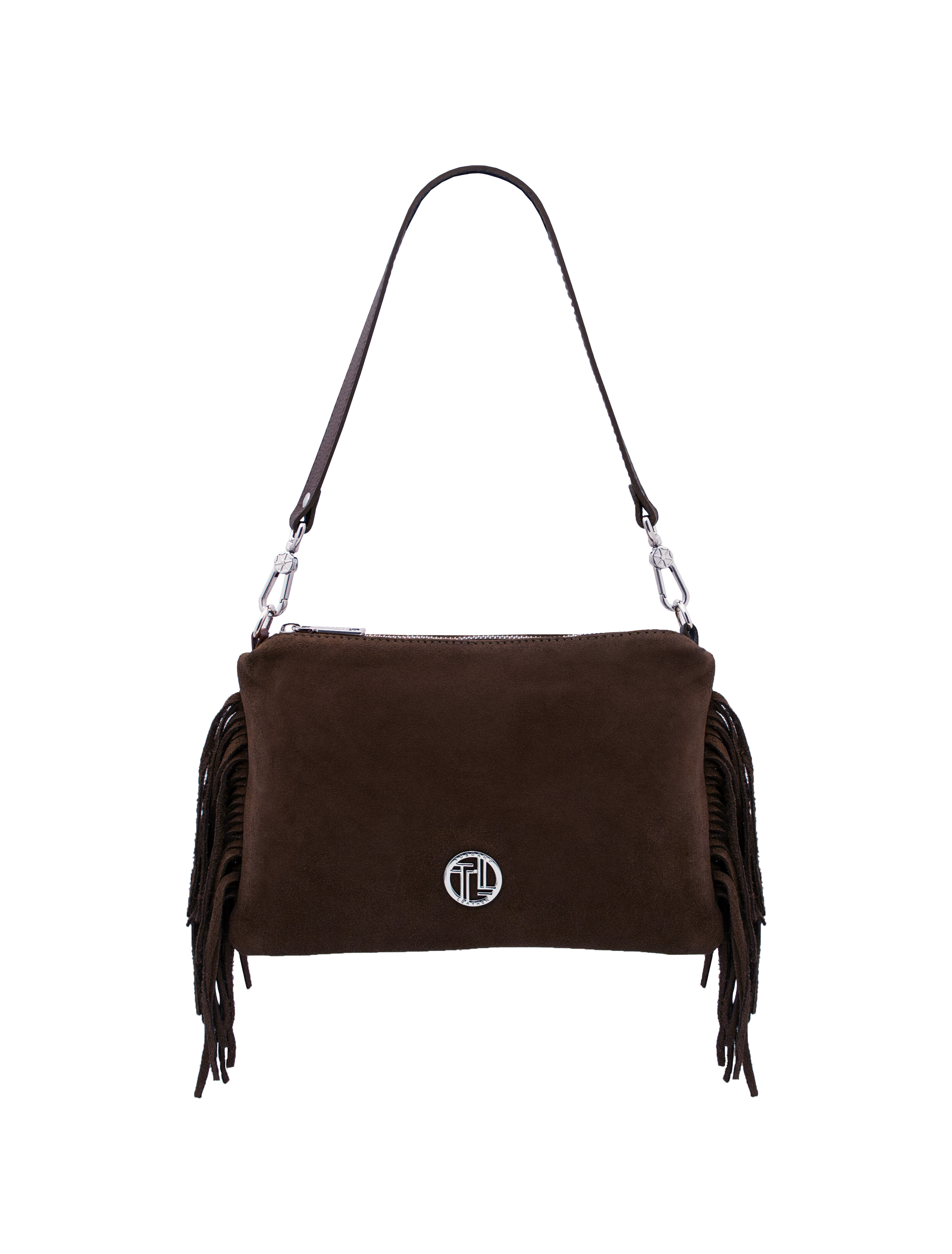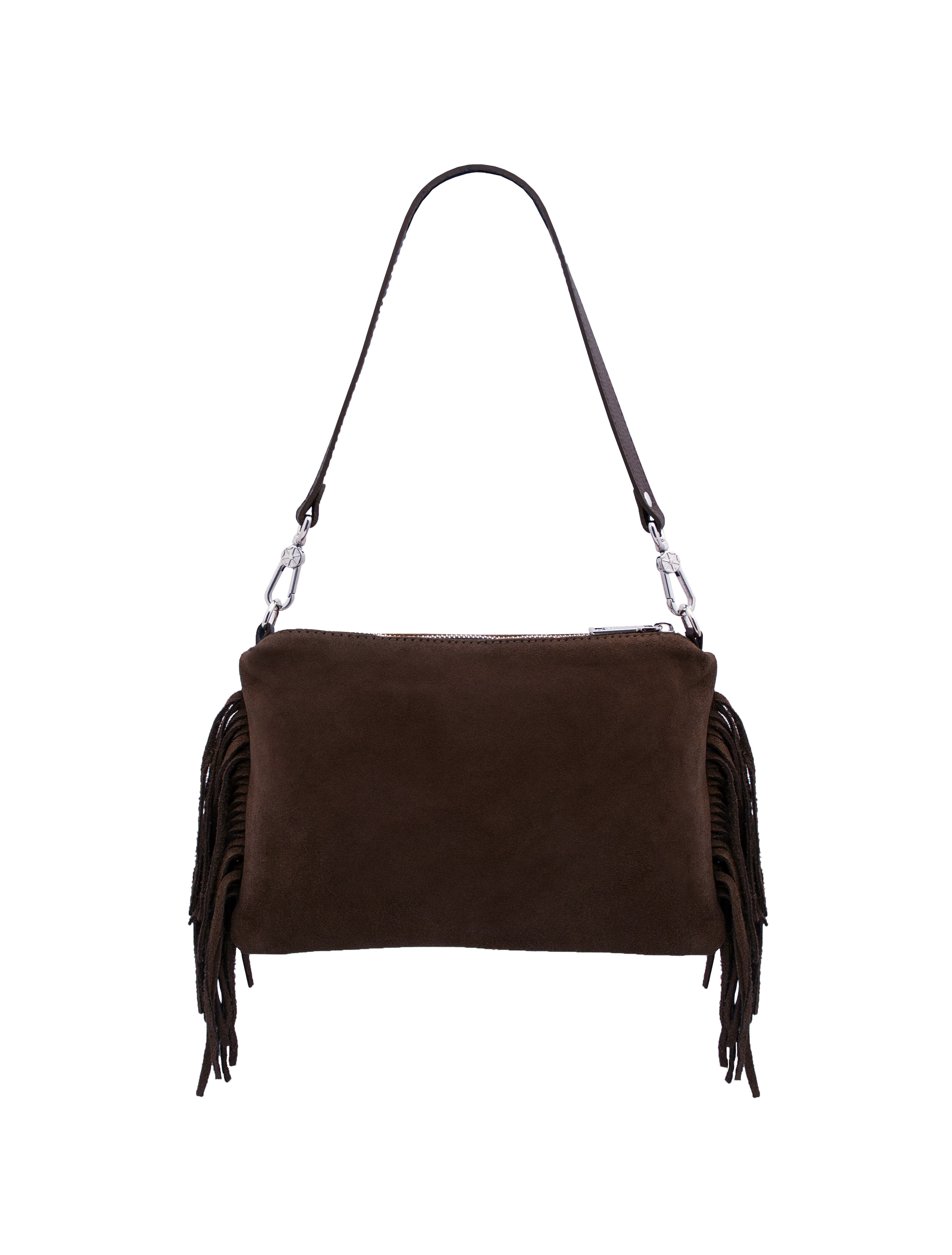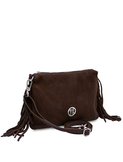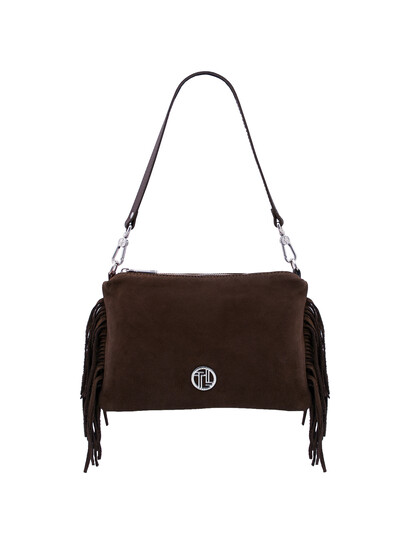 Nomade Suede leather fringe shoulder bag Dark Brown