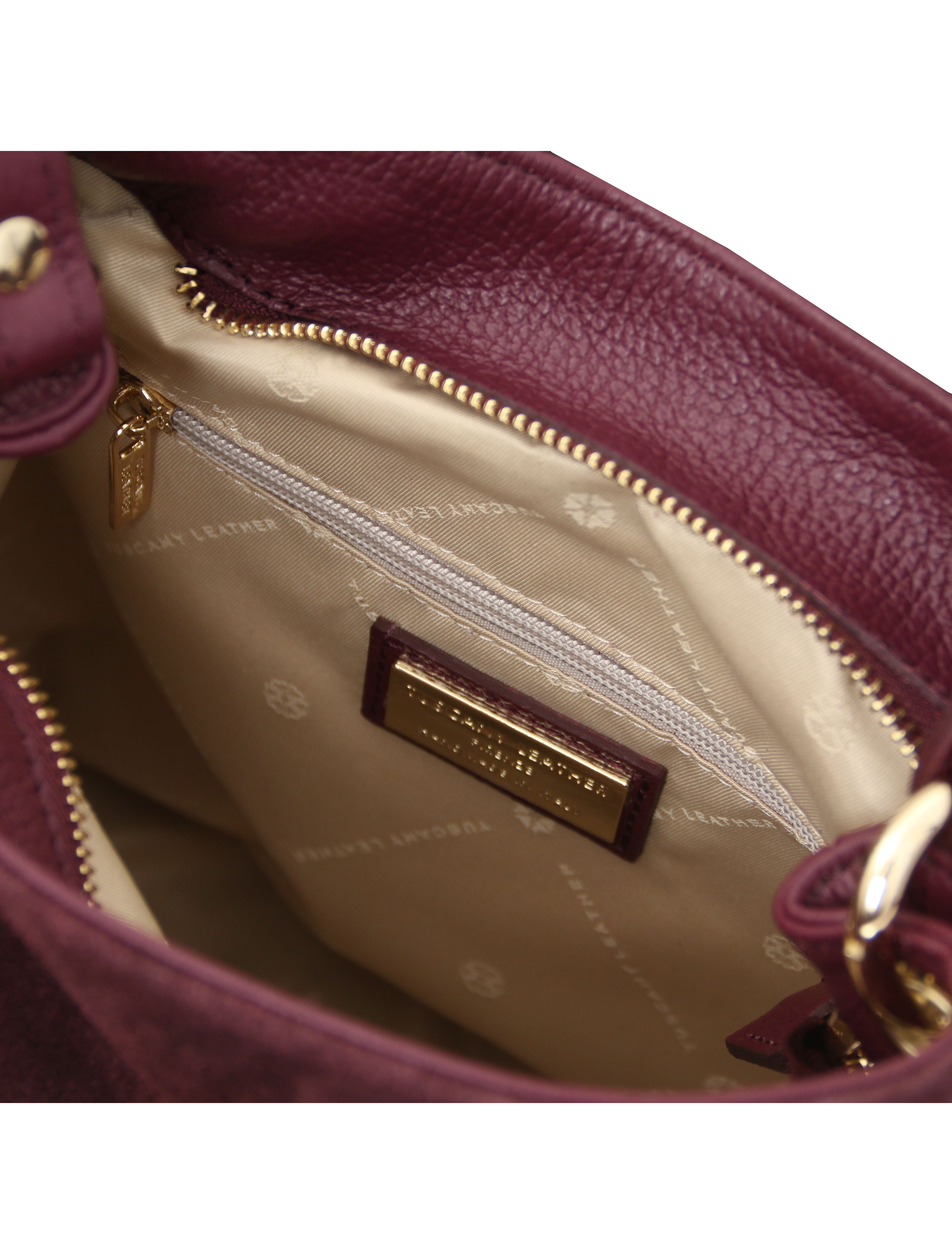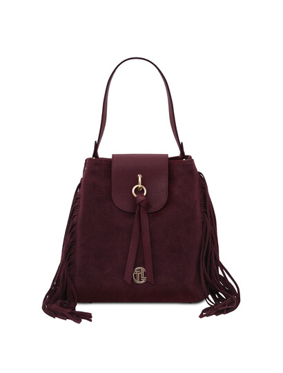 Nomade Suede leather fringe shoulder bag Bordeaux