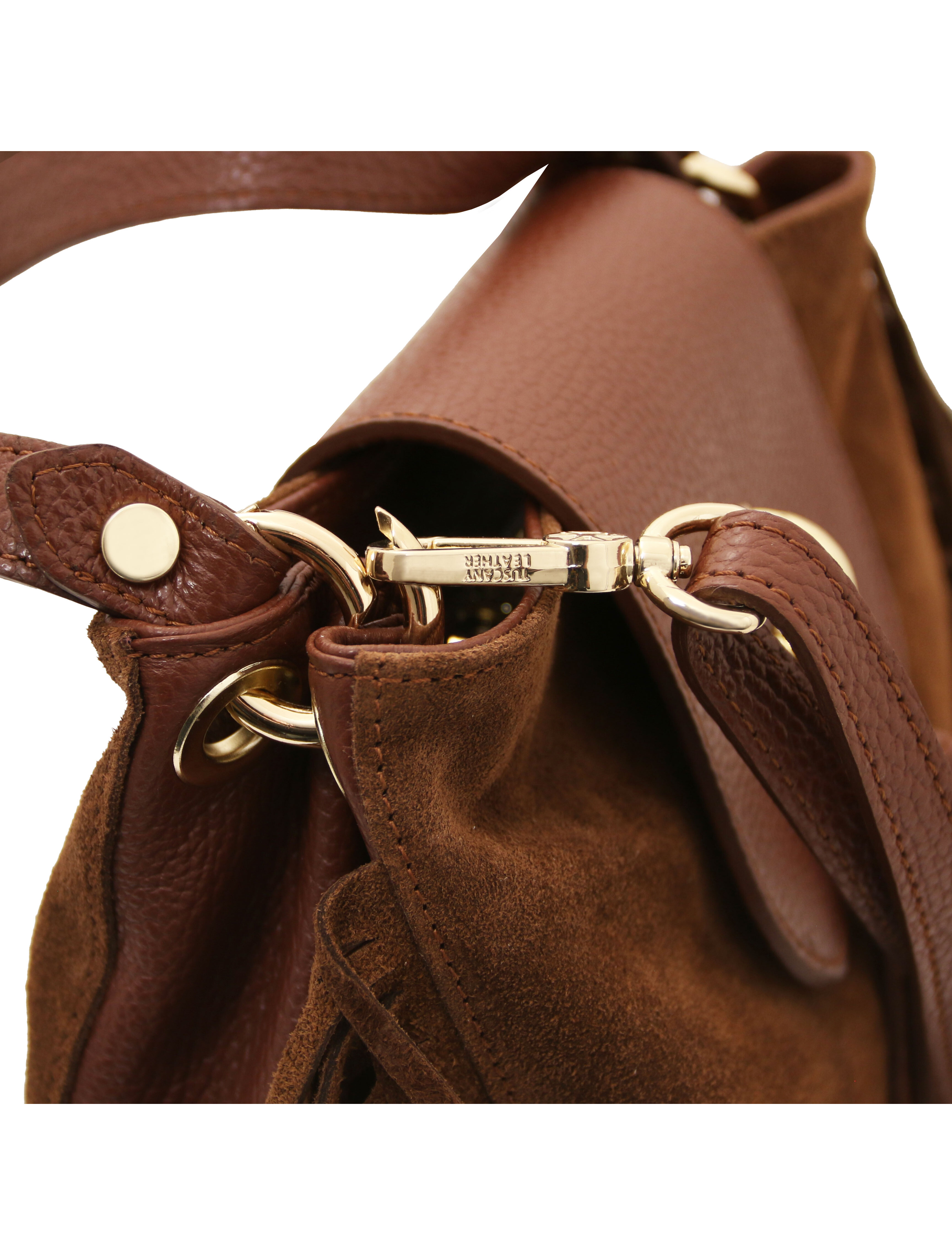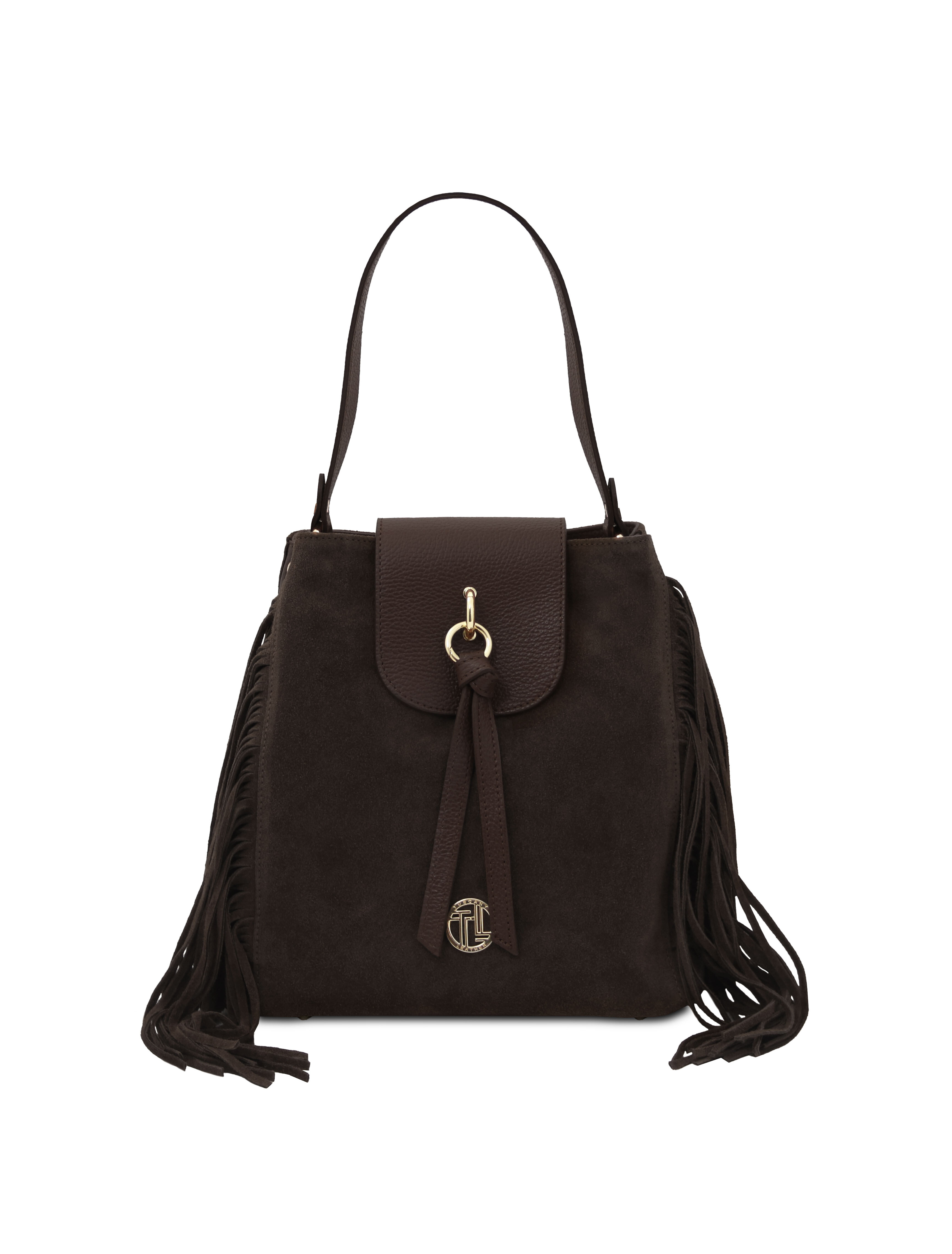 Nomade Suede leather fringe shoulder bag Dark Brown