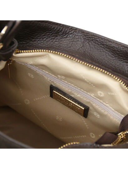 Nomade Suede leather fringe shoulder bag Dark Taupe
