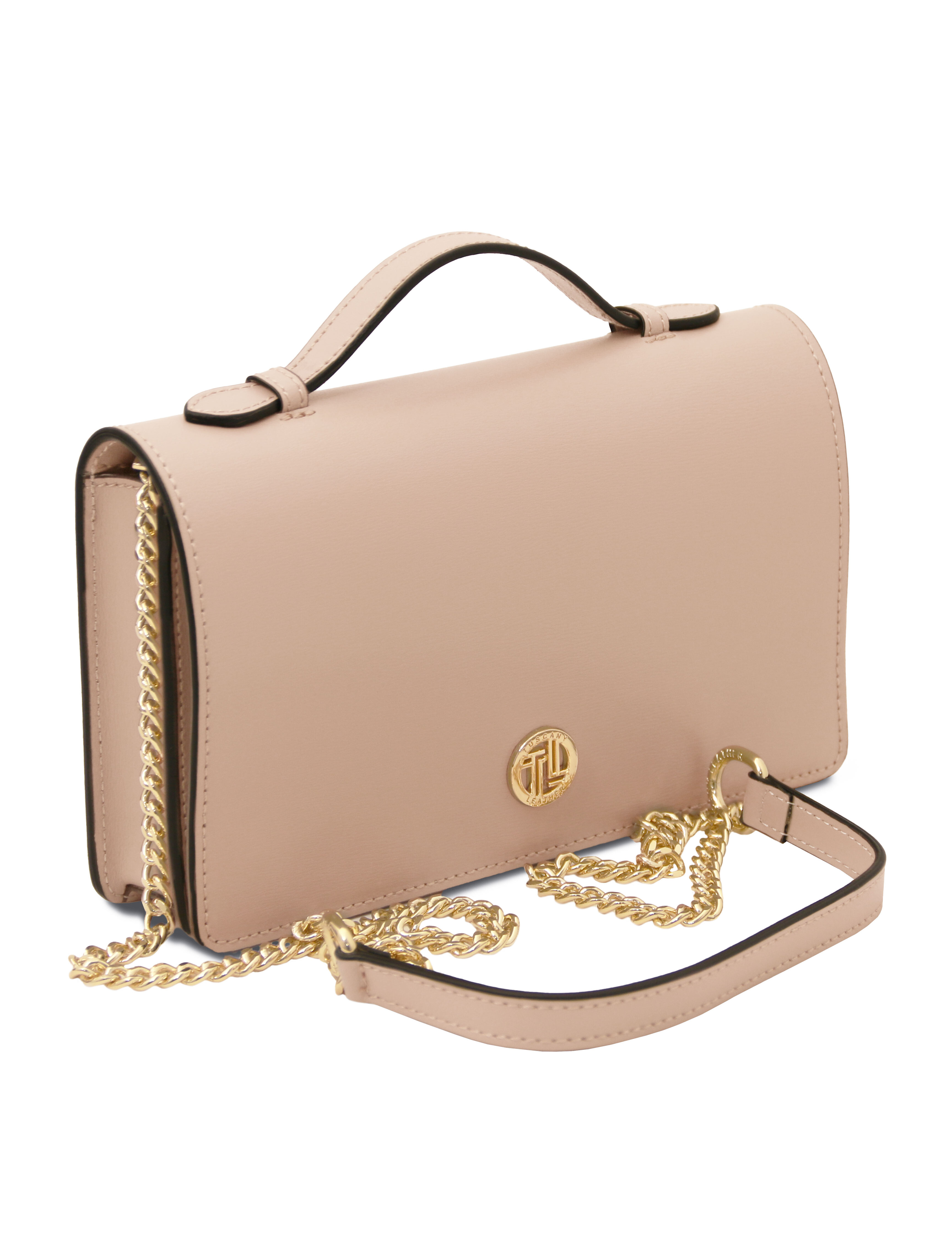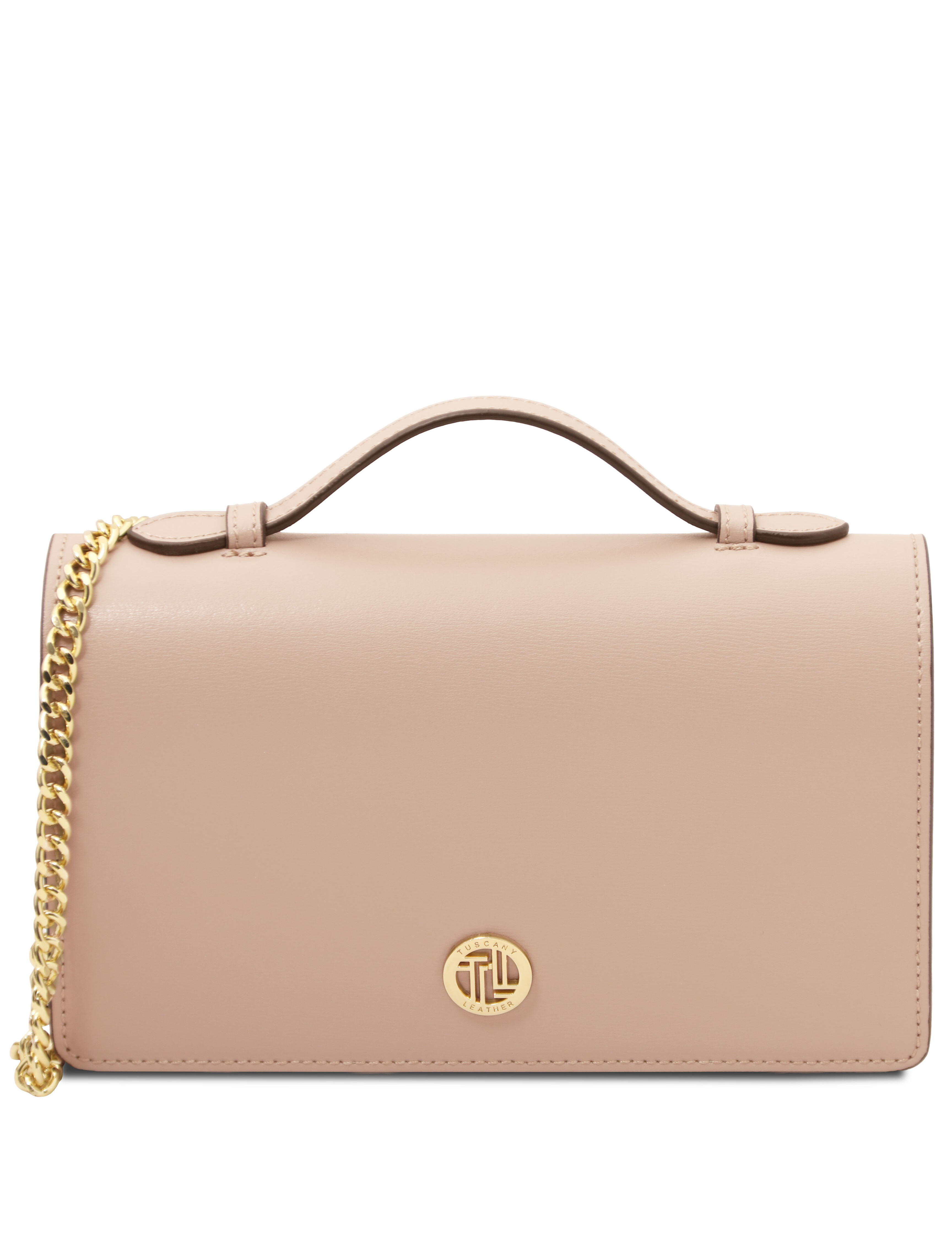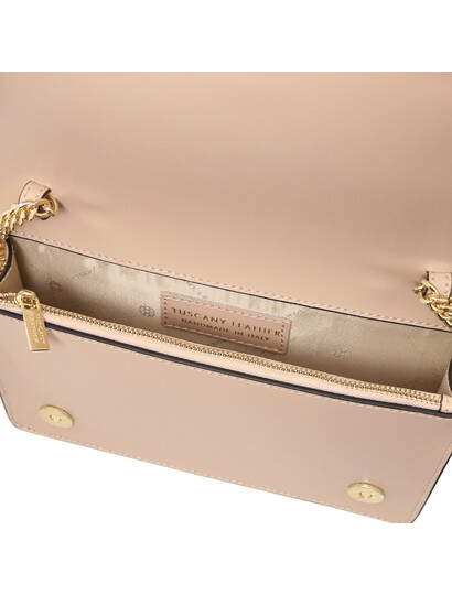 Opera Leather clutch with chain strap Nude