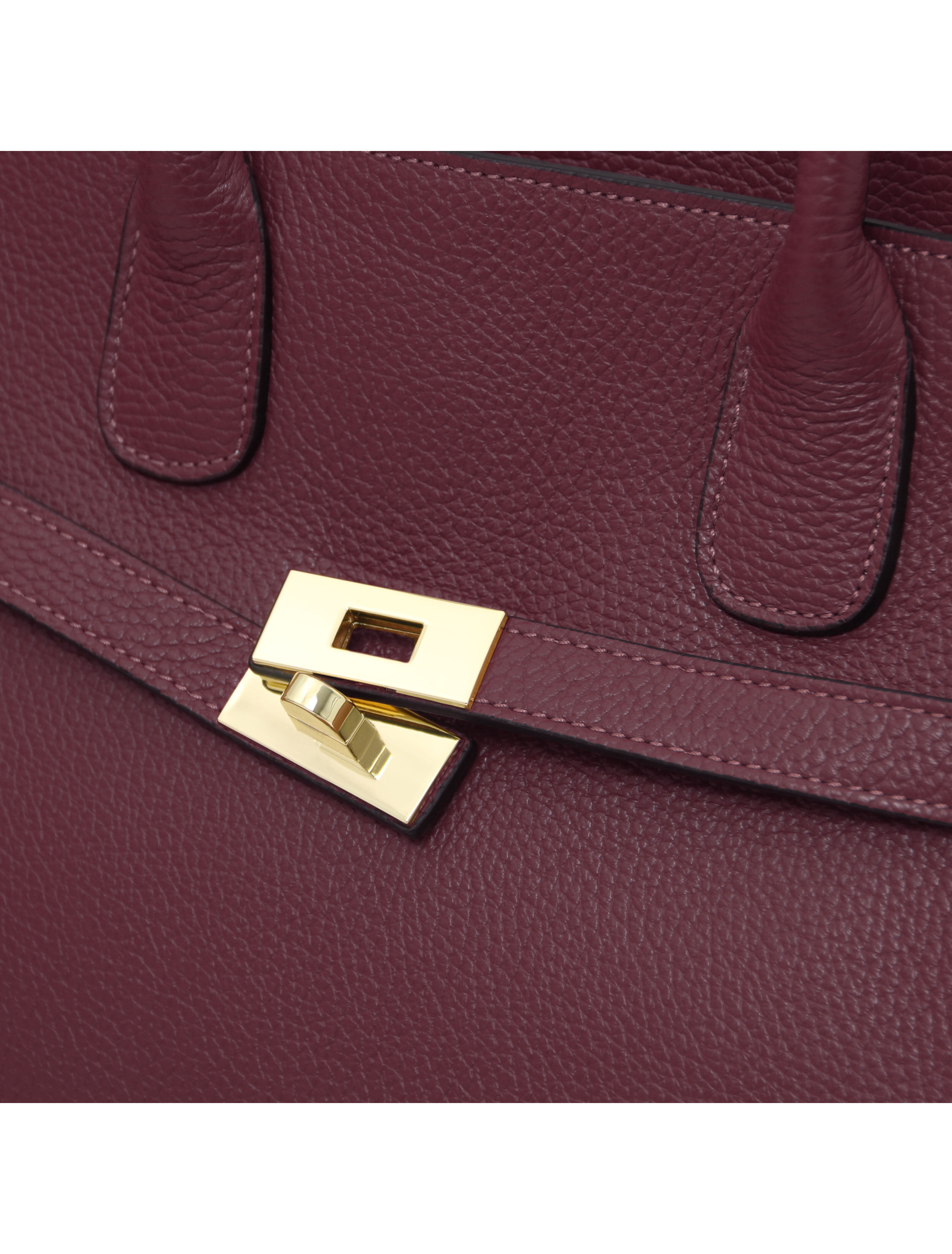 Geanta shopper din piele Origami Bordeaux îmbină linii curate cu un design ingenios, inspirat de arta origami. Confecționată din piele naturală moale, își păstrează forma, dar rămâne ușoară și confortabilă de purtat întreaga zi. Interiorul spațios permite organizarea facilă a documentelor, portofelului, telefonului și a altor esențiale, fiind ideală pentru birou, oraș sau călătorii. Mânerele rezistente asigură purtarea comodă pe umăr sau în mână, iar nuanța elegantă Bordeaux adaugă un accent sofisticat oricărei ținute. O alegere versatilă și stilată pentru femeia modernă, care apreciază atât funcționalitatea, cât și designul rafinat.