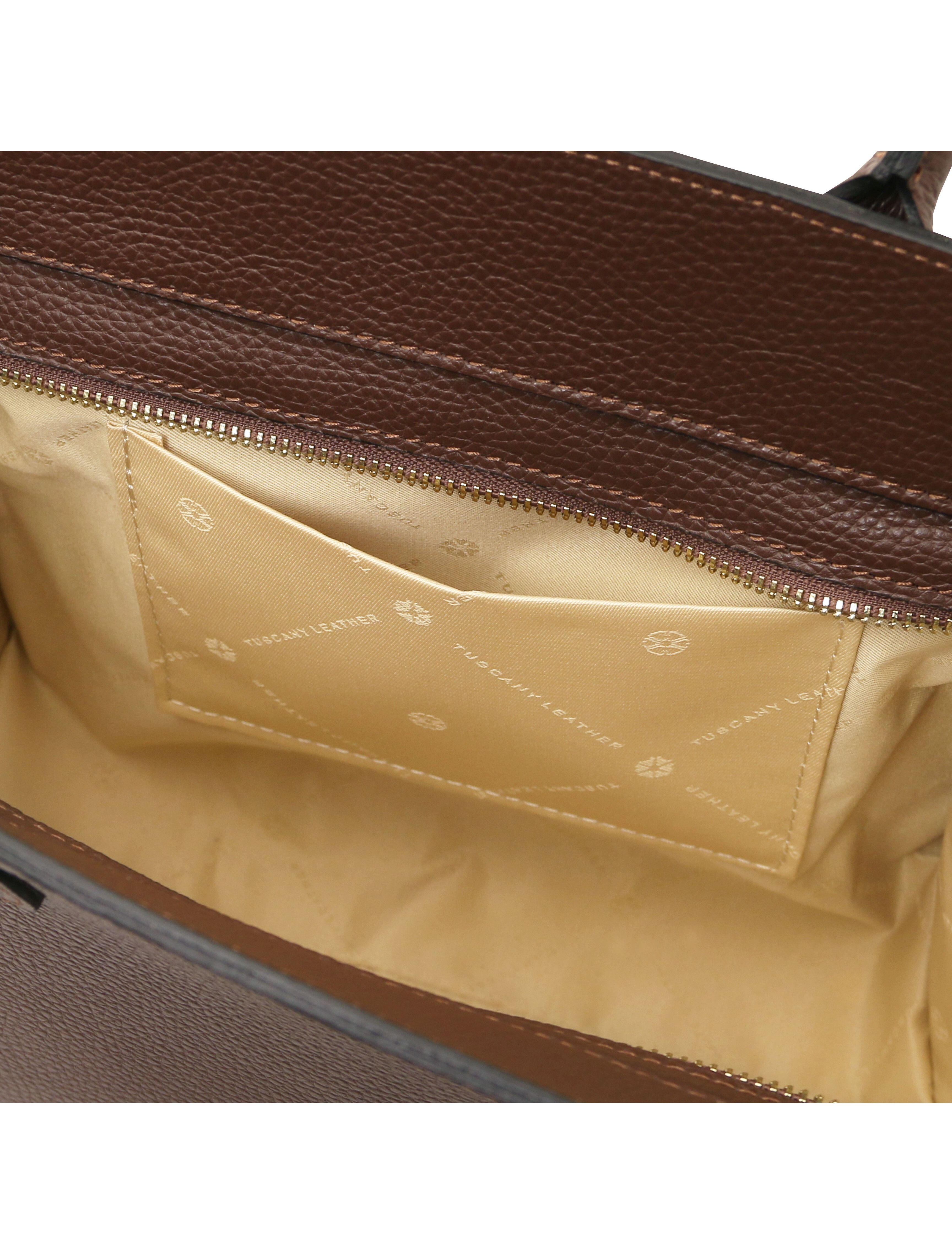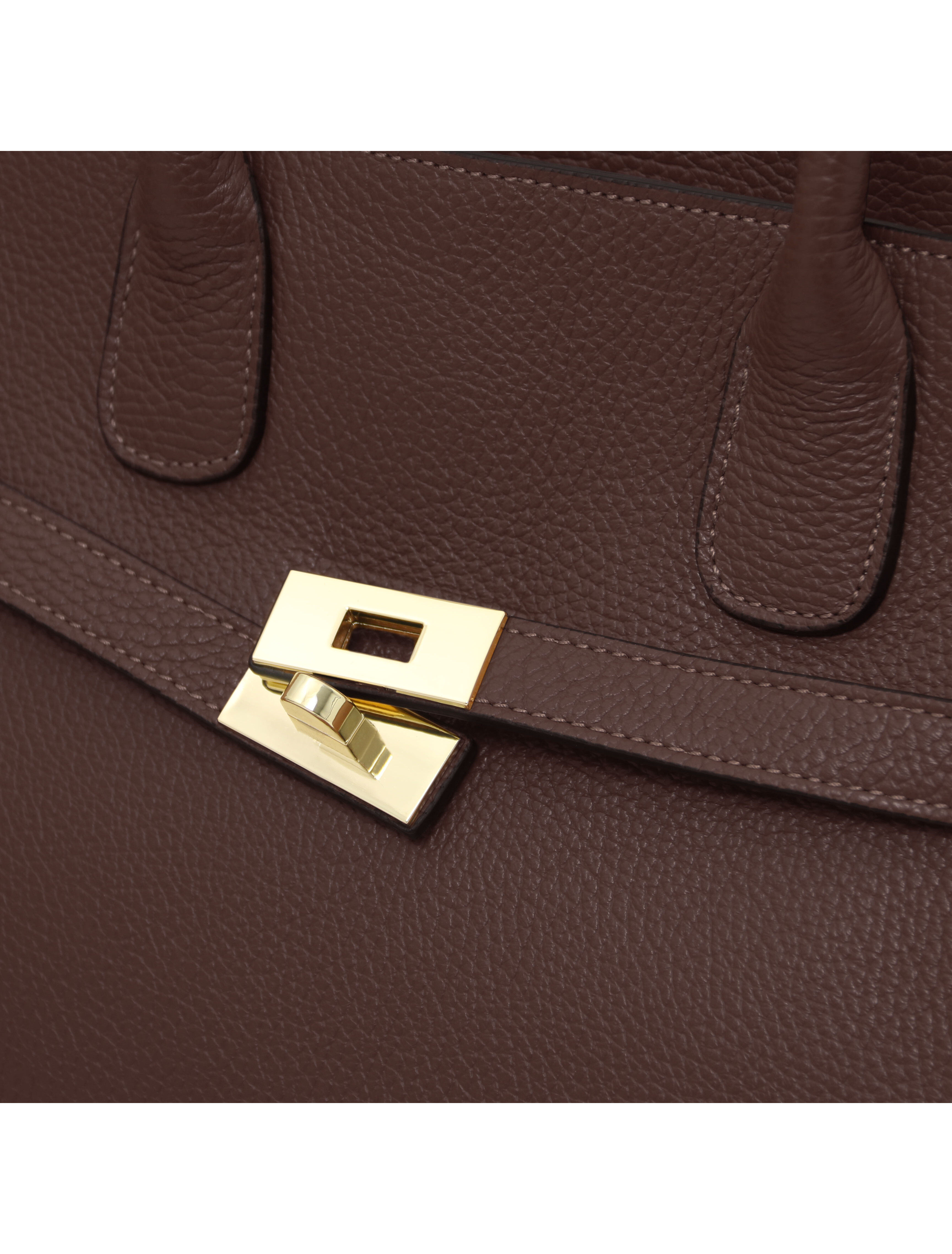 Geanta shopper din piele Origami Coffee îmbină designul geometric modern cu eleganța clasică a pielii naturale. Realizată din piele moale, de calitate superioară, geanta își păstrează forma inspirată de tehnica origami, oferind în același timp flexibilitate și confort la purtare. Nuanța caldă coffee se potrivește ușor cu ținutele de zi sau de birou, adăugând un accent rafinat oricărui look. Interiorul spațios permite organizarea agendei, portofelului, telefonului și a altor esențiale, fiind ideală pentru femeile active. Mânerele rezistente și finisajele atent lucrate asigură durabilitate și un aspect premium, transformând această geantă într-o piesă de bază în garderoba ta de zi cu zi.