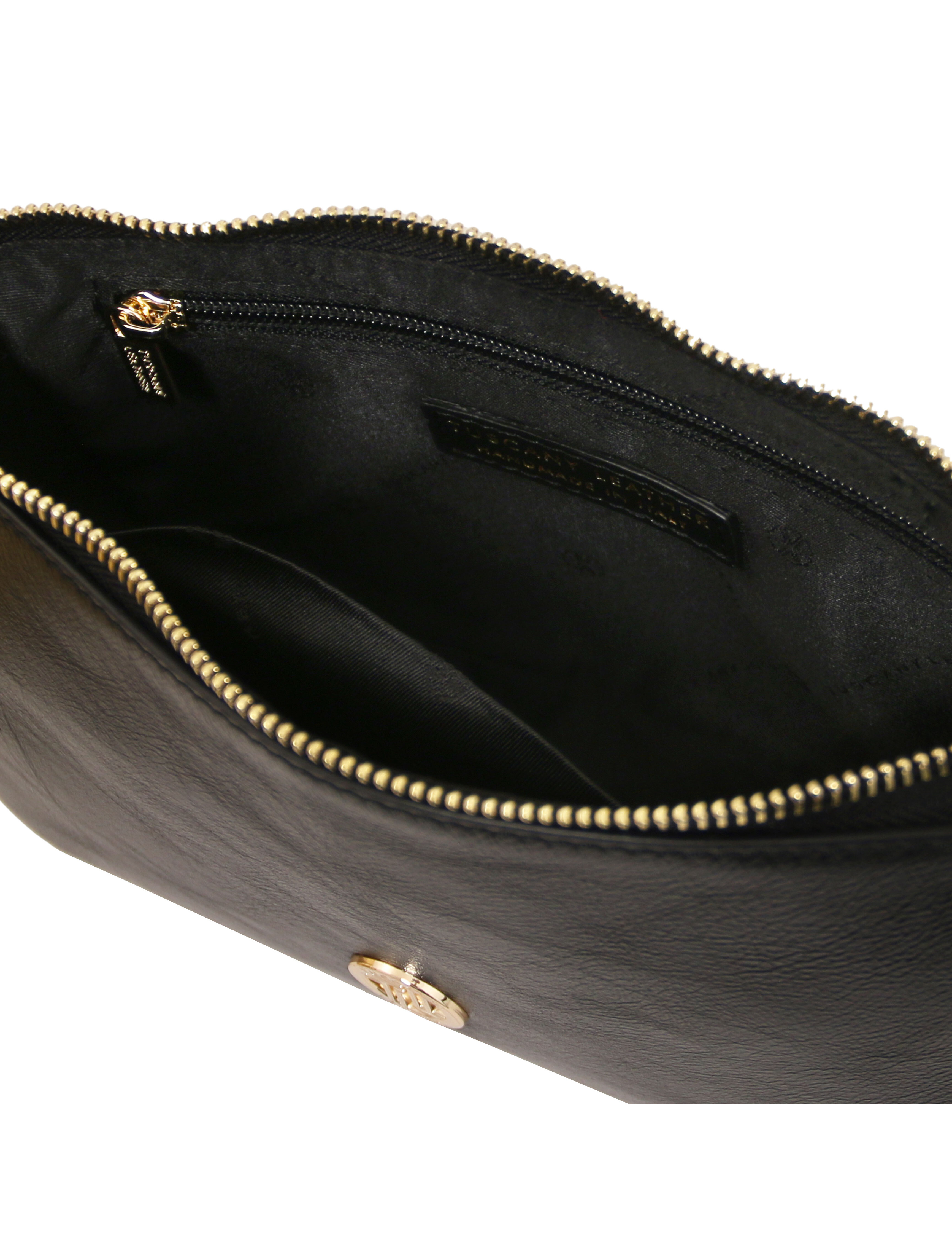 Parfait Metallic leather clutch Black