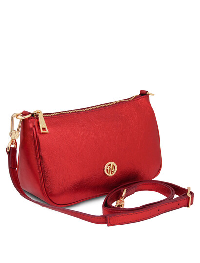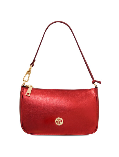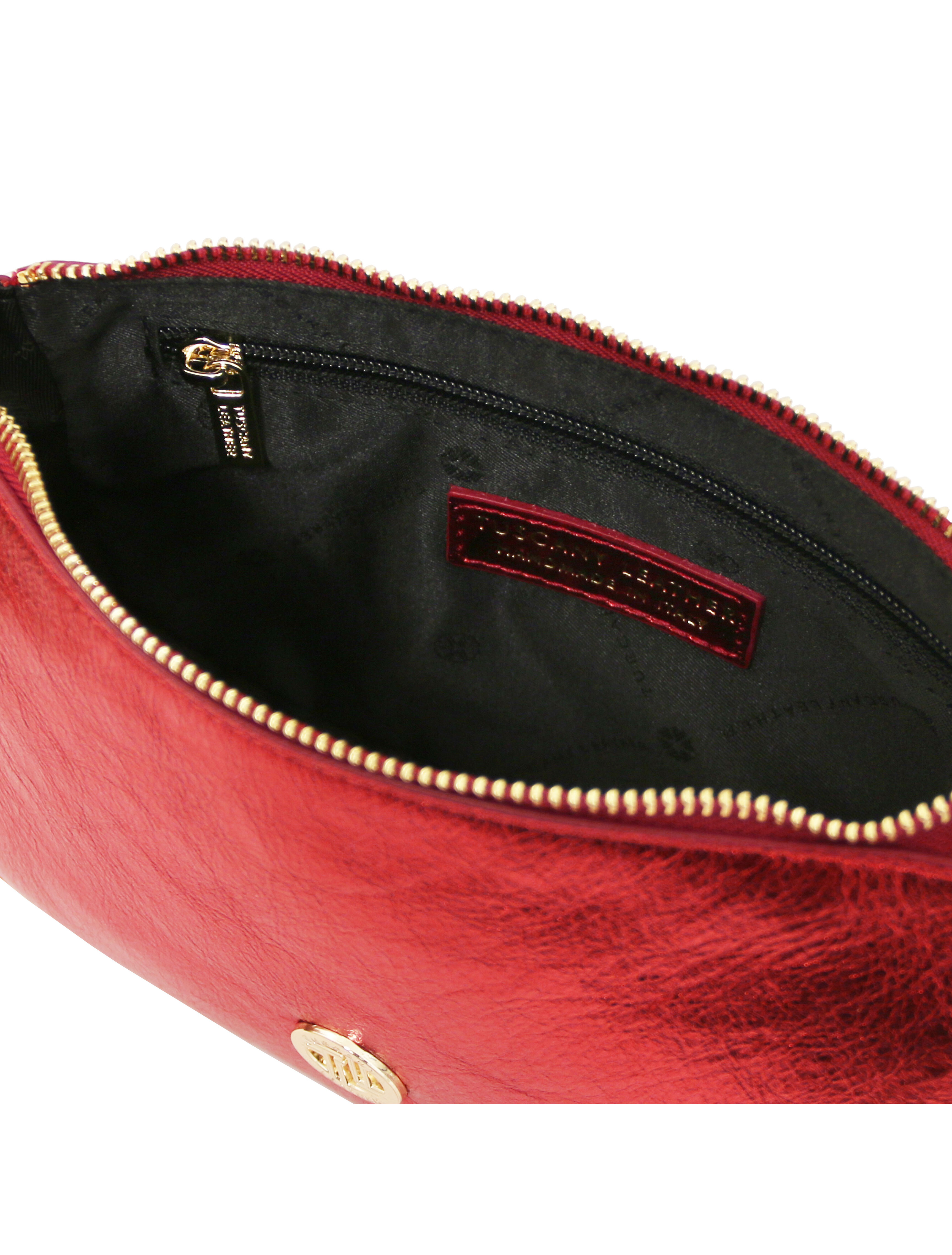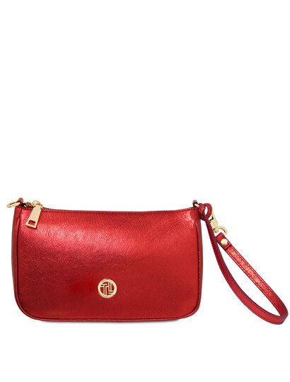 Parfait Metallic leather clutch Red