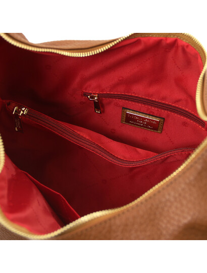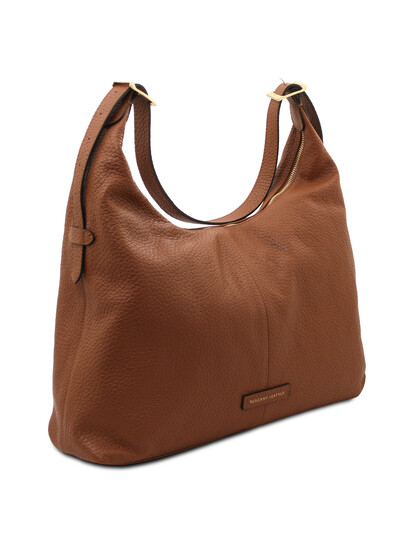 Plenia Leather shopping bag Cognac