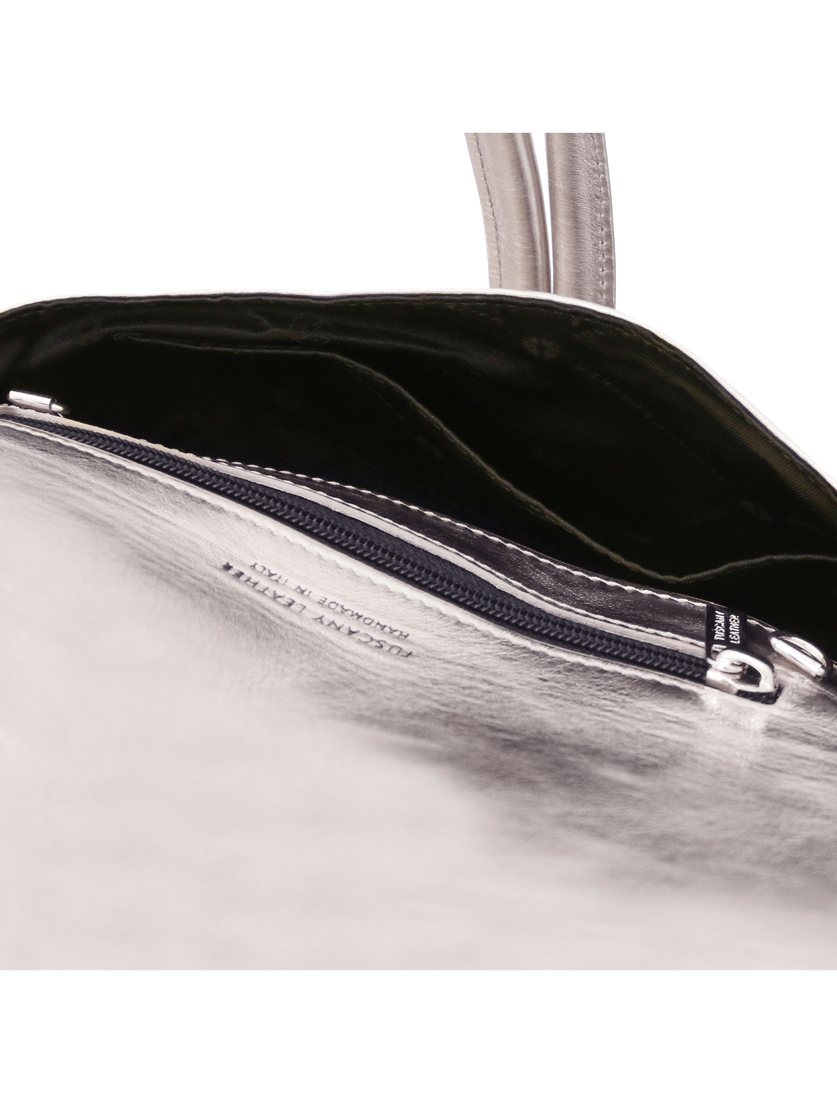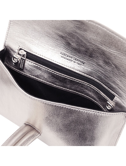 Alege un plic dama argintiu din piele naturala Tuscany Leather pentru o tinuta eleganta de invidiat. Autentic italian.