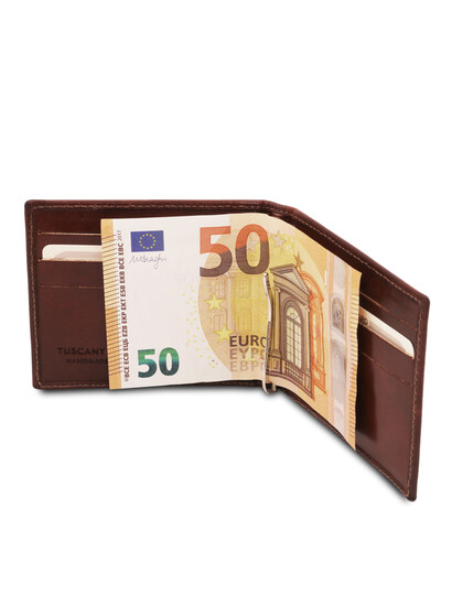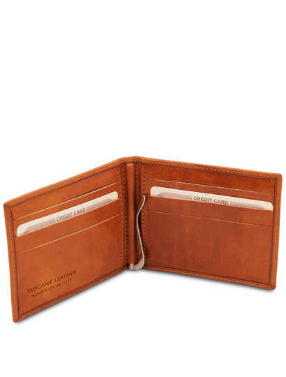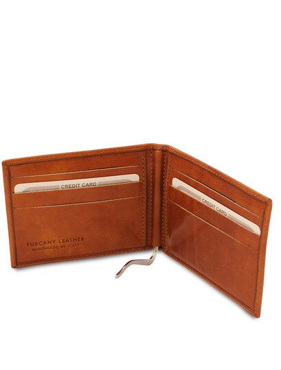 Alege portcardul din piele naturala honey Tuscany Leather cu clips pentru bancnote cu un design rafinat creat special pentru nevoile unui gentleman.